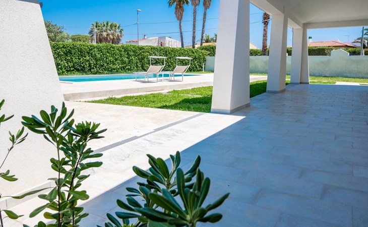 The villa is located in Fontane Bianche, a renowned seaside resort that seduces visitors with its crystal-clear waters and fine sandy beaches. This strategic location offers the opportunity to easily explore the many attractions that Sicily has to offer. From cultural excursions to the historic cities of Siracusa and Noto, to relaxing days at the nearby beaches, the villa is the perfect base for various adventures and discoveries.