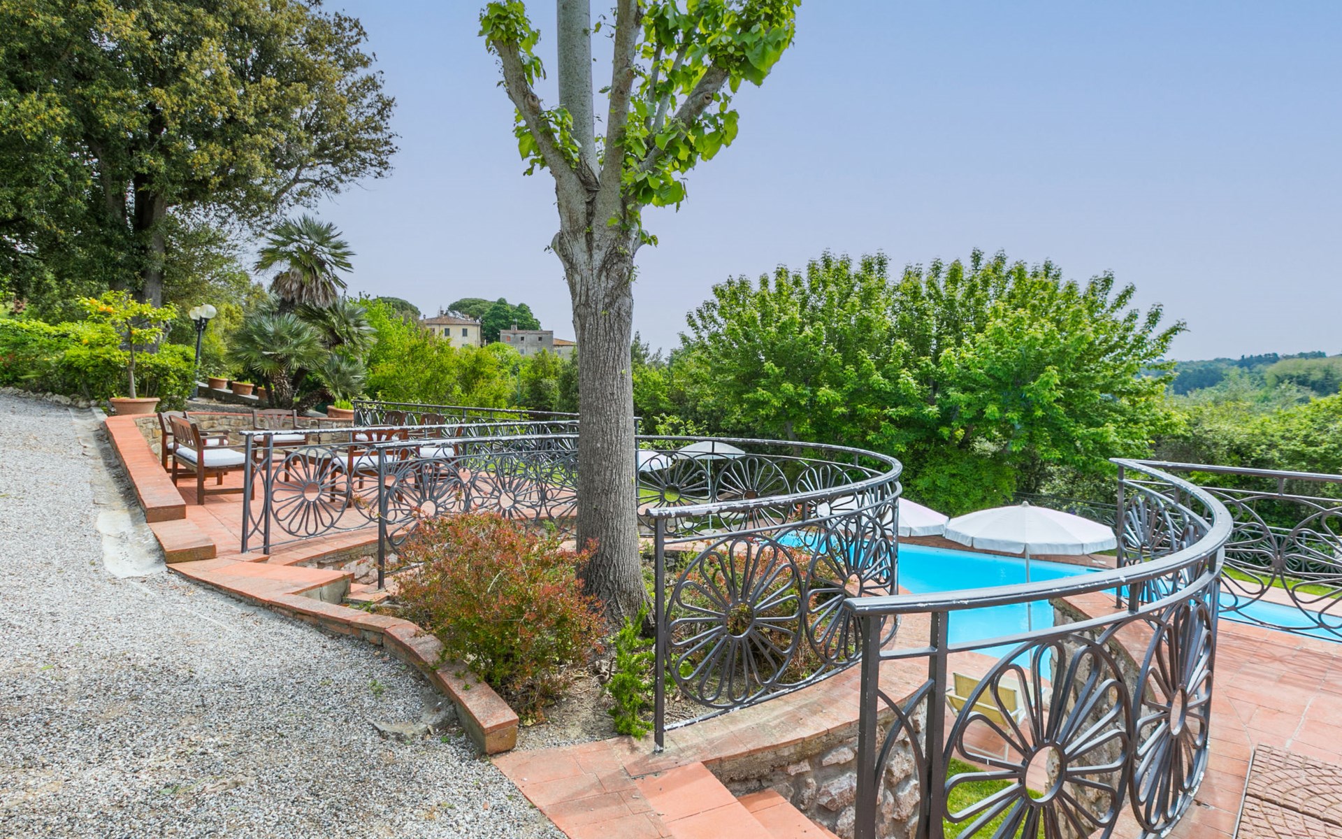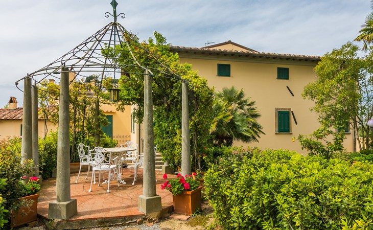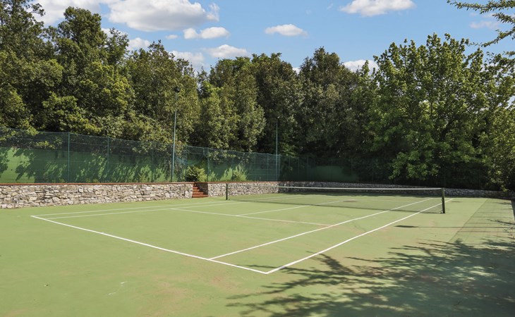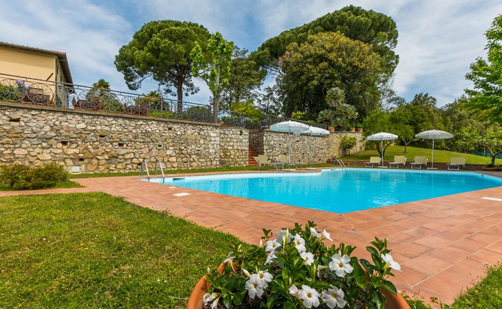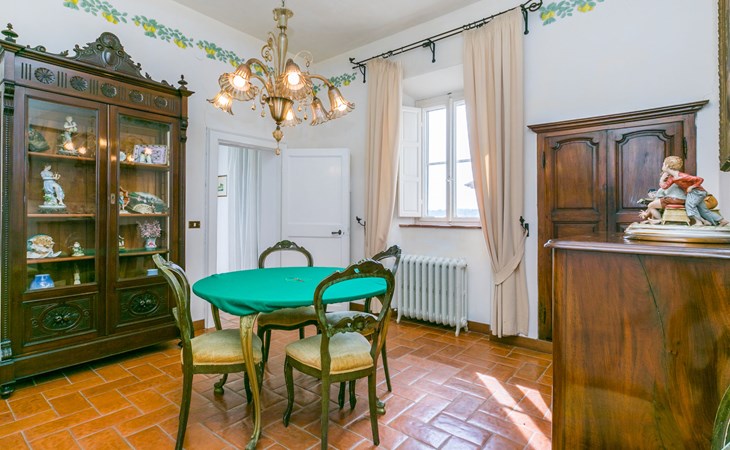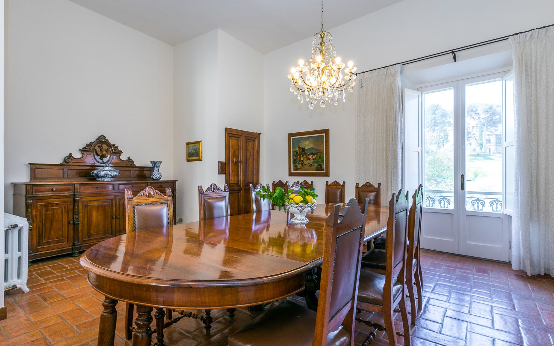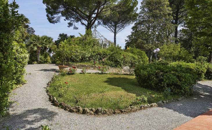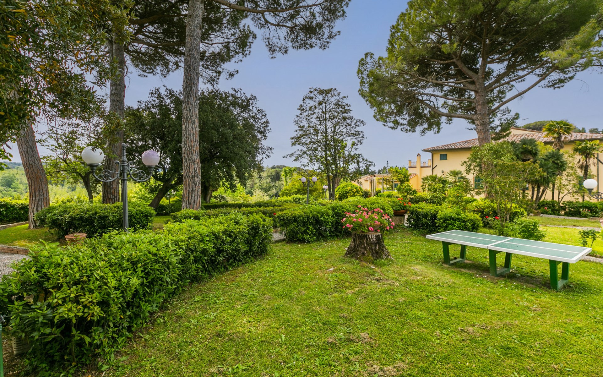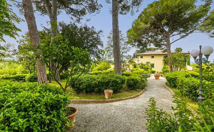 Exclusive and elegant 19th century property located in the heart of the Tuscan hills. Historical country house "Villa La Guardia Vecchia", detached, built in 1700, renovated, surrounded by meadows. 700 m from the centre of Crespina Lorenzana, 30 km from the centre of Pisa, 33 km from the centre of Livorno, in a secluded, quiet, sunny position on top of a hill, 30 km from the sea, in the countryside. Private: park (fenced), flowers and trees, beautiful garden to relax, swimming pool (15 x 7 m, depth 120 - 275 cm, seasonal availability: 01.May. - 01.Oct.). Shower/WC in the pool area, tennis (1 x hard court), table tennis, garden furniture, barbecue. In the house: billiard table, heating to be paid on the spot, heating available only from 01.Nov. - 15.Apr.. Parking on the premises. Restaurant 1 km, bus stop 500 m, sandy beach "Castiglioncello" 35 km, rocky beach "Calafuria" 38 km, thermal baths "Cascina Terme" 10 km. Golf course (9 hole) 30 km, riding stable 500 m. Nearby attractions: Villa Belvedere 500 m, Certosa di Calci 23 km, Lajatico 29 km, Volterra 46 km, San Gimignano 55 km, Lucca 63 km. Please note: car recommended. Suitable for families. Groups of teenagers on request only. Suitable for events. The villa is surrounded by a splendid park with an Italian garden, inside which there are benches, gazebos, fruit trees, a splendid swimming pool and a tennis court. This Villa, an ideal place to spend exclusive relaxing holidays, also offers the possibility of hosting events, weddings and meetings. Adjacent to the villa, with an independent entrance, is the caretaker's house.