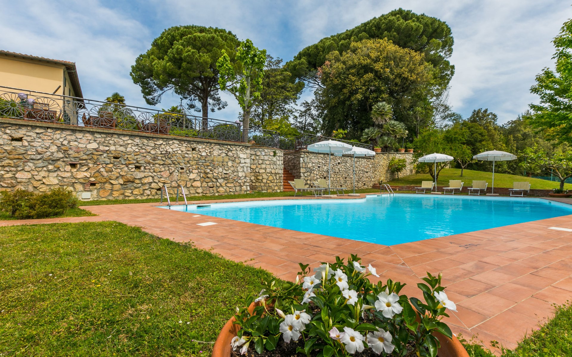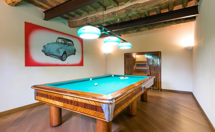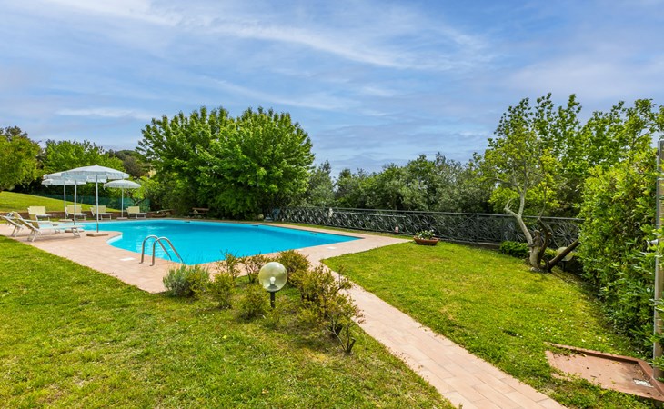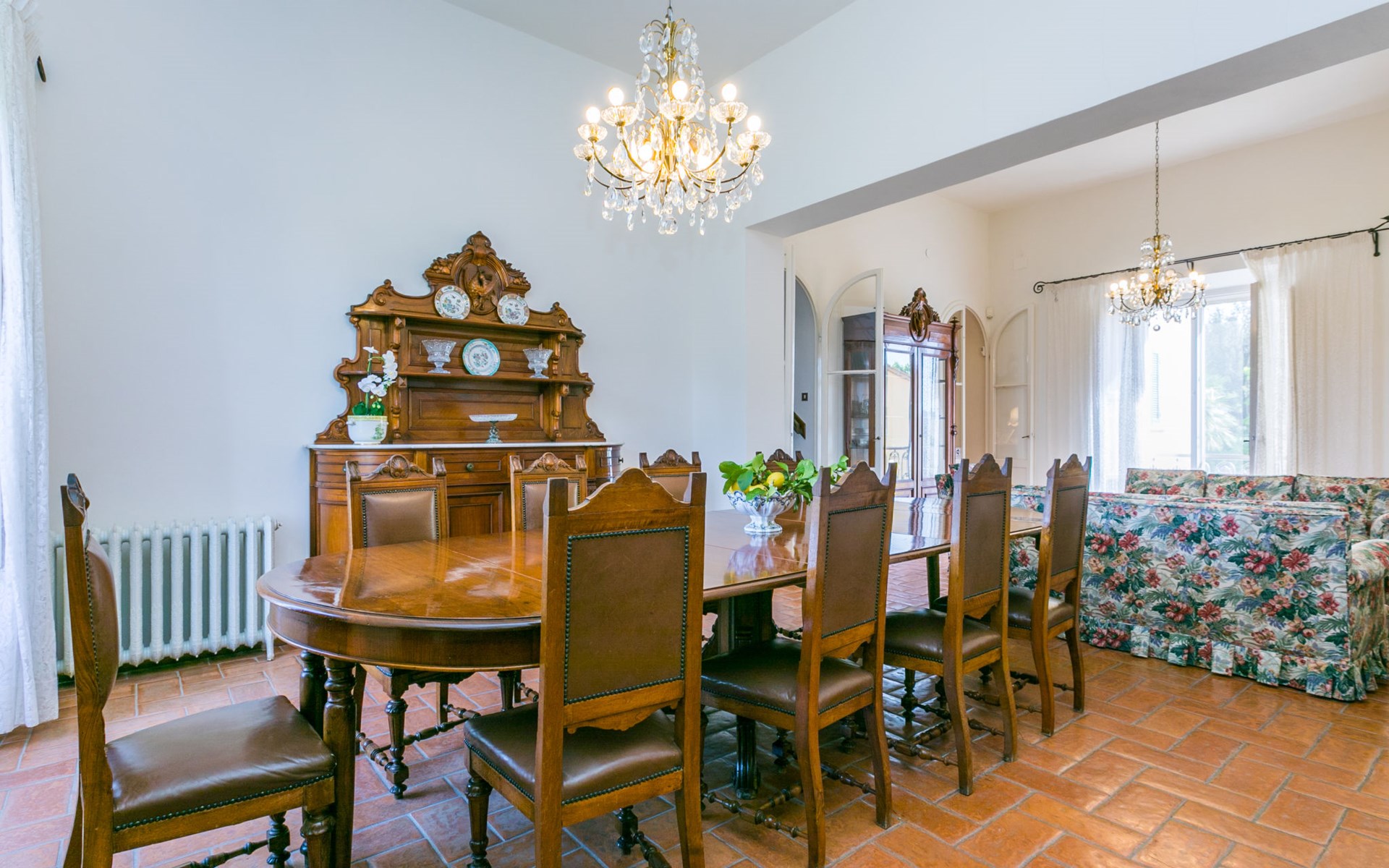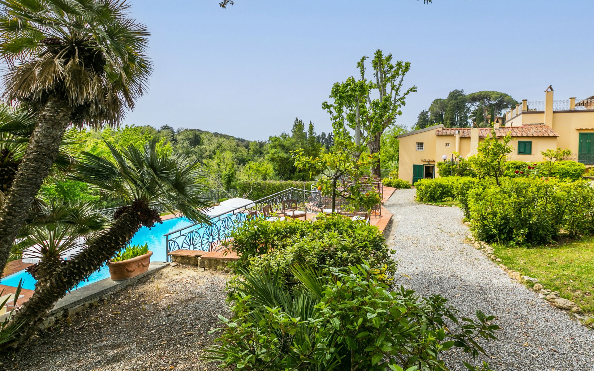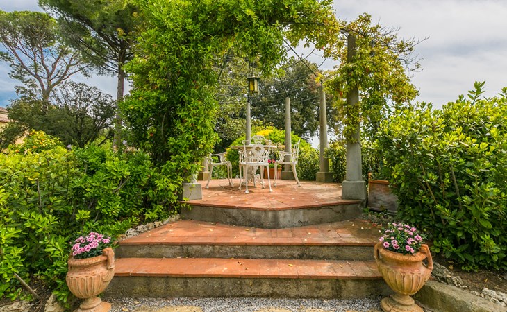 Exclusive and elegant 19th century property located in the heart of the Tuscan hills. Historical country house "Villa La Guardia Vecchia", detached, built in 1700, renovated, surrounded by meadows. 700 m from the centre of Crespina Lorenzana, 30 km from the centre of Pisa, 33 km from the centre of Livorno, in a secluded, quiet, sunny position on top of a hill, 30 km from the sea, in the countryside. Private: park (fenced), flowers and trees, beautiful garden to relax, swimming pool (15 x 7 m, depth 120 - 275 cm, seasonal availability: 01.May. - 01.Oct.). Shower/WC in the pool area, tennis (1 x hard court), table tennis, garden furniture, barbecue. In the house: billiard table, heating to be paid on the spot, heating available only from 01.Nov. - 15.Apr.. Parking on the premises. Restaurant 1 km, bus stop 500 m, sandy beach "Castiglioncello" 35 km, rocky beach "Calafuria" 38 km, thermal baths "Cascina Terme" 10 km. Golf course (9 hole) 30 km, riding stable 500 m. Nearby attractions: Villa Belvedere 500 m, Certosa di Calci 23 km, Lajatico 29 km, Volterra 46 km, San Gimignano 55 km, Lucca 63 km. Please note: car recommended. Suitable for families. Groups of teenagers on request only. Suitable for events. The villa is surrounded by a splendid park with an Italian garden, inside which there are benches, gazebos, fruit trees, a splendid swimming pool and a tennis court. This Villa, an ideal place to spend exclusive relaxing holidays, also offers the possibility of hosting events, weddings and meetings. Adjacent to the villa, with an independent entrance, is the caretaker's house.