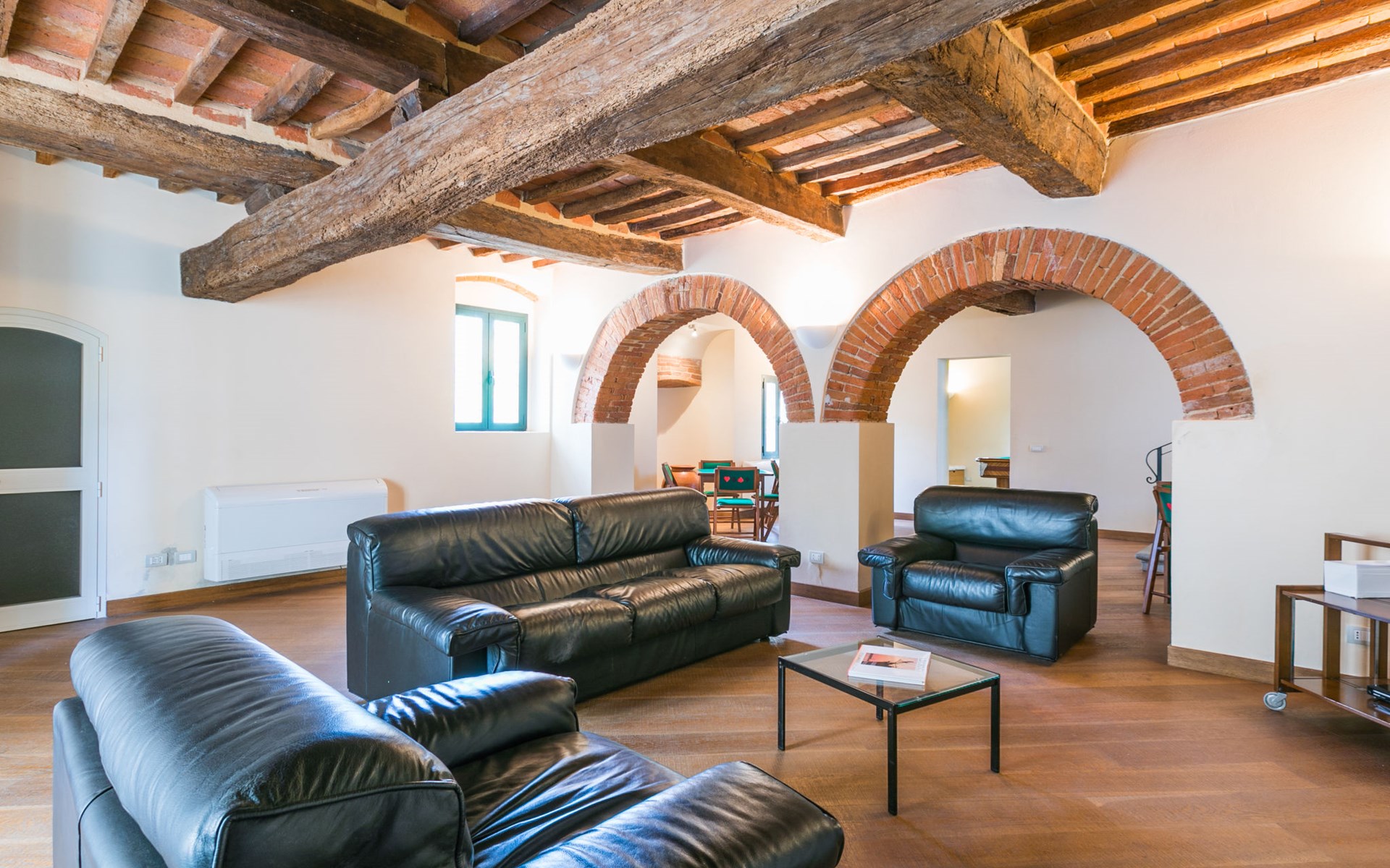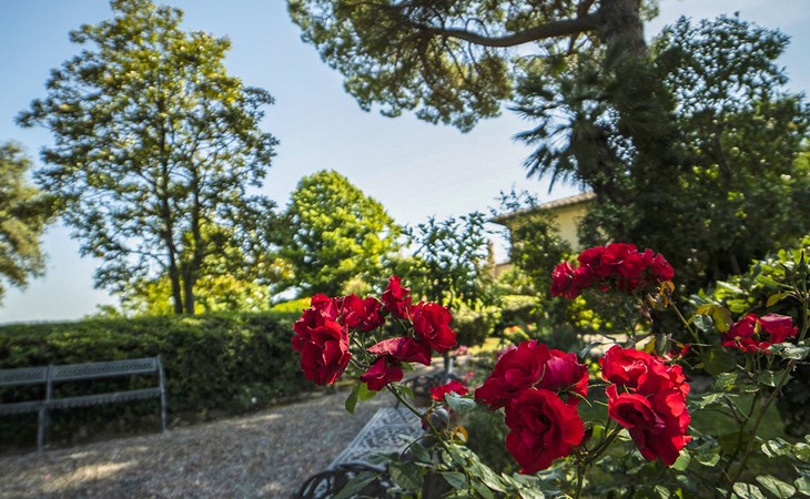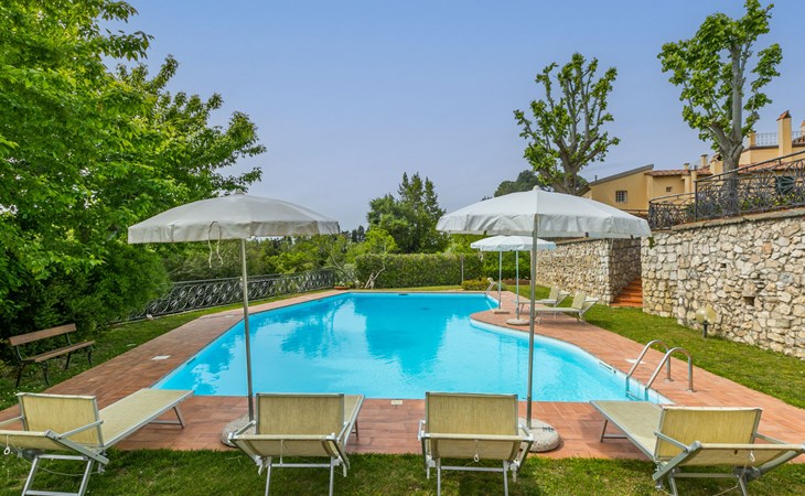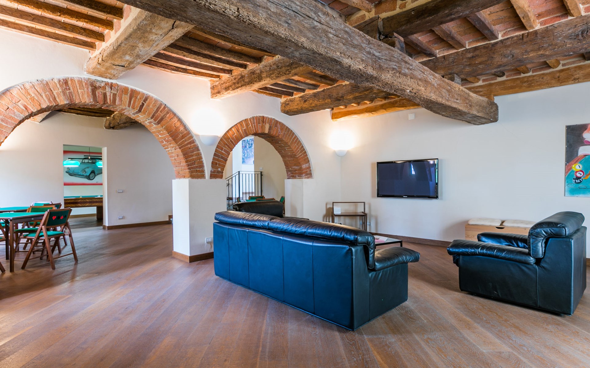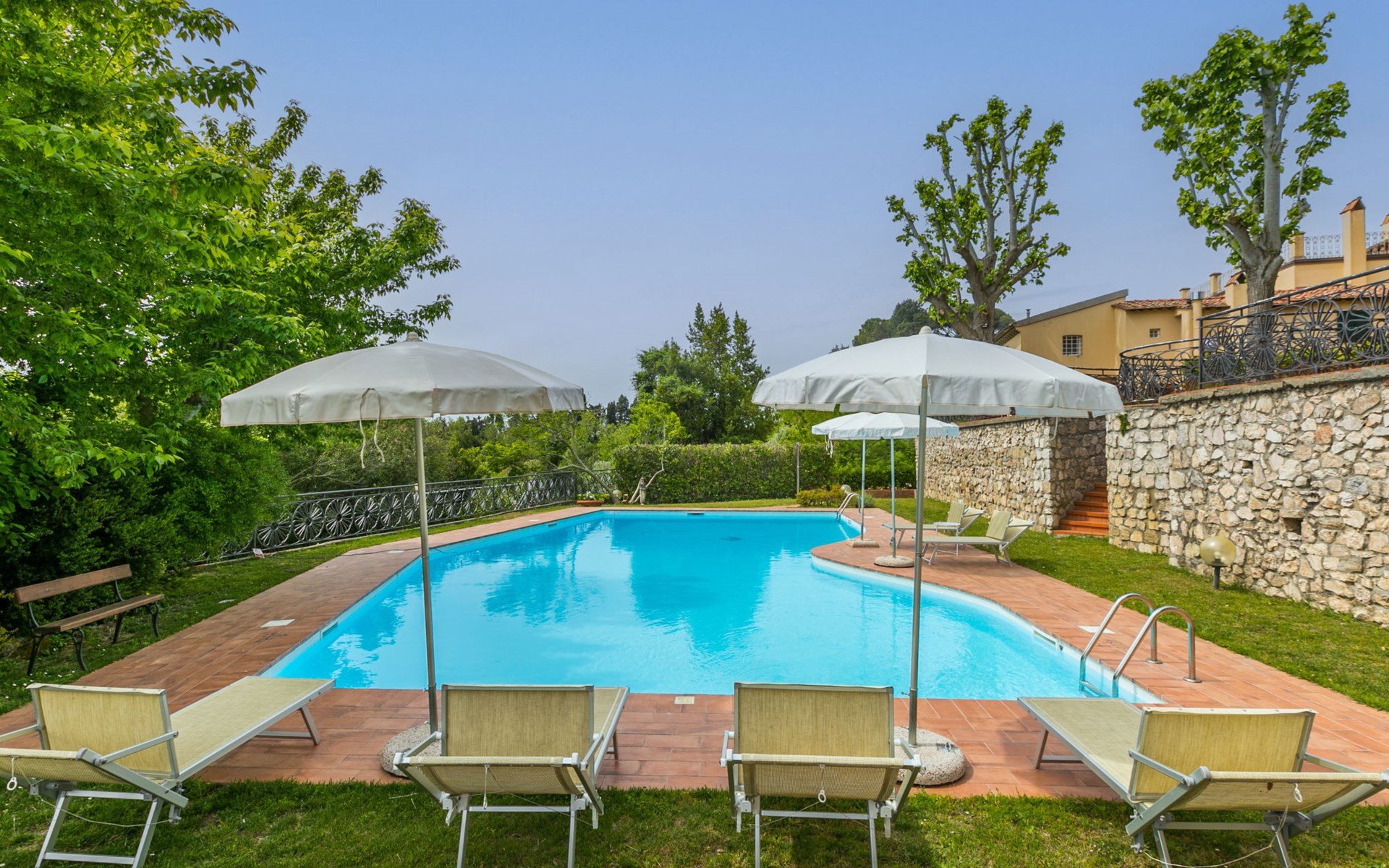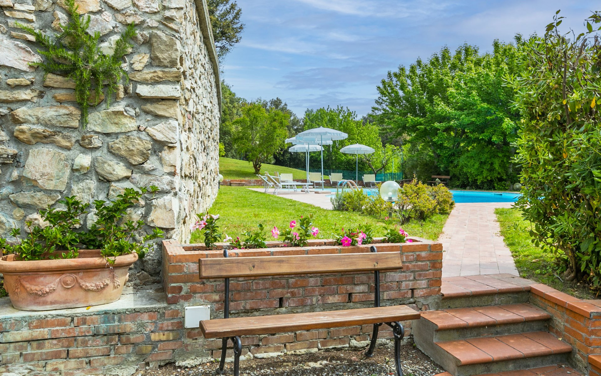 Exclusive and elegant 19th century property located in the heart of the Tuscan hills. Historical country house "Villa La Guardia Vecchia", detached, built in 1700, renovated, surrounded by meadows. 700 m from the centre of Crespina Lorenzana, 30 km from the centre of Pisa, 33 km from the centre of Livorno, in a secluded, quiet, sunny position on top of a hill, 30 km from the sea, in the countryside. Private: park (fenced), flowers and trees, beautiful garden to relax, swimming pool (15 x 7 m, depth 120 - 275 cm, seasonal availability: 01.May. - 01.Oct.). Shower/WC in the pool area, tennis (1 x hard court), table tennis, garden furniture, barbecue. In the house: billiard table, heating to be paid on the spot, heating available only from 01.Nov. - 15.Apr.. Parking on the premises. Restaurant 1 km, bus stop 500 m, sandy beach "Castiglioncello" 35 km, rocky beach "Calafuria" 38 km, thermal baths "Cascina Terme" 10 km. Golf course (9 hole) 30 km, riding stable 500 m. Nearby attractions: Villa Belvedere 500 m, Certosa di Calci 23 km, Lajatico 29 km, Volterra 46 km, San Gimignano 55 km, Lucca 63 km. Please note: car recommended. Suitable for families. Groups of teenagers on request only. Suitable for events. The villa is surrounded by a splendid park with an Italian garden, inside which there are benches, gazebos, fruit trees, a splendid swimming pool and a tennis court. This Villa, an ideal place to spend exclusive relaxing holidays, also offers the possibility of hosting events, weddings and meetings. Adjacent to the villa, with an independent entrance, is the caretaker's house.