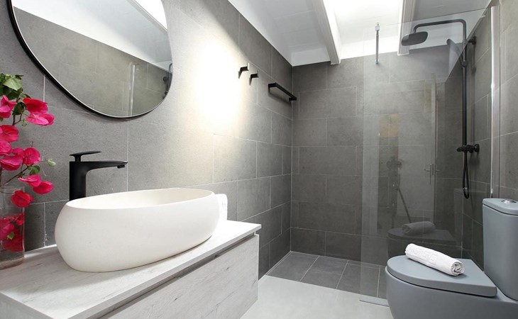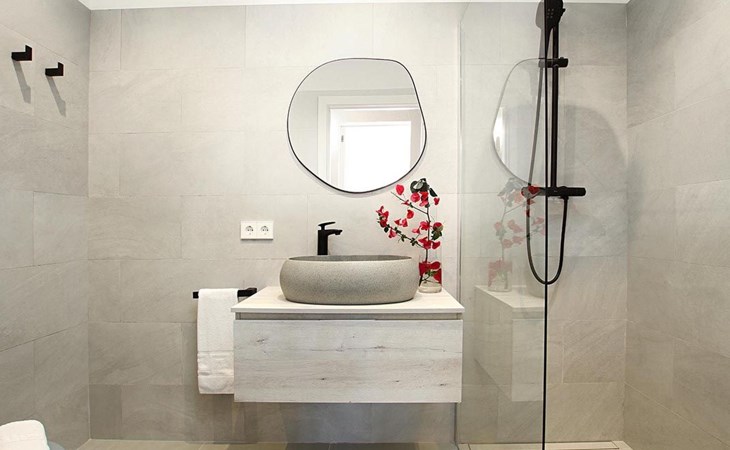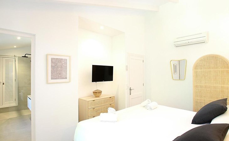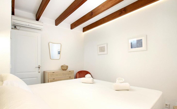 Also from the hallway and through an interior stone archway we can access a bedroom with a double bed and a bathroom with shower.