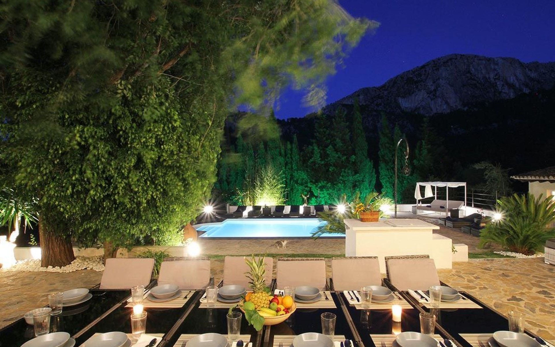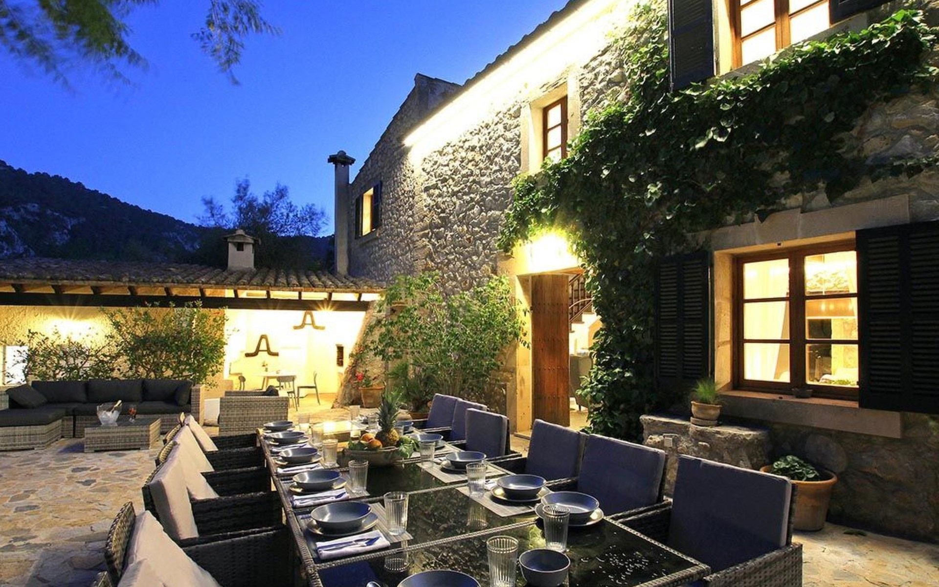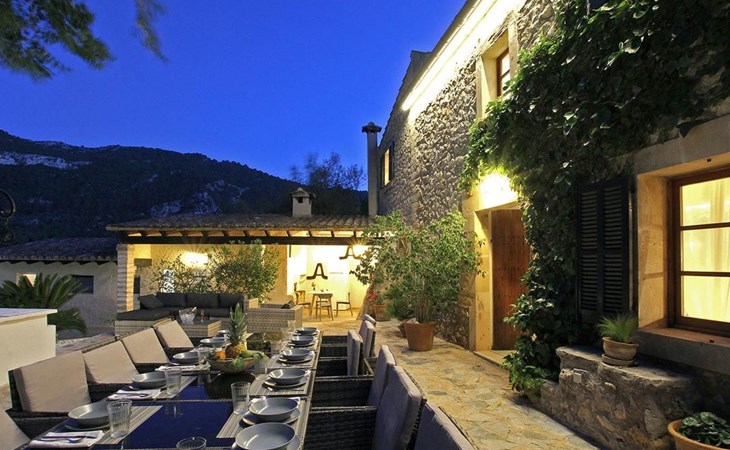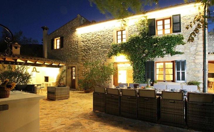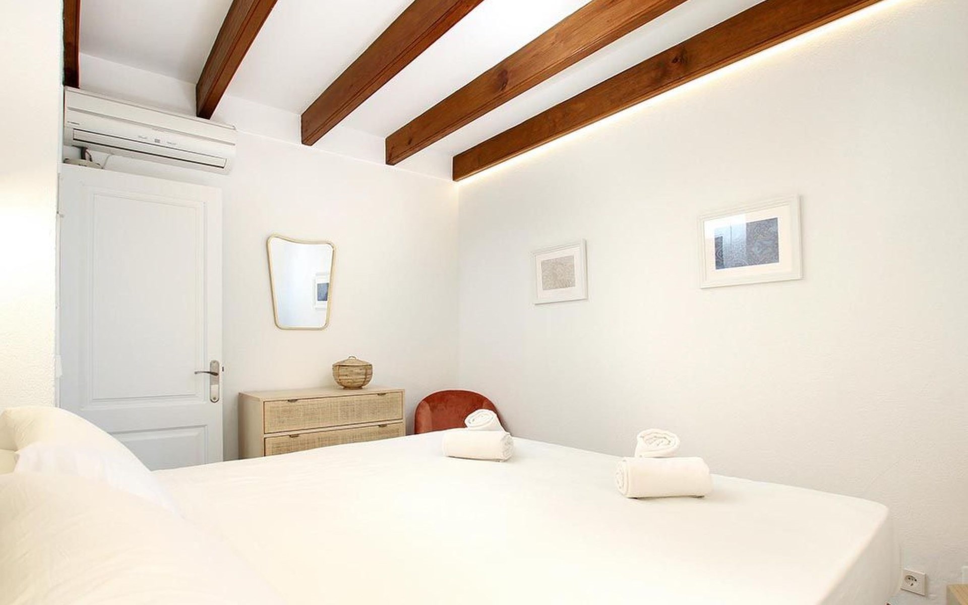 The main entrance of the house gives access to a spacious hallway, equipped with a table and chairs for its function as an indoor dining room. This leads to a large fully equipped kitchen, which still conserves the old fireplace (currently disabled) typical of the old Mallorcan houses.