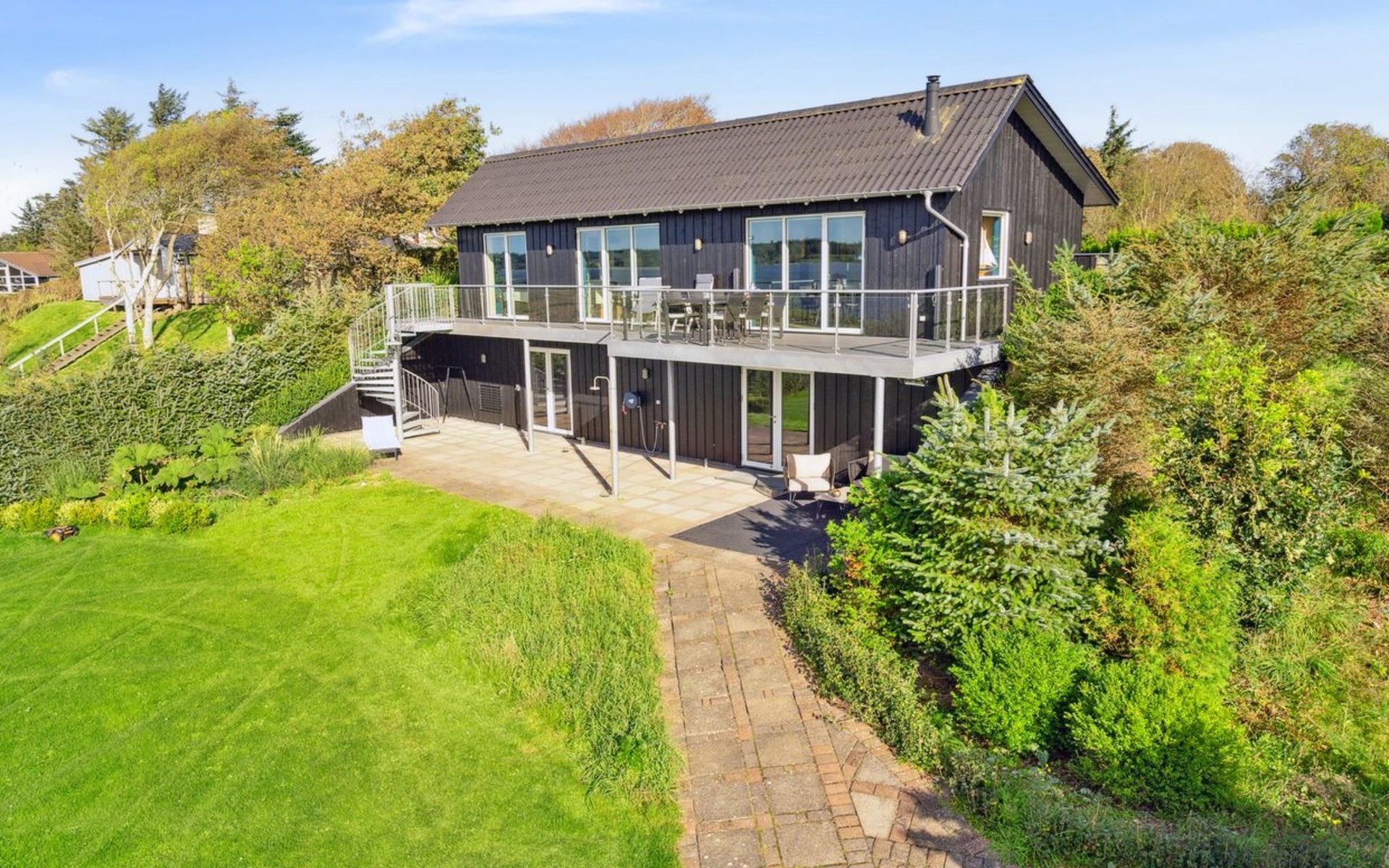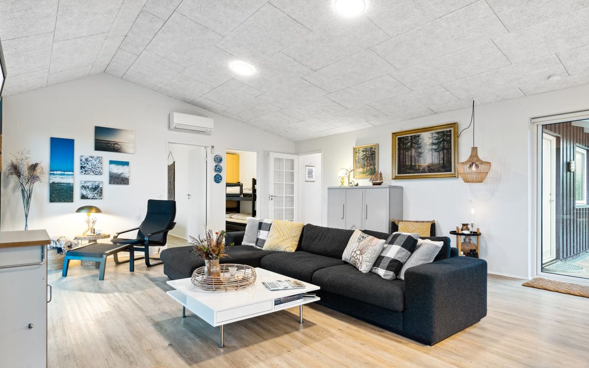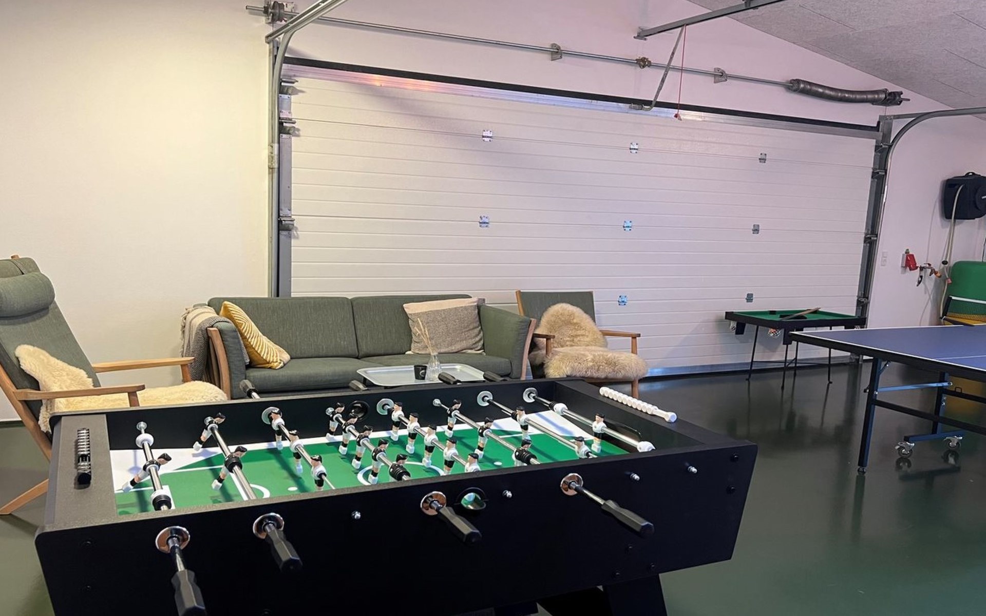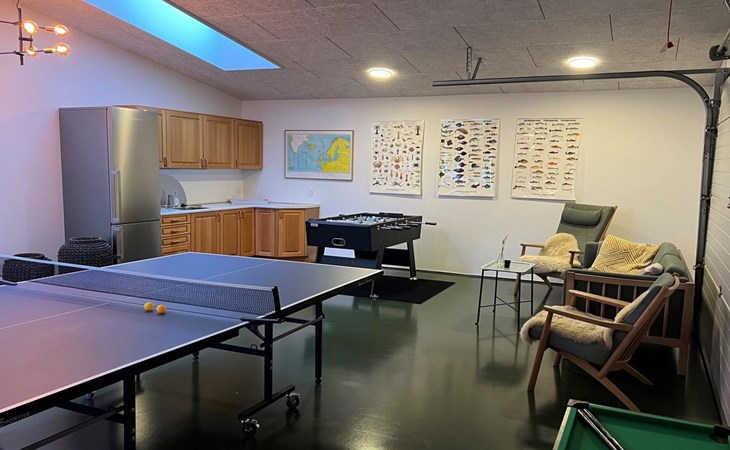 Single-family house, built in 2011. Private: natural state property 3'000 m2. Barbecue. In the house: table football, trampoline, washing machine, tumble dryer. Parking at the house. Grocery 4.5 km. Golf course 7 km. The owner does not accept any youth groups.