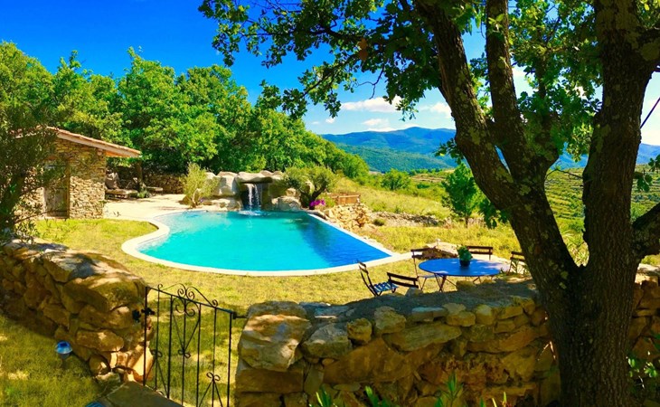 This self-catering private holiday estate is nestled in the mountain of the Languedoc natural park. The local town is just a 5 minutes drive down the hill to Bedarieux. The estate with 2 hectares of land is spoiled with stunning views of the mountains and is completely secluded from the rest of the world. Whether you are looking for a family holiday, an exclusive holiday with friends, or a private retreat for you to escape for some alone time, this is the perfect choice for you.