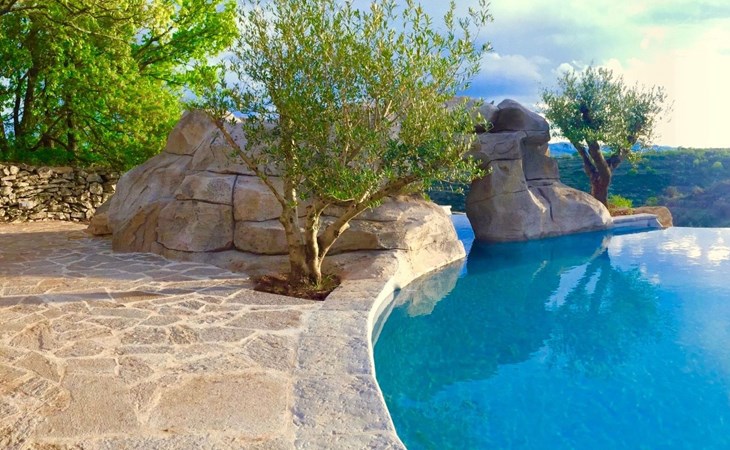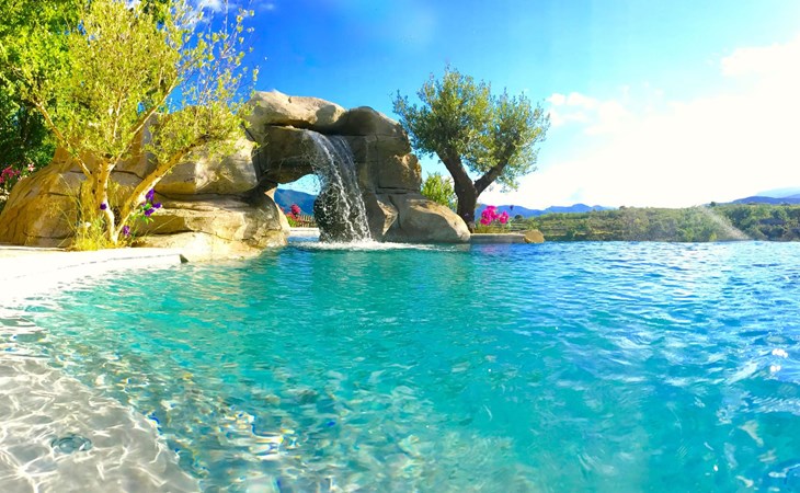 Your private salt water pool boasts a cave and an infinity edge, with a sauna that overlooks both the pool and the valley view. A liveable treehouse and a 200 year old stone hut are there for your enjoyment. Pool table, bbqs, bikes, games, films and music are also at your disposal.