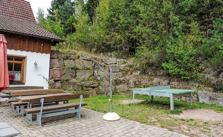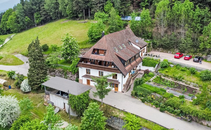 Hinterlehengericht 4 km from Schiltach: Working farm "Biohof Herrenweg". Outside the resort, 3 km from the centre of Schramberg, in a secluded, quiet, sunny position, along the wooded area, in a cul-de-sac, in the countryside. For shared use: garden with lawn for sunbathing. Patio, children's playground. In the house: lounge, central heating system, washing machine (extra), tumble dryer (for shared use, extra). Parking at the house. Grocery 3 km, supermarket 3 km, restaurant 1 km, bus stop 2 km, railway station "Schiltach" 10 km, outdoor swimming pool 12 km, indoor swimming pool 4 km. Golf course (9 hole) 19 km, tennis 12 km, riding stable 6 km, cross country ski track 2 km. Please note: car recommended. Additional accommodations can be booked. The "Biohof" (organic farm) comprises 2 buildings situated in the middle of nature (630 m above sea level), 5 km outside of Hinterlehengericht, with magnificent views to the Black Forest. The farm is run organically, the calves are brought up with their mothers, the meat is marketed by the owner himself. There are also 2 dogs, cats and dwarf rabbits at the property.