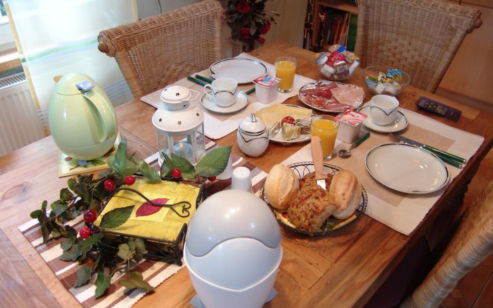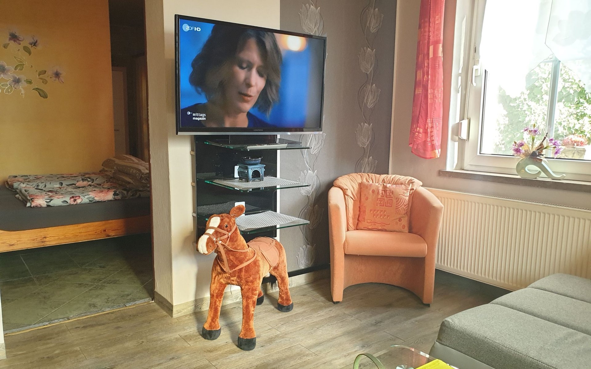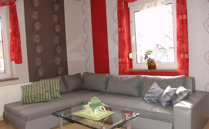 Our holiday flats offer space for up to 4 people to relax and feel at home. The flats are cosily furnished and have all the comforts you need for a carefree stay. These include a double bed and a cosy living area in the living room, a fully equipped kitchen with fridge, microwave, kettle, coffee machine, toaster and egg cooker. Of course, satellite TV and WLAN are also available to keep you connected on holiday.