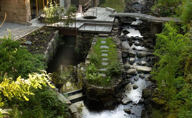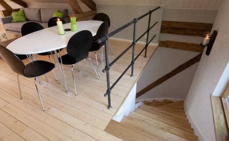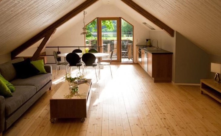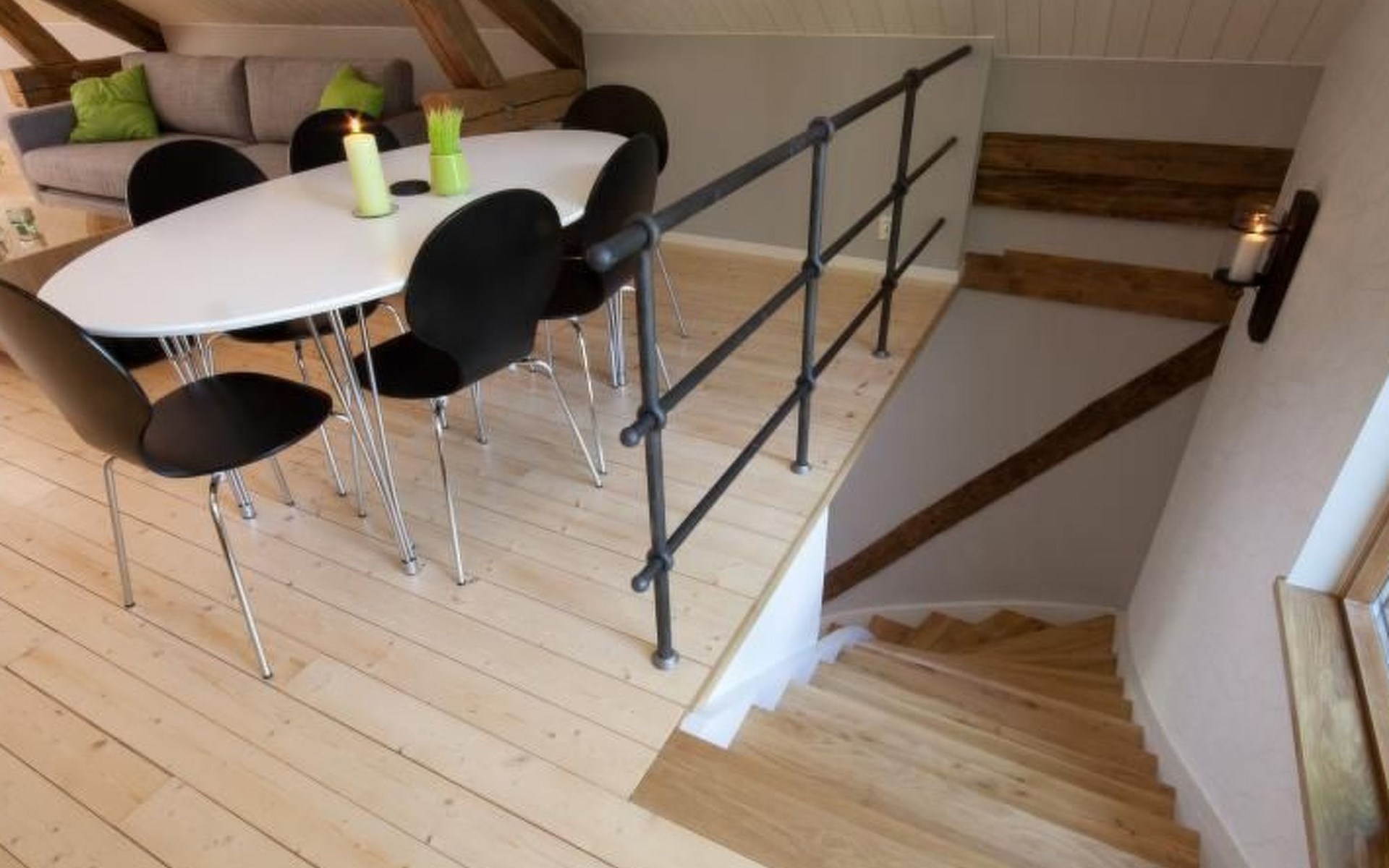 The former mill, in which the house is situated, dates from 1800. In 2012 it was set up as modern accommodation with 95 m² of living space. The house has two bedrooms with two beds and one bedroom with a bunkbed, a hall and a bathroom with shower on the ground floor. On the upper floor there is a spacious living room with a fully equipped kitchen with stove, oven, refrigerator and dishwasher. There is also a TV, a comfortable couch (sofa), and Wi-Fi. Thus, there are sleeping possibilities for 9 people in the house.