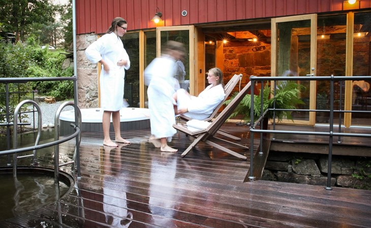 The basement also has a spa. This is not included in the rent, but it is possible to also book this. In the spa you will find, sauna, cold bath, hot tub, showers, a toilet and a relaxation room.