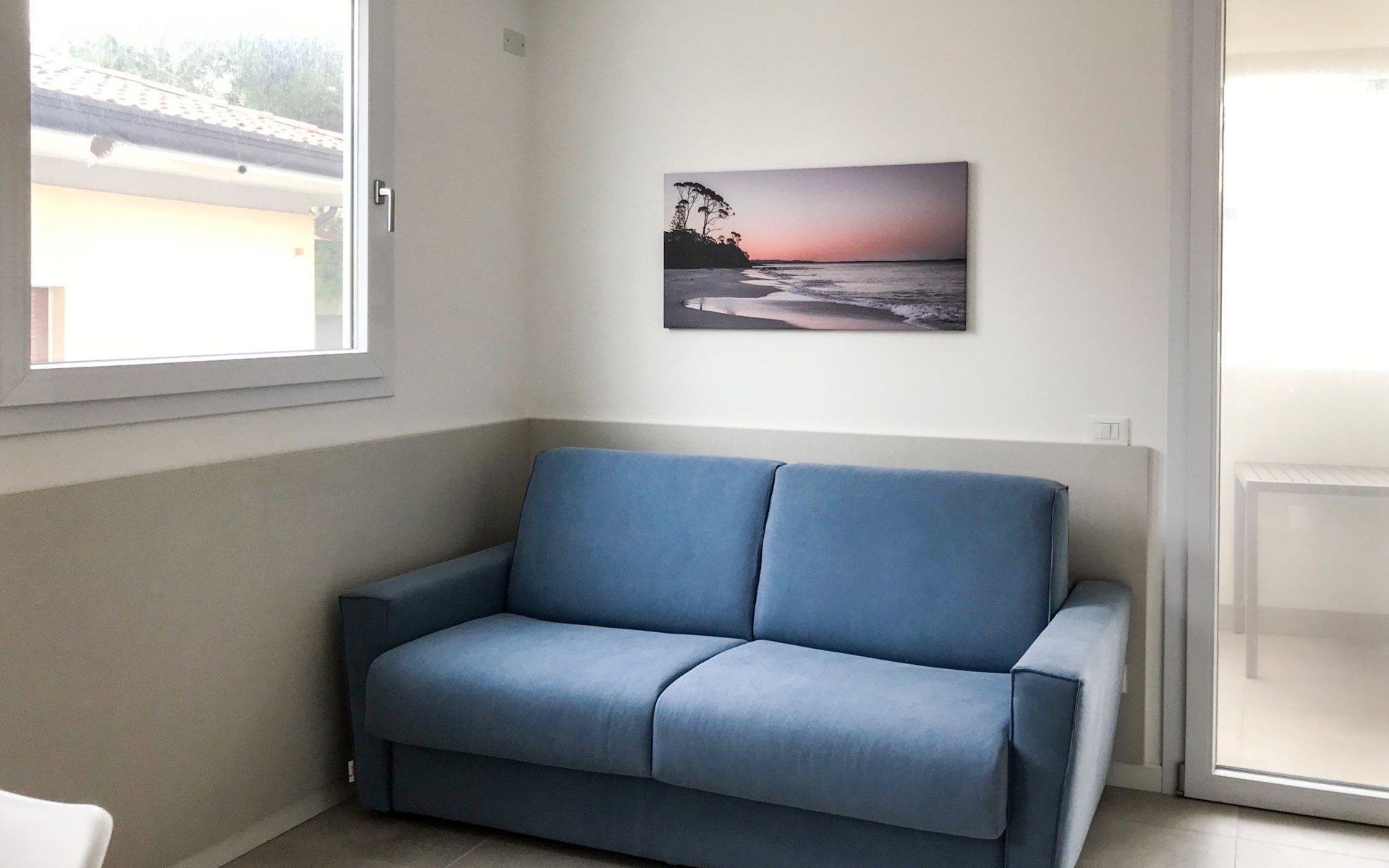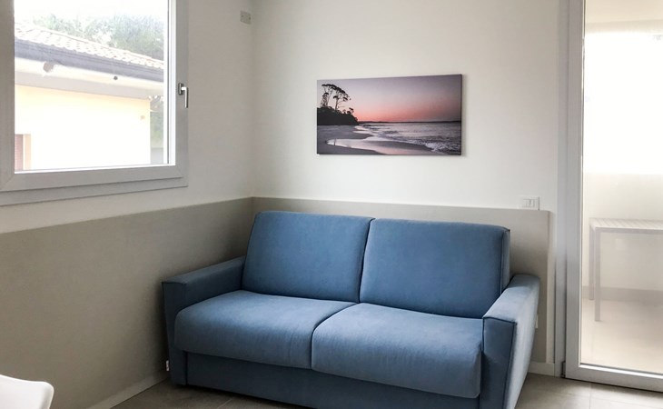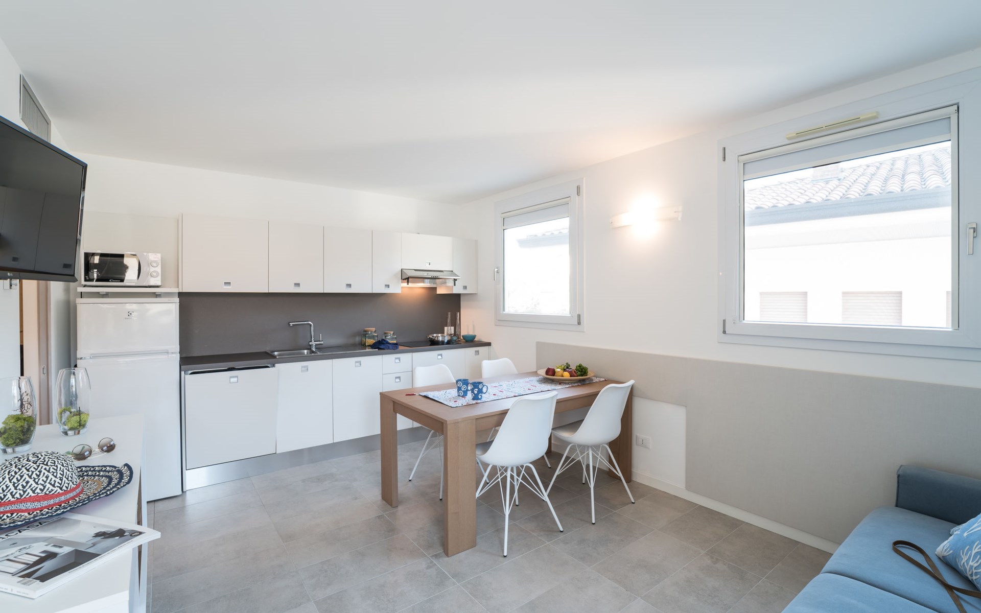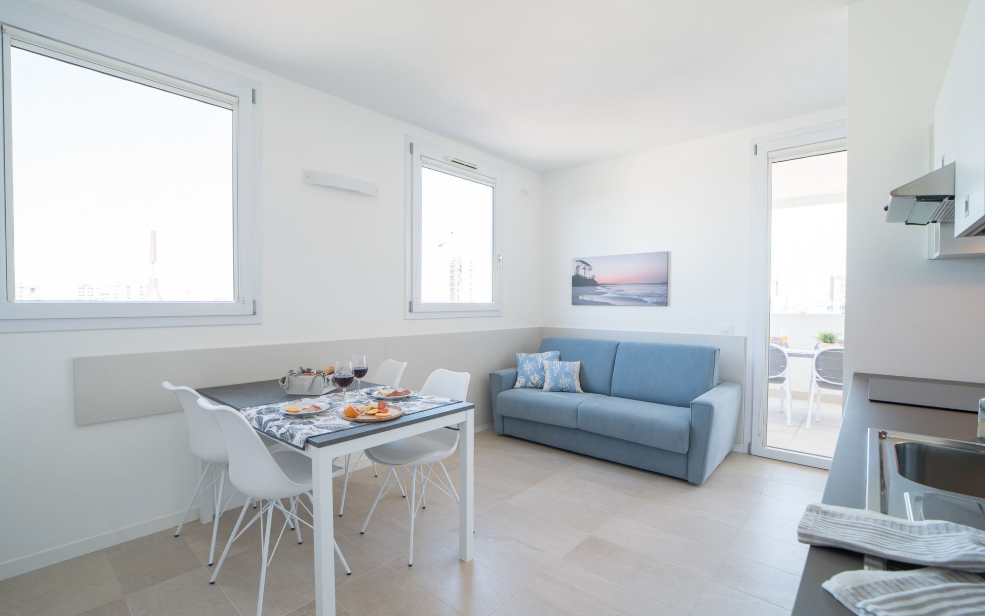 Apartment block "Torre Bianca", 8 storeys, built in 2019. 17 apartments in the residence. In the district of Sabbiadoro 250 m from the centre of Lignano-Sabbiadoro, 13 km from the centre of Bibione, 95 km from the centre of Trieste, 400 m from the sea. In the house: lift, washing machine (for shared use, extra), bicycle rental. Parking at 180 m. Supermarket 350 m, pedestrian zone, bus stop 250 m, railway station "Latisana (Milano-Venezia-Triest)" 20 km, sandy beach 400 m. Marina 1.2 km, golf course (18 hole) 7.2 km. The owner does not accept any youth groups. Please note: Loading and unloading of baggage is possible at the holiday house. Beach service: From approx. the beginning of May to approx. mid-September, 1 sun lounger, 1 deck chair and 1 parasol per accommodation unit are included in the rental price.