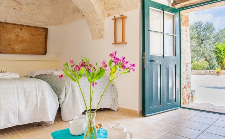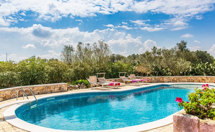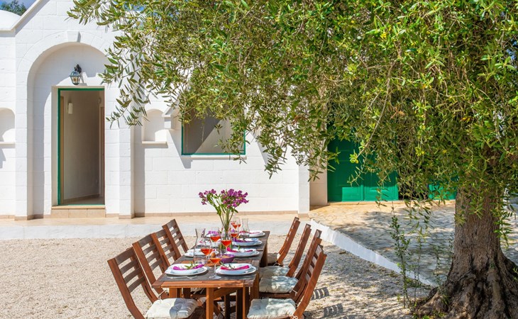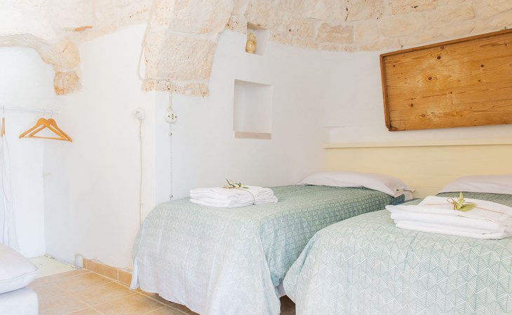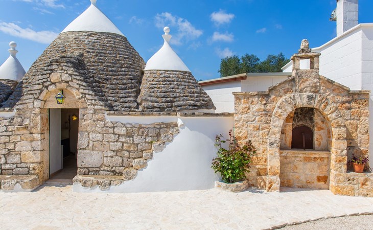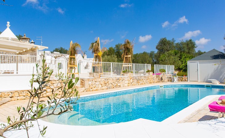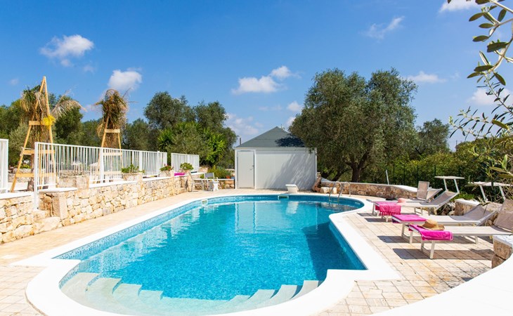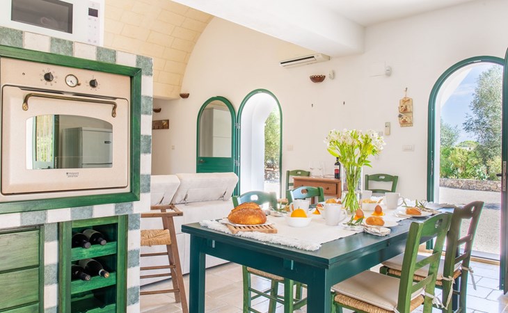 Rent trulli with private pool in Puglia near Ostuni just 14 km from the sandy beaches and 20 km from Brindisi airport. It can accommodate a family of five and even groups of up to 10 people. It is located in a park of olive trees 1000 m from a farm with animals, open for the sale of fresh local products. Enjoy the peace that this little paradise offers as well as a playground for children and the proximity to the freeway just 9 km away.