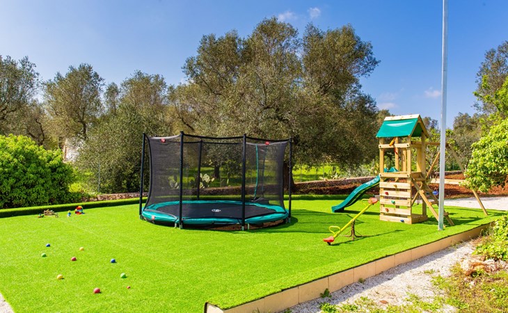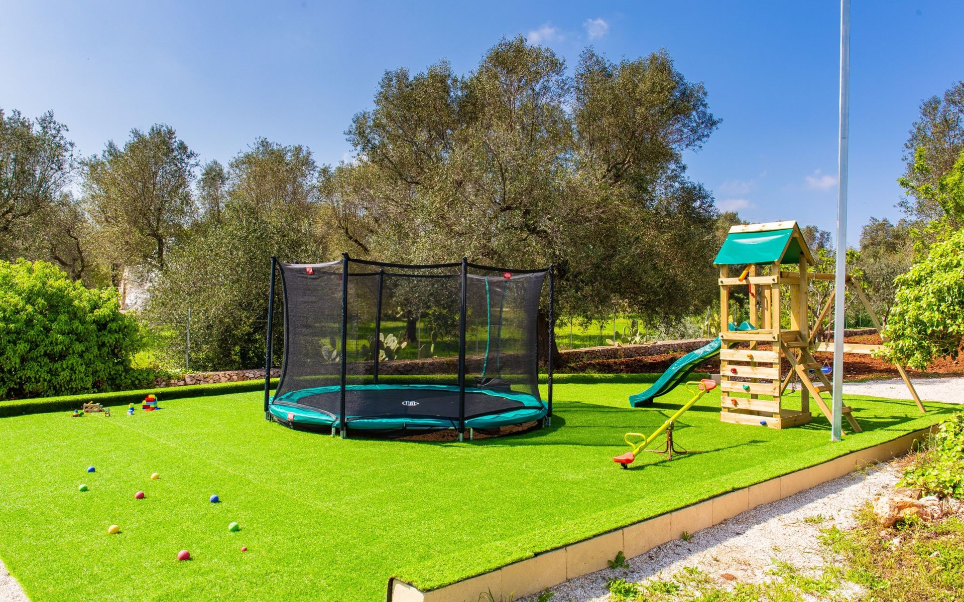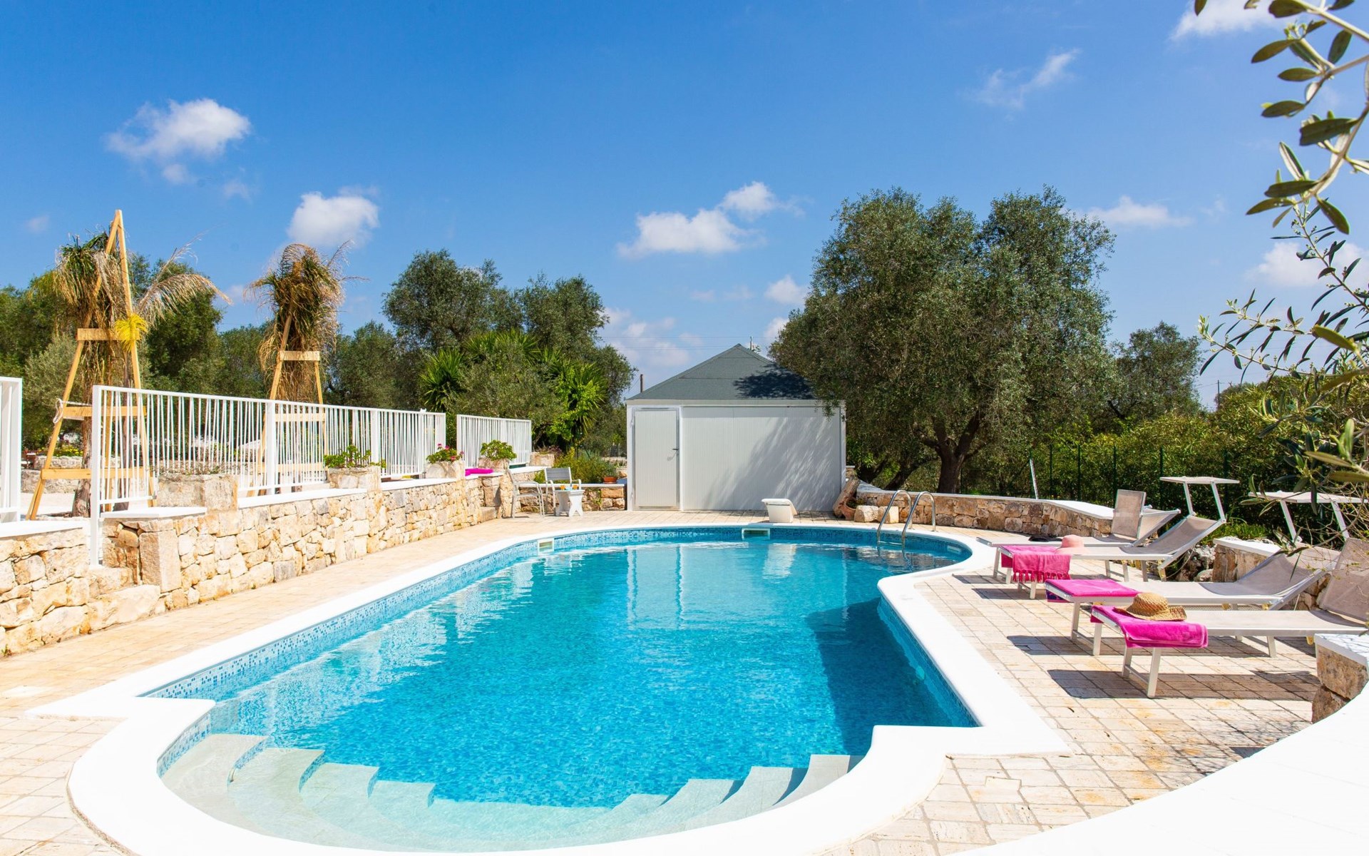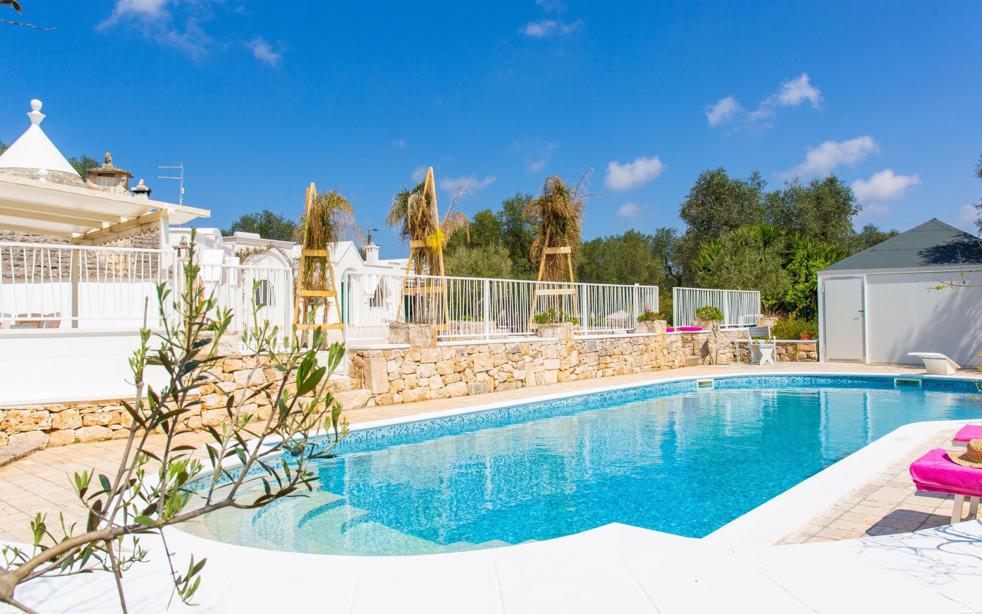 the main building offers a fully equipped kitchen, a living room, a double bedroom and a bathroom with shower. With external access to the main structure and attached to it you enter another structure with three bedrooms and two bathrooms with shower, in particular here there is a double bedroom with en-suite bathroom, a double bedroom, a bedroom with two individual beds. With external access from the main structure and attached to it there is a trullo with two single beds (double use) and a bathroom with shower. For outdoor dining there are three verandas. For the children there are the springs, the swing and the slide. There are five air conditioners and the heating system. The pool is 10 x 4 m large.