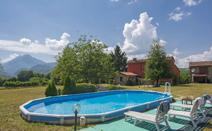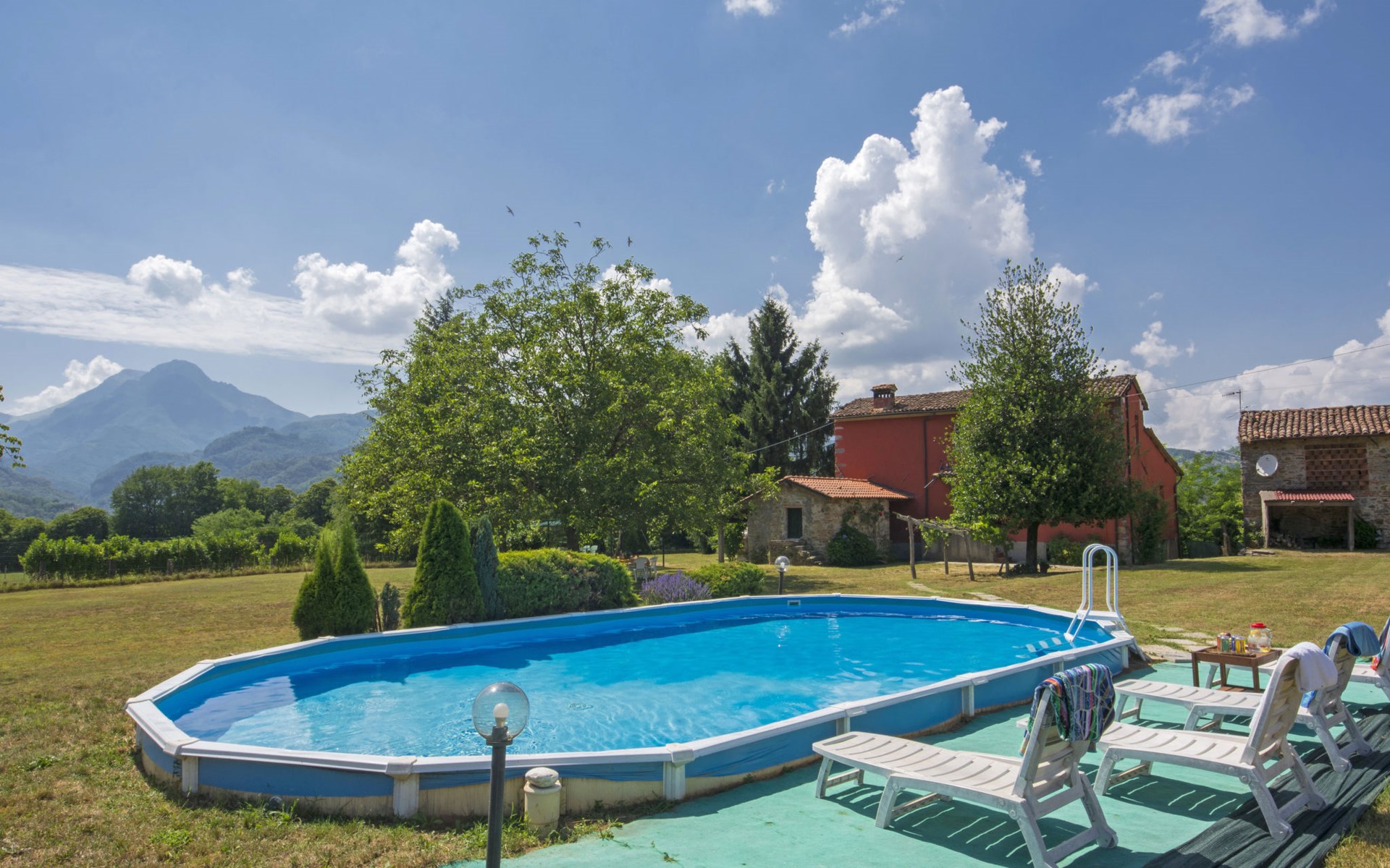 Historical country house "San Bernardino", 410 m a.s.l., detached, renovated. 2 km from the centre of Barga, 39 km from the centre of Lucca, 60 km from the centre of Pisa, 60 km from the sea. Private: park 5'000 m2, swimming pool (5 x 10 m, depth 100 cm, seasonal availability: 04.May. - 28.Sep.). Pergola (20 m2), garden furniture, barbecue. Heating to be paid on the spot, heating available only from 01.Nov. - 07.Apr.. Parking on the premises. Shop 2 km, grocery 2 km, supermarket 2 km, bus stop 500 m, railway station "Barga/Mologno" 3 km, thermal baths "Bagni di Lucca" 21 km. Tennis 2 km, riding stable 300 m. Nearby attractions: Castelnuovo di Garfagnana 12 km, Ponte Della Maddalena 16 km, Riserva Naturale Orrido di Botri 34 km. Please note: car recommended. Suitable for families.