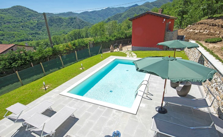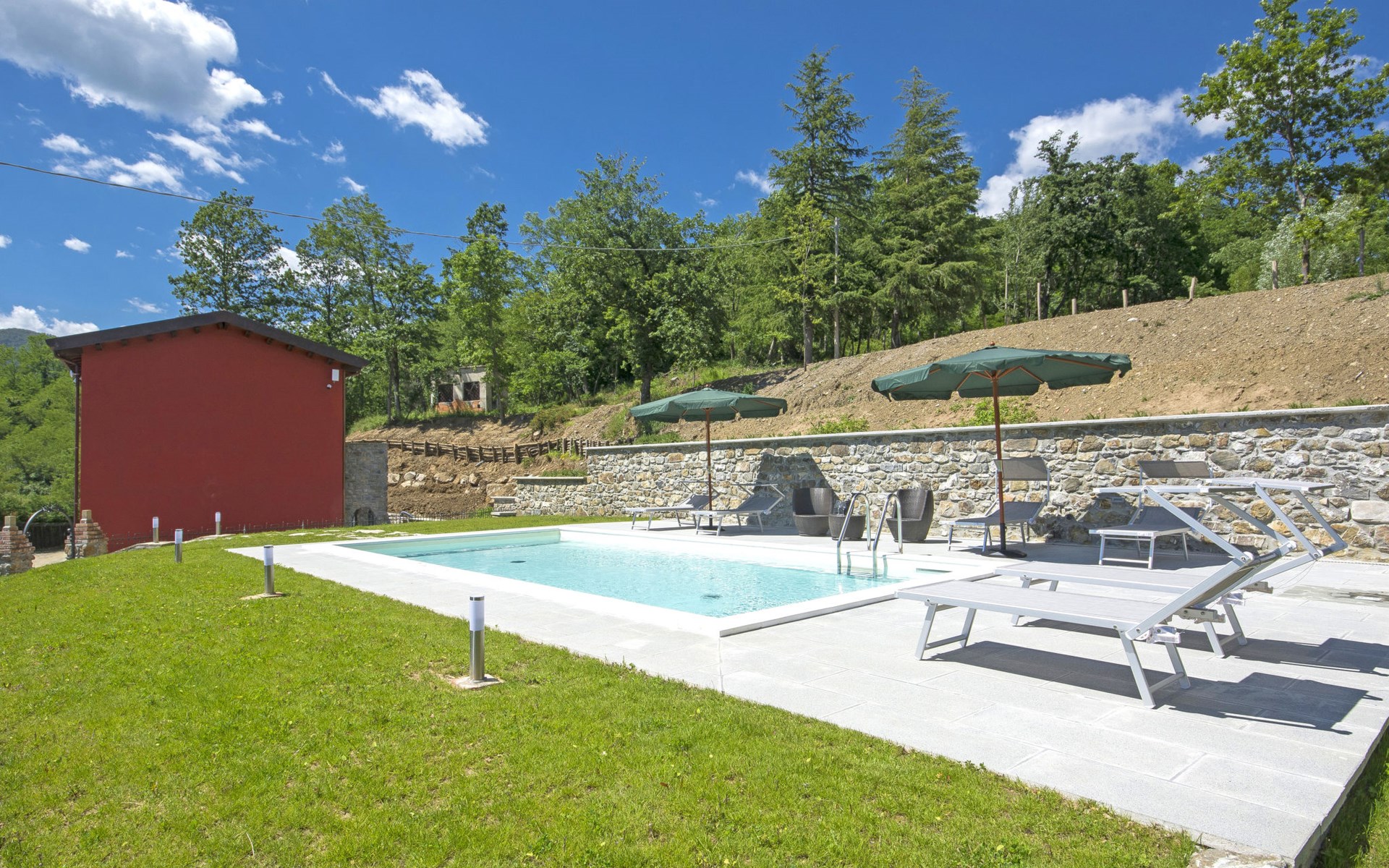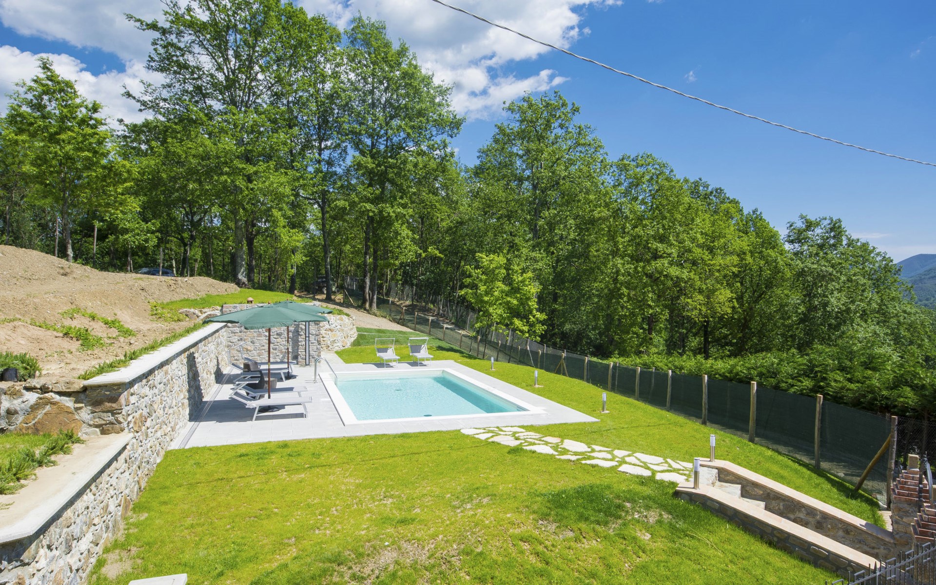 A few kilometers away from the sea of the Cinque Terre and the beaches and attractions of the Versilia coast lies this beautiful and elegant countryhouse of the nineteenth century, recently renovated with materials of the highest quality. Country house "Agr. Castello della Mugazzena", renovated, surrounded by trees. In the hamlet Tresana 8 km from the centre of Aulla, 10 km from the centre of Villafranca in Lunigiana, 15 km from the centre of Castello di Malgrate, in a secluded, quiet position, in the countryside. For shared use: property 140 ha, swimming pool (8 x 4 m, depth 120 cm, seasonal availability: 15.May. - 30.Sep.). Outdoor shower, garden furniture. In the house: internet access, central heating system, heating to be paid on the spot (15.Apr. - 31.Oct.). Cook on request. Motor access (1 km via unmade road). Parking at the house. Grocery 5 km, supermarket 8 km, restaurant 5 km, bus stop 800 m, railway station 8 km, thermal baths "Equi Terme" 30 km. Tennis 5 km, riding stable 5 km. Nearby attractions: Fivizzano 25 km, Pontremoli 30 km, Sarzana 27 km, La Spezia 29 km, Lerici 32 km, Riomaggiore (5 Terre) 44 km. Well-known lakes can easily be reached: Cerreto Laghi 46 km, Lago di Gramolazzo 43 km. Please note: car recommended. Cooking courses bookable on request. Local sale of farm products. Part of the house is closed and unoccupied. Guests can visit the company's wine cellar, purchase local wine and oil and enjoy the nature trails where they can meet the typical fauna and flora of the place.