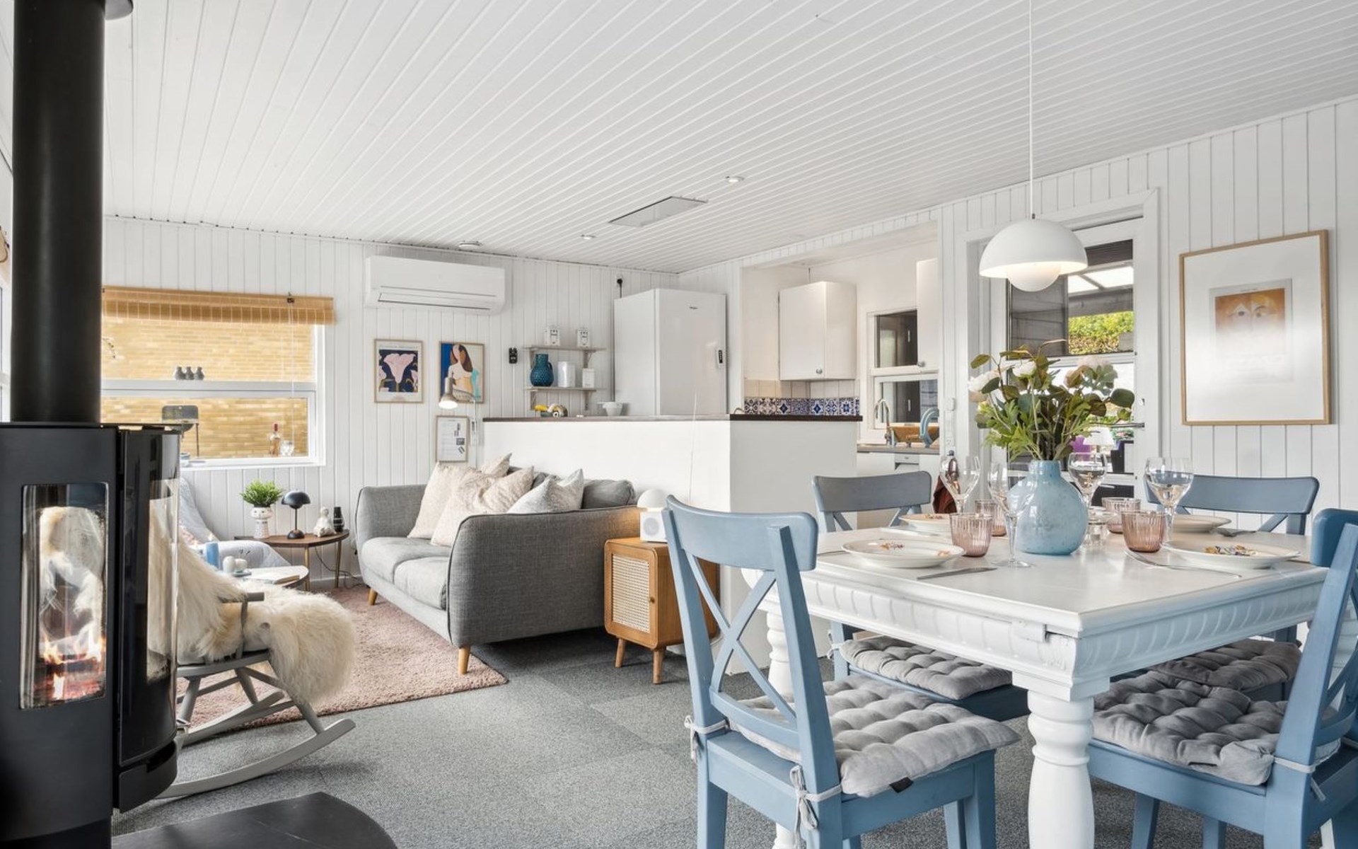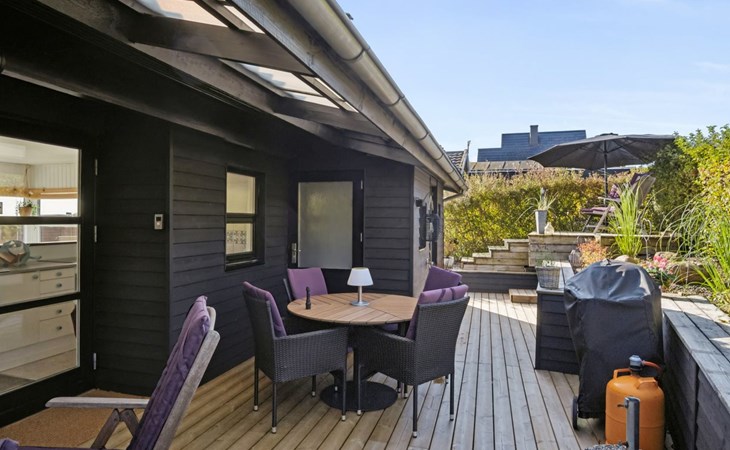 Single-family house, built in 1947. 100 m from the sea. Private: property 400 m2, well-kept garden. Outdoor shower, barbecue, children's playground. In the house: washing machine. Parking at the house. E-charging station. Grocery 4 km. The owner does not accept any youth groups.