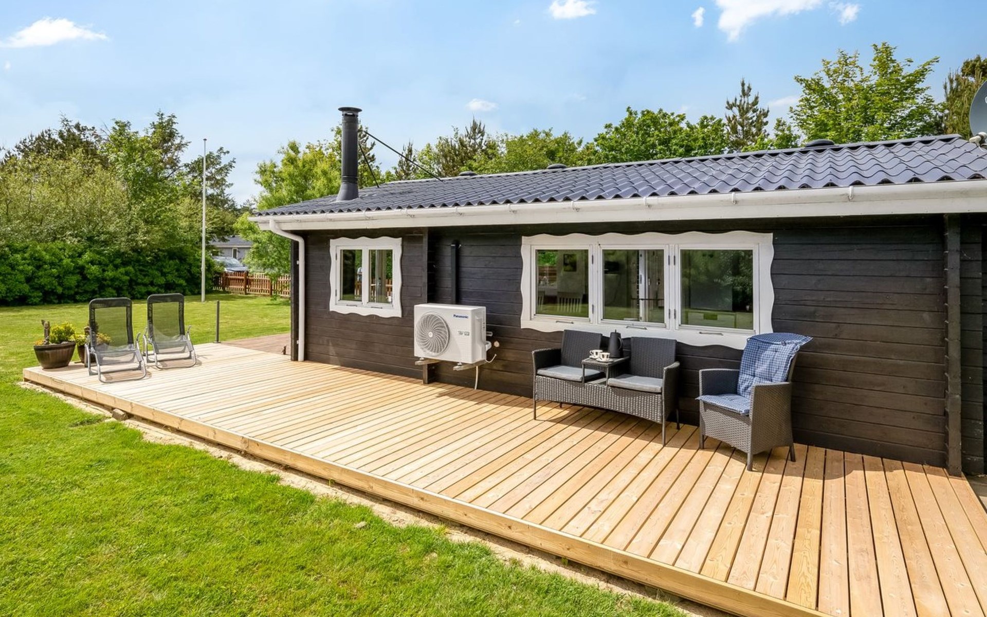 Single-family house, built in 1999. For shared use: garden. Private: natural state property 1'097 m2, garden (fenced). Terrace (30 m2). In the house: washing machine. Parking at the house. Grocery 5.5 km. The owner does not accept any youth groups.