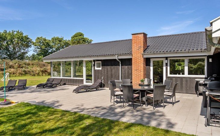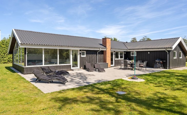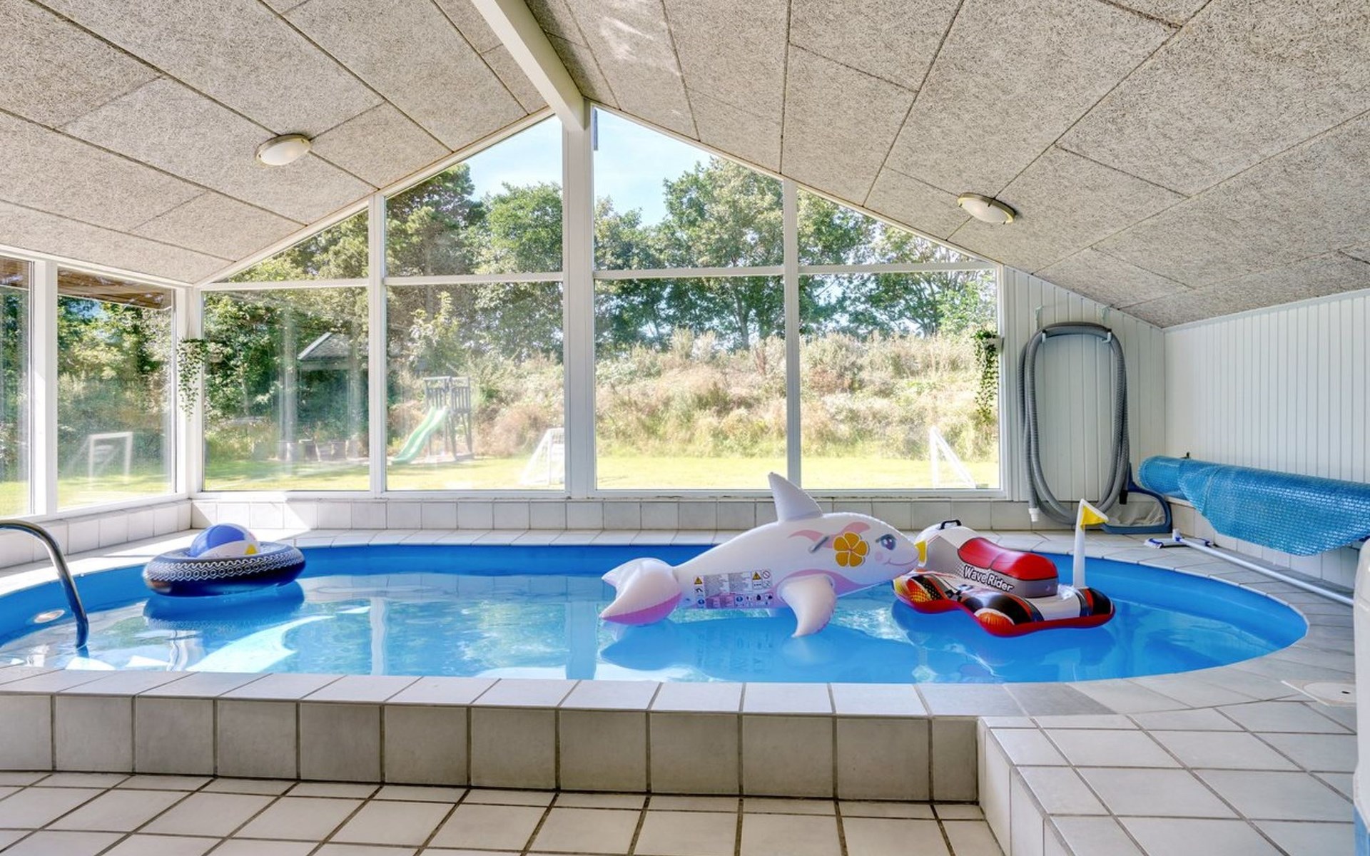 Single-family house, built in 1973. 1.3 km from the sea. For shared use: garden. Private: property 1'500 m2, well-kept garden (fenced), indoor pool (3 x 6 m, 18 m2, depth 120 - 120 cm). Terrace (100 m2), barbecue, children's playground. In the house: sauna, washing machine. Parking at the house. E-charging station. Grocery 650 m. The owner does not accept any youth groups.