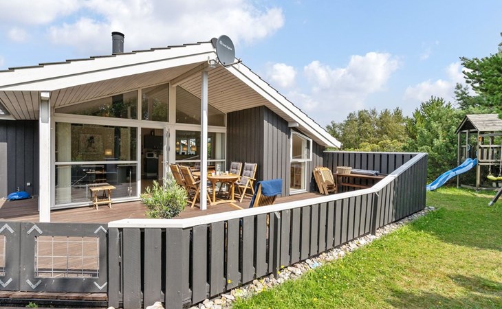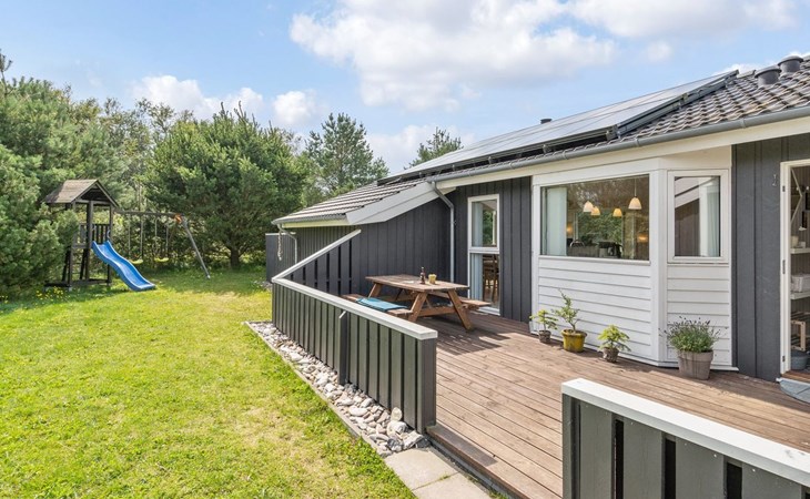 Single-family house, built in 2006. 1 km from the sea. Private: natural state property 1'680 m2. Terrace (125 m2), barbecue, children's playground (swing). In the house: washing machine, tumble dryer. Parking at the house. Grocery 3.7 km. The owner does not accept any youth groups.