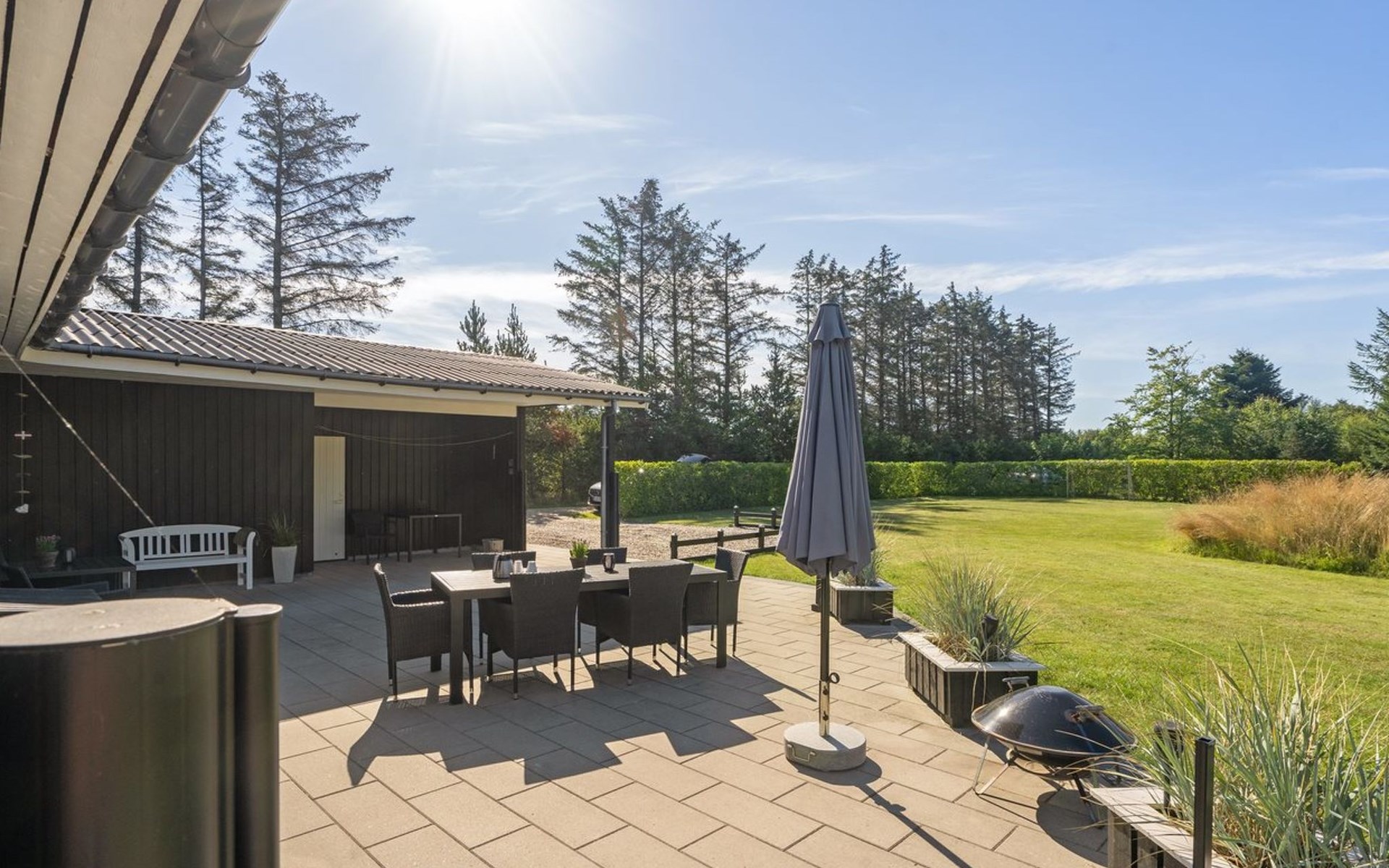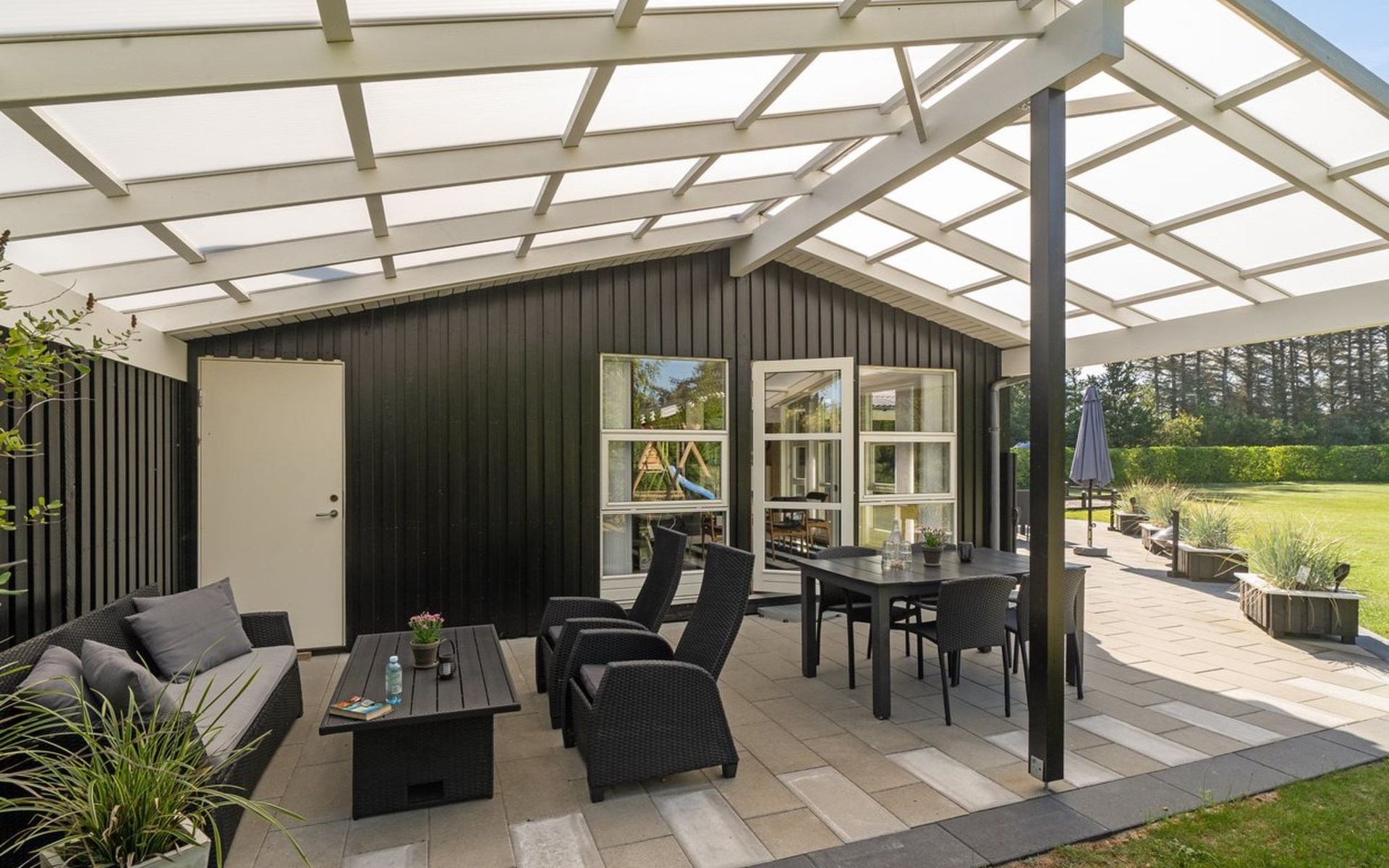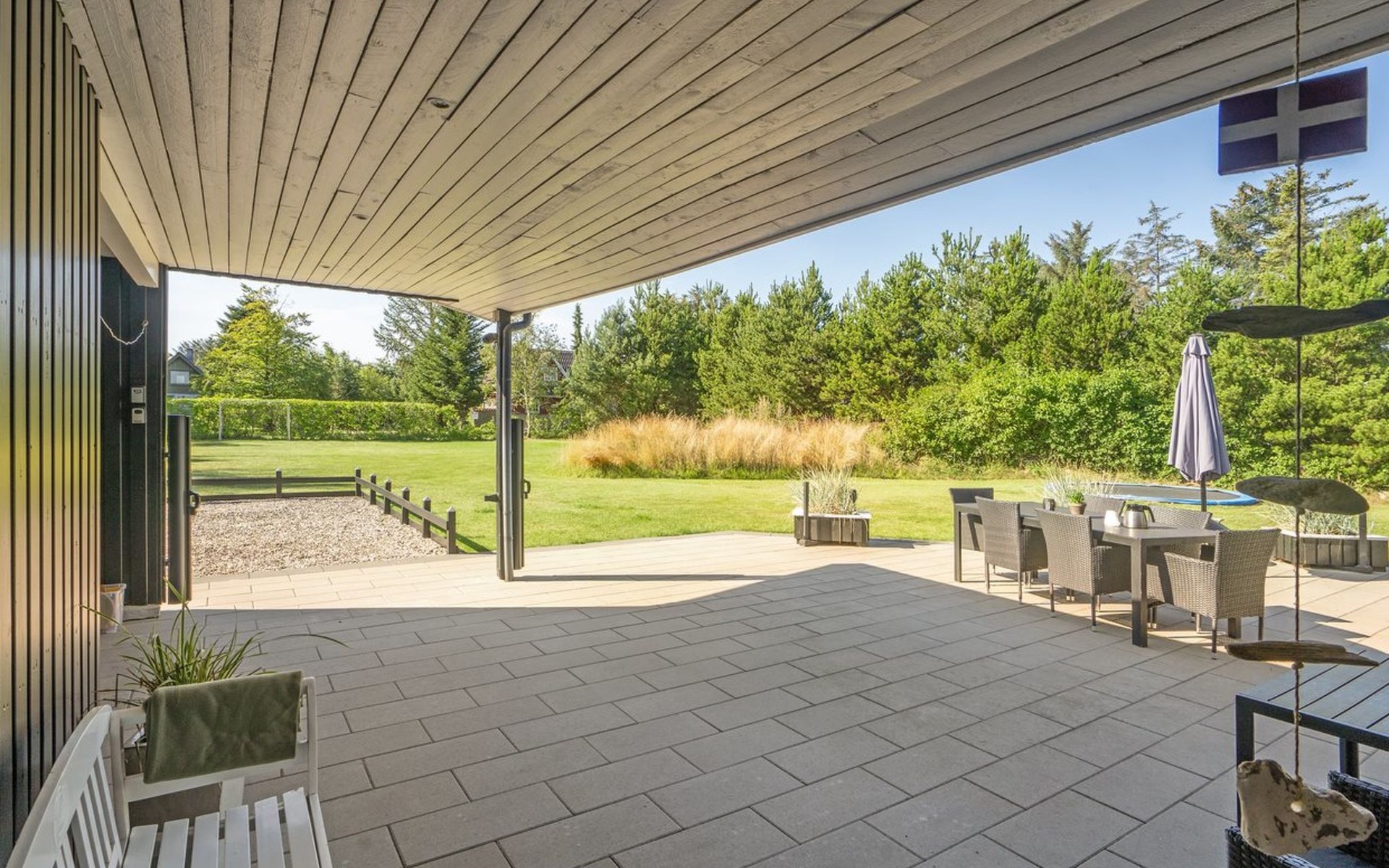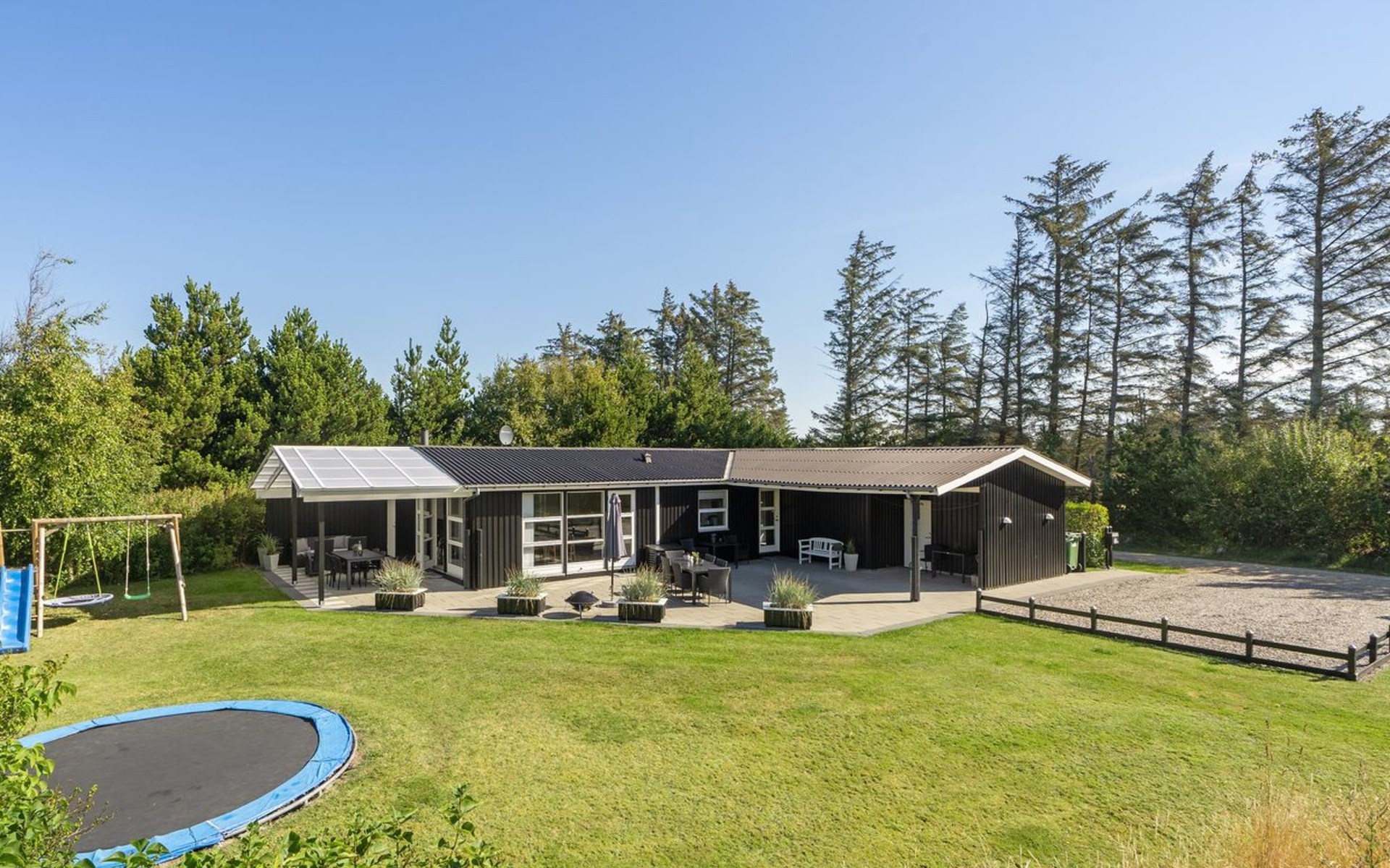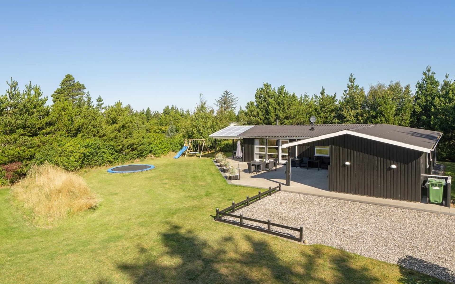 Single-family house, built in 2004. 400 m from the sea. Private: natural state property 1'700 m2. Terrace (65 m2), children's playground (swing). In the house: sauna, trampoline, washing machine, tumble dryer. Parking at the house. E-charging station. Grocery 1 km. The owner does not accept any youth groups.