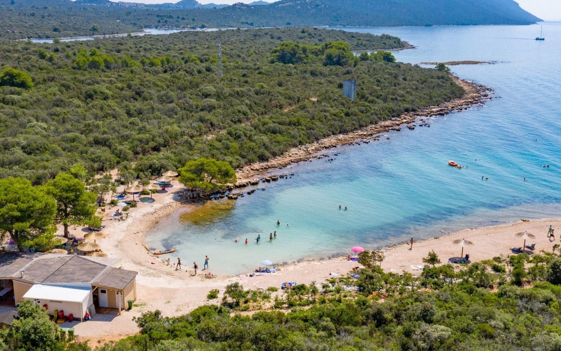 Camping Ugljan Resort in quite area on sooth west part of Island Ugljan. There is a small market and beach restaurant within resort and village Ugljan is only 2 km away.