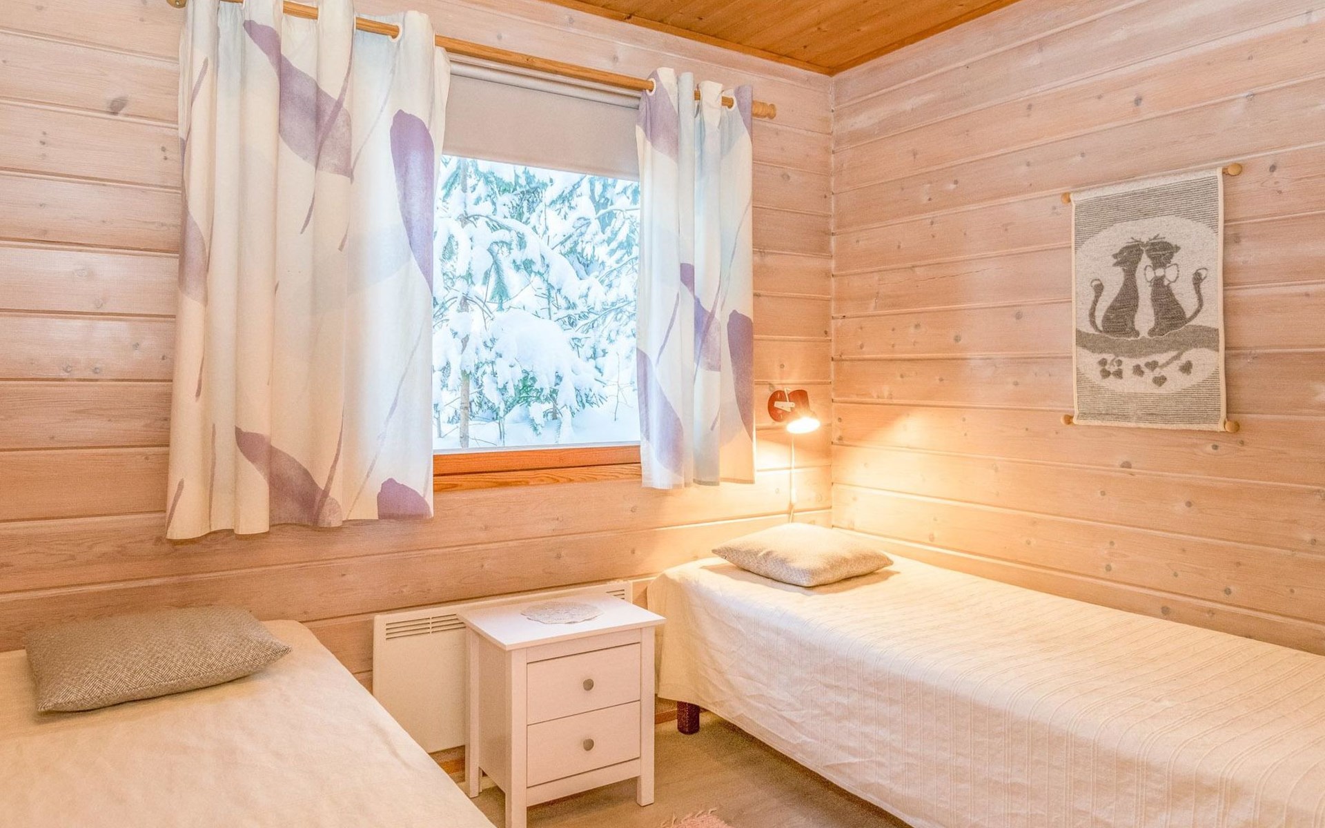 Log cottage 1990, living room/kitchen 2 extra beds, bedroom 2 beds, bedroom 2 beds, sauna (wooden stove), washroom shower and WC, dressing room, terrace.