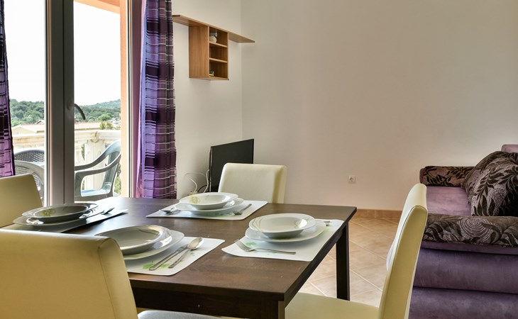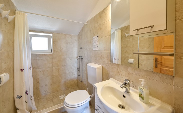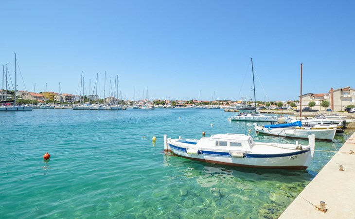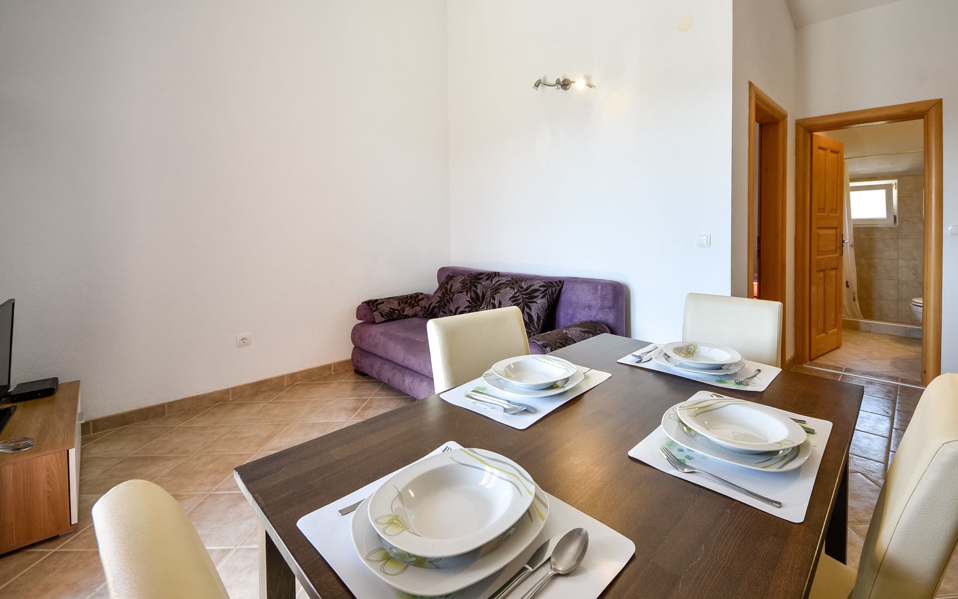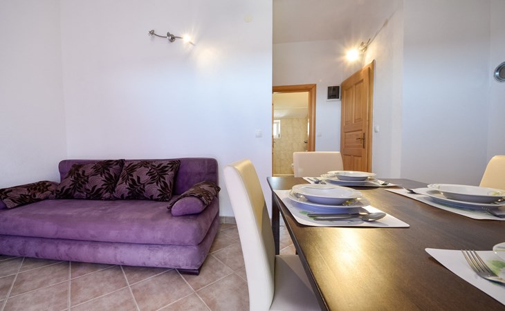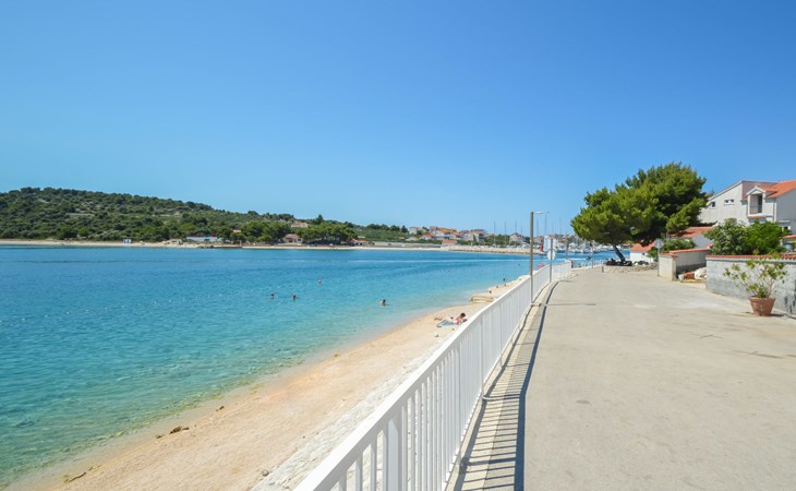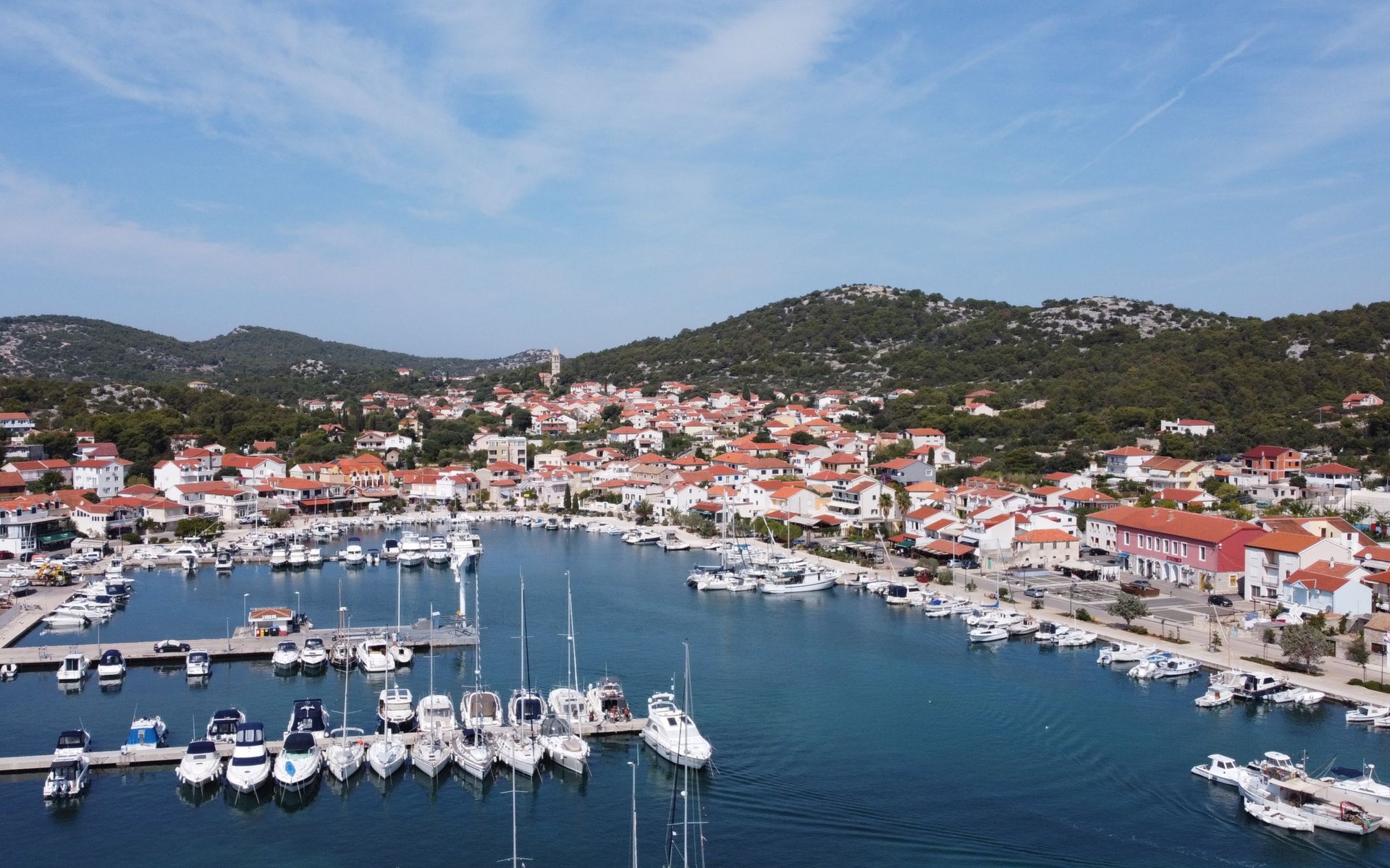 Apartment house "Milin". 500 m from the centre of Jezera, 2.4 km from the centre of Tisno, in a quiet, sunny, elevated position, 600 m from the sea, 850 m from the beach. For shared use: property 2'000 m2. Barbecue. In the house: internet access. Motor access to the house (50 m via unmade road). Parking at the house on the premises. Shop 200 m, restaurant 500 m, bus stop 8.5 km, pebble beach 850 m, diving center 800 m. Riding stable 2 km. The owner does not accept any youth groups. Neighbourhood highly sensitive to noise. Quietness and good behaviour expected.