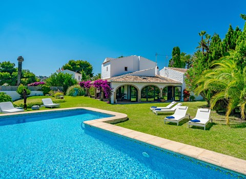 Beautiful villa "Centauro", 2 storeys. In the district of Montgo, in a quiet, sunny, elevated position in the residential district, 9 km from the sea. Private: terraced garden, 1'000 m2 (fenced) with wildlife garden, orchard, swimming pool (5 x 11 m, seasonal availability: 01.Jan. - 31.Dec.) with internal staircase. Supermarket 1.5 km, shopping centre 6 km, restaurant 1.5 km, sandy beach "Arenal" 9 km. Groups of teenagers on request only.