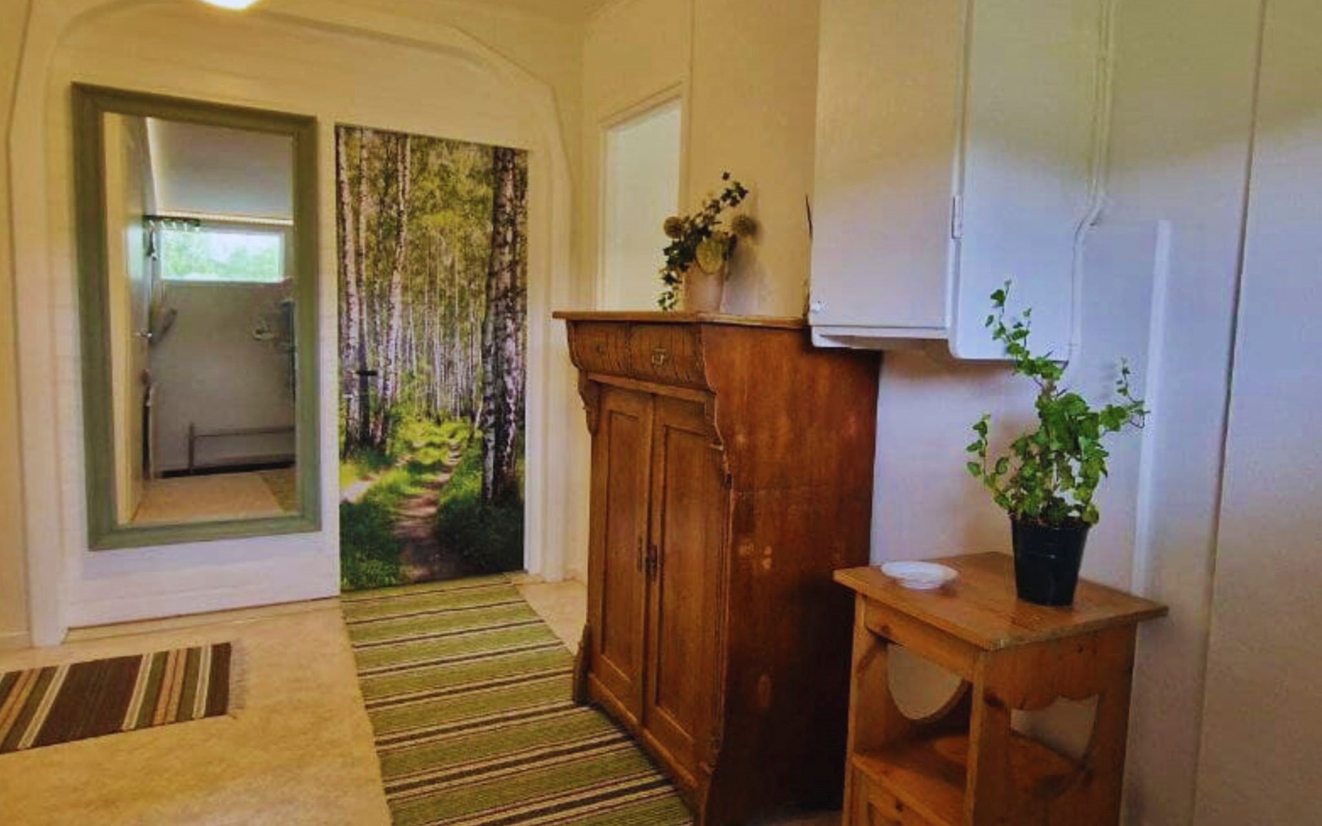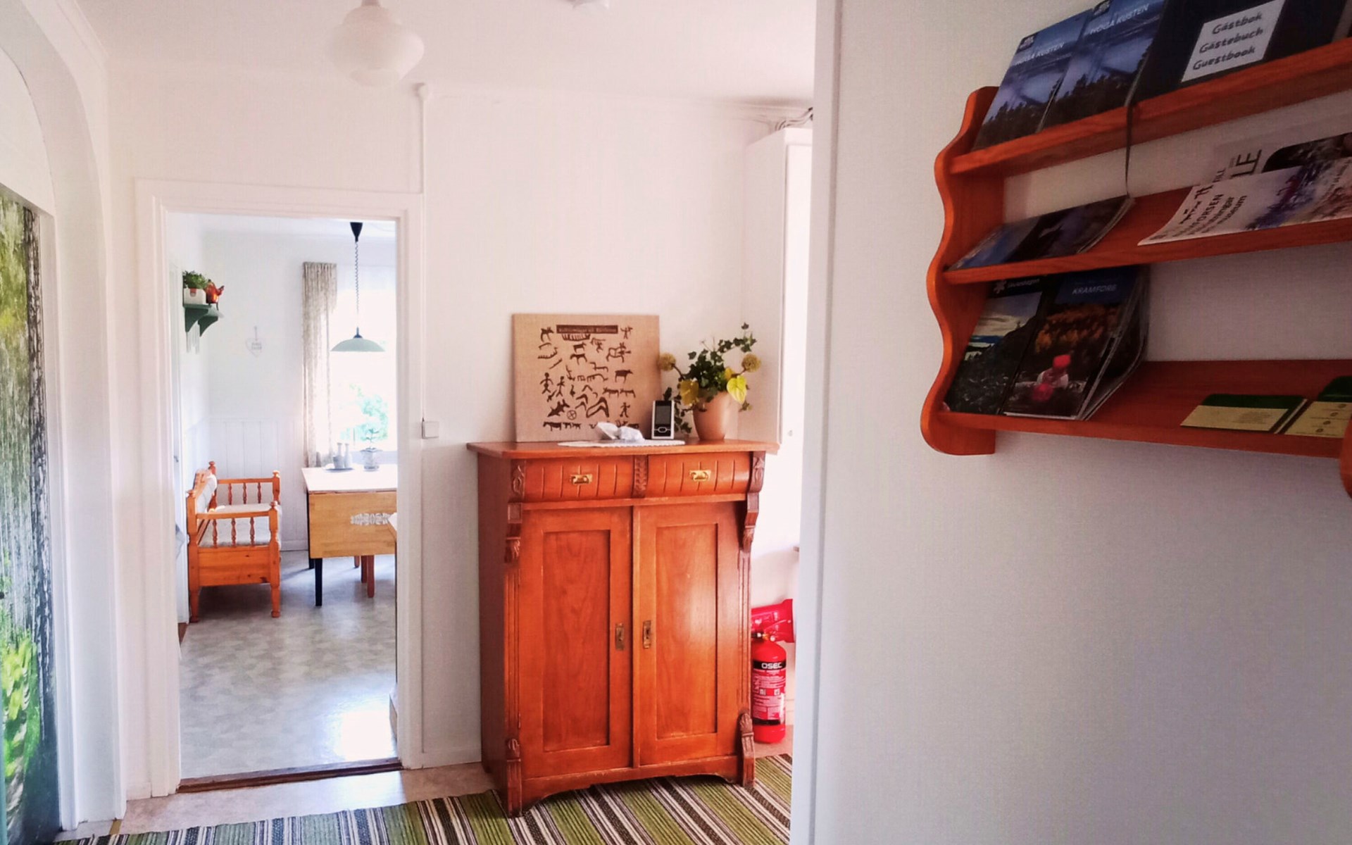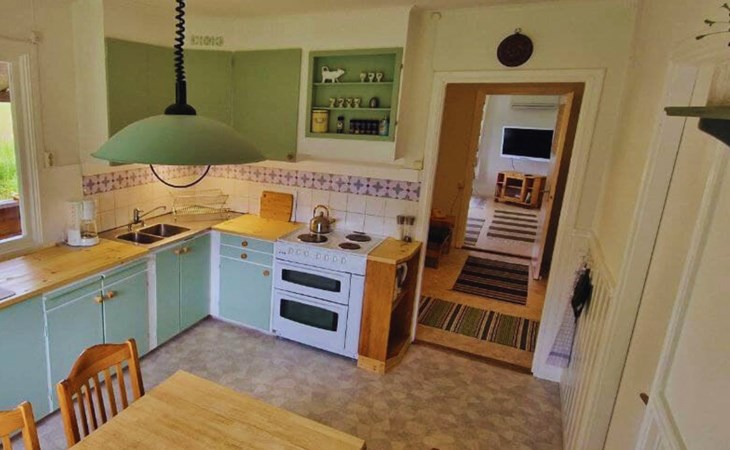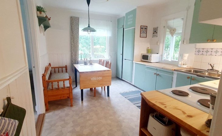 There are shops in two directions, each about 12 kilometres away. Petrol station, restaurants, swimming pool, pharmacy, cash machine and a help centre are also not far away. Loppis and a few small farm shops can be found in the wider area. The landscape is mainly characterised by meadows, forests, lakes, rivers and valleys, where you can pick many different berries and mushrooms.