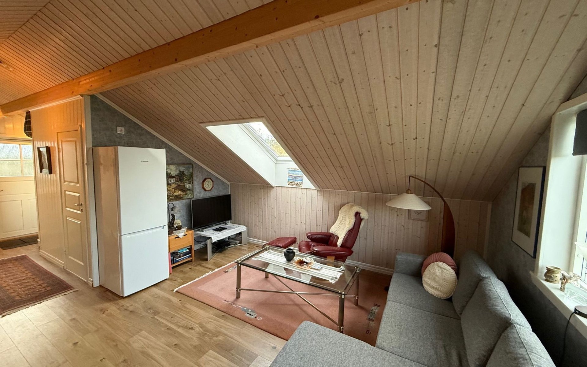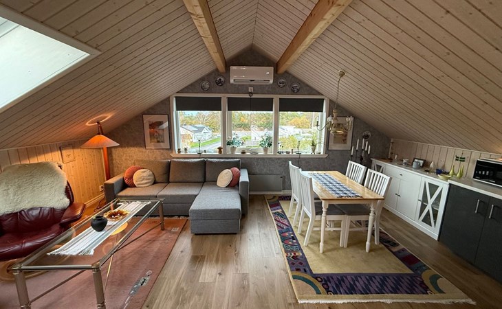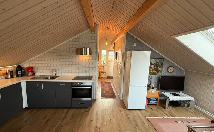 In the 50 m² holiday home there is a bedroom with a luxurious double bed and a sofa bed with room for 2 people and a bathroom with shower. The kitchen is fully equipped with dishwasher, microwave, oven, fridge and freezer. In the living room there is a TV with German and Swedish channels.
