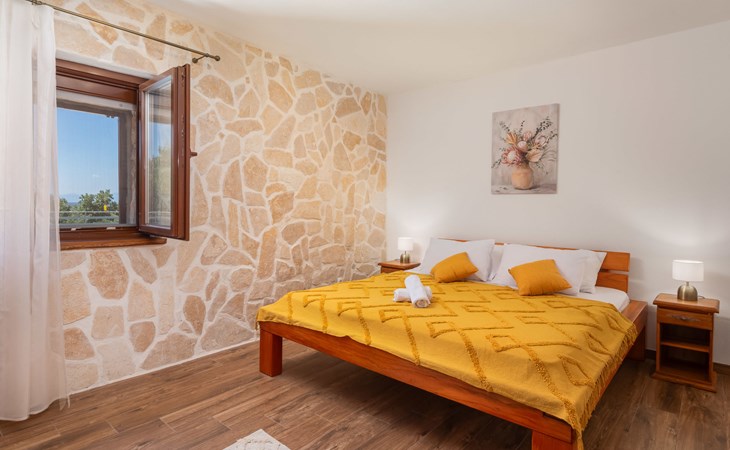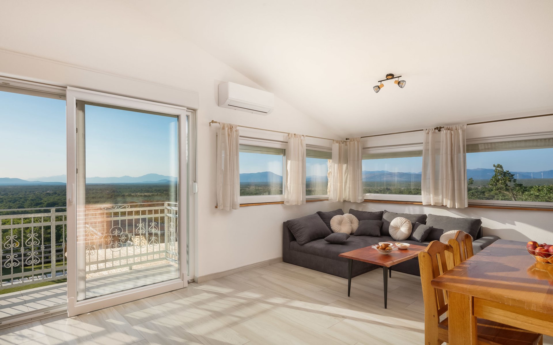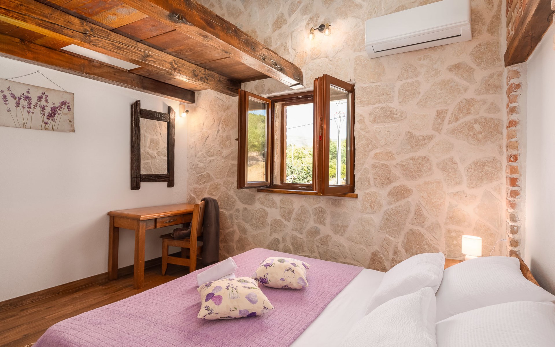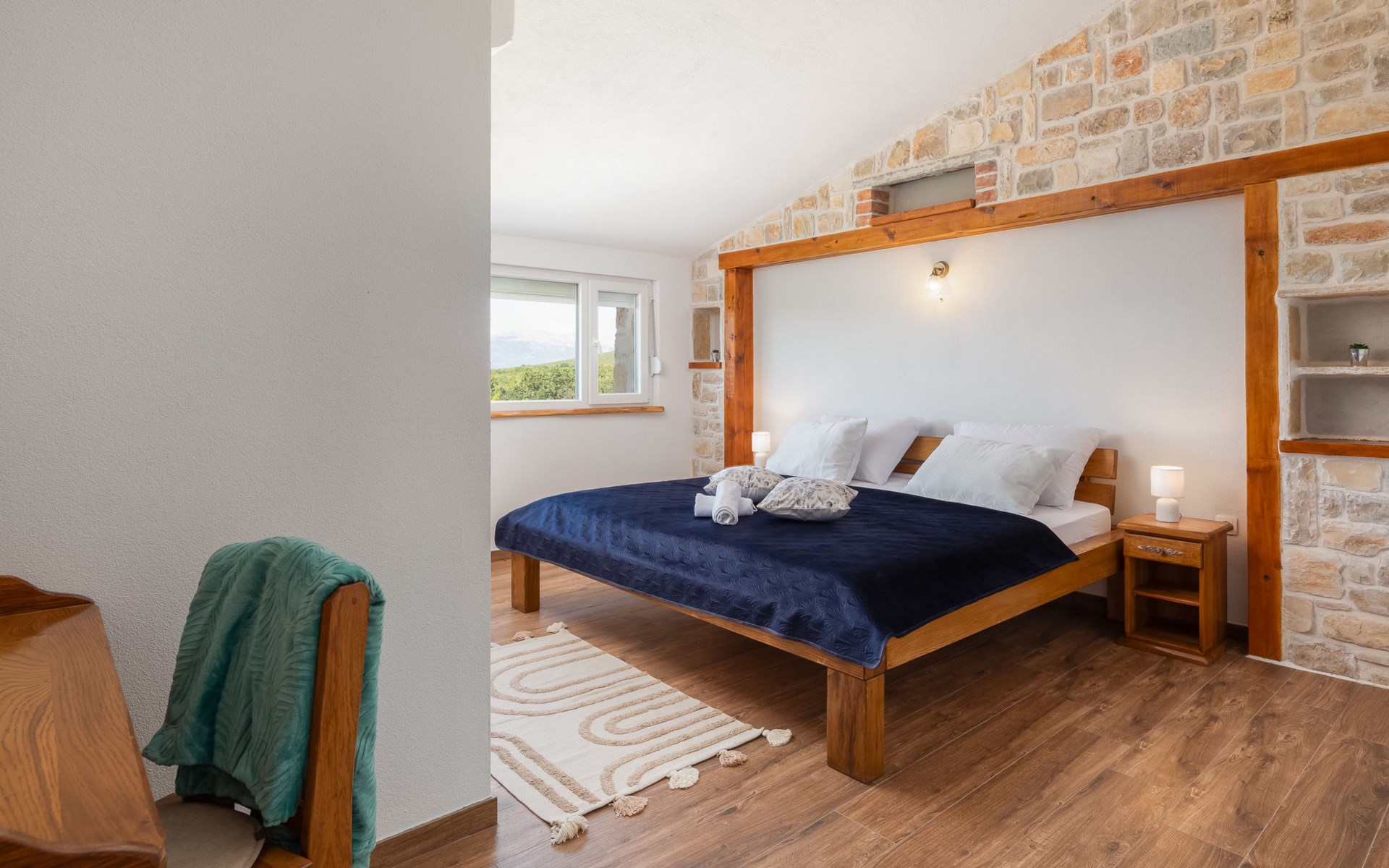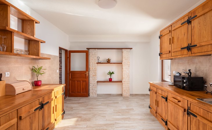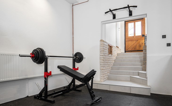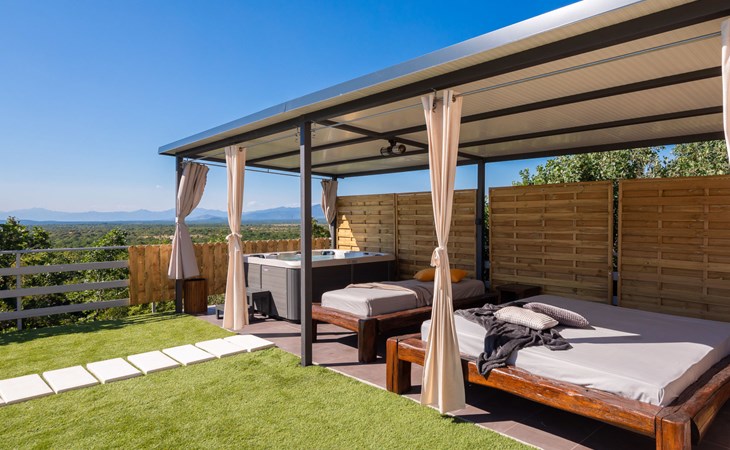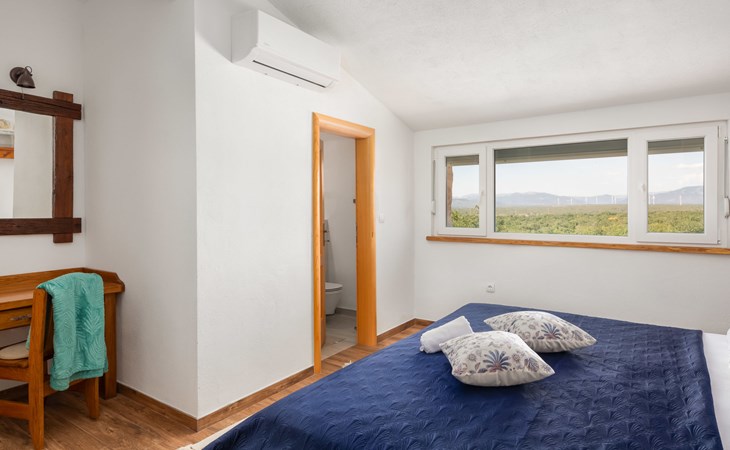 Lukar 3 km from Oklaj: Single-family house "Perva". In a quiet, sunny position, 48 km from the sea, in the countryside. Private: property 3'500 m2 (fenced), swimming pool angular, heated (10 x 5 m, depth 150 cm, seasonal availability: 15.May. - 30.Sep.) with internal staircase. Outdoor shower, hot tub, table tennis, arbour (30 m2), terrace (30 m2), garden furniture, barbecue, children's playground (swing). In the house: internet access, fitness room, trampoline, washing machine, tumble dryer. Parking (for 6 cars) at the house on the premises. Shop 3 km, restaurant 17 km, café 3 km, bus stop 3.5 km, pebble beach 48 km. Cycle lane 2 km. Nearby attractions: NP Krka 28 km.