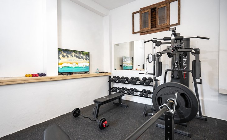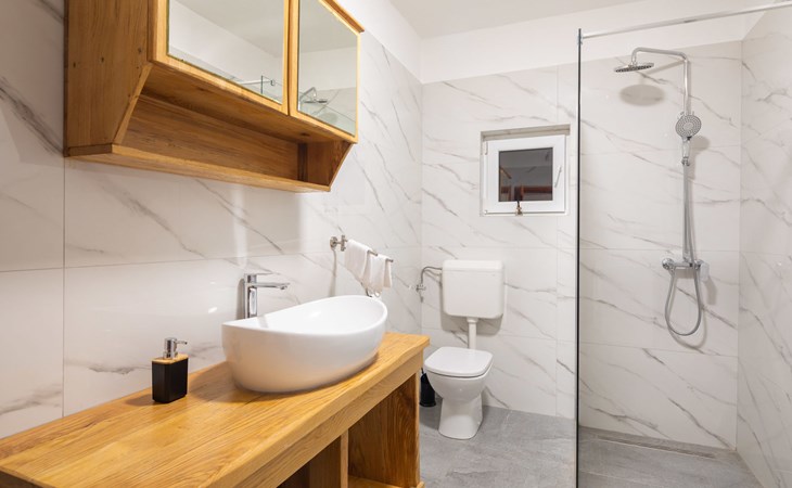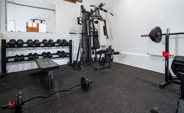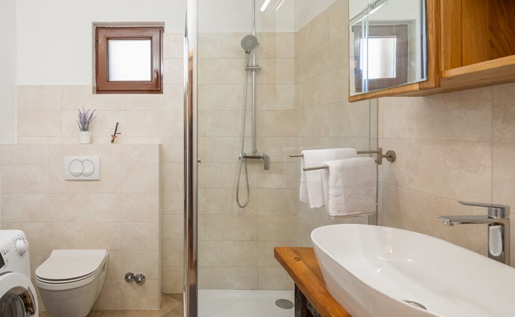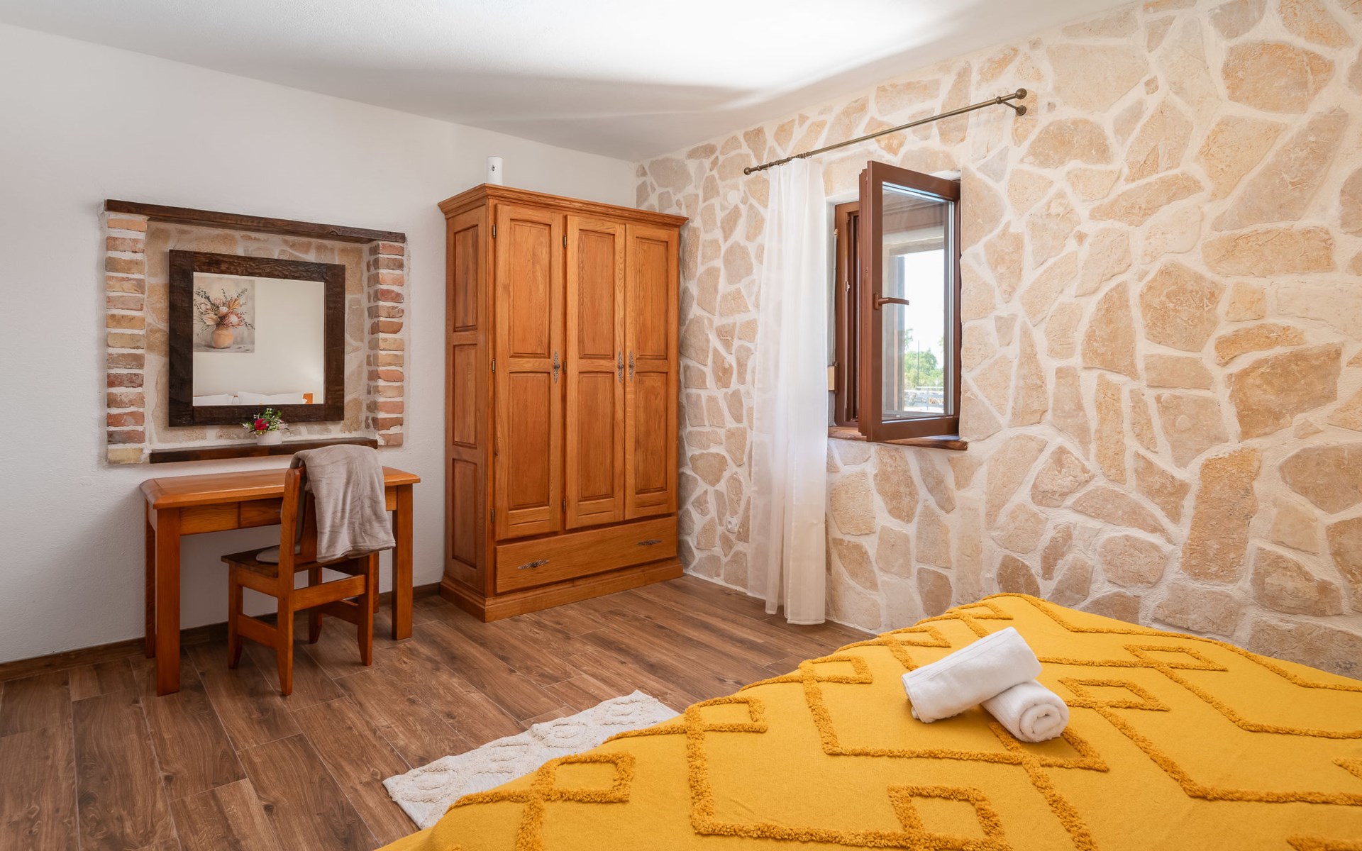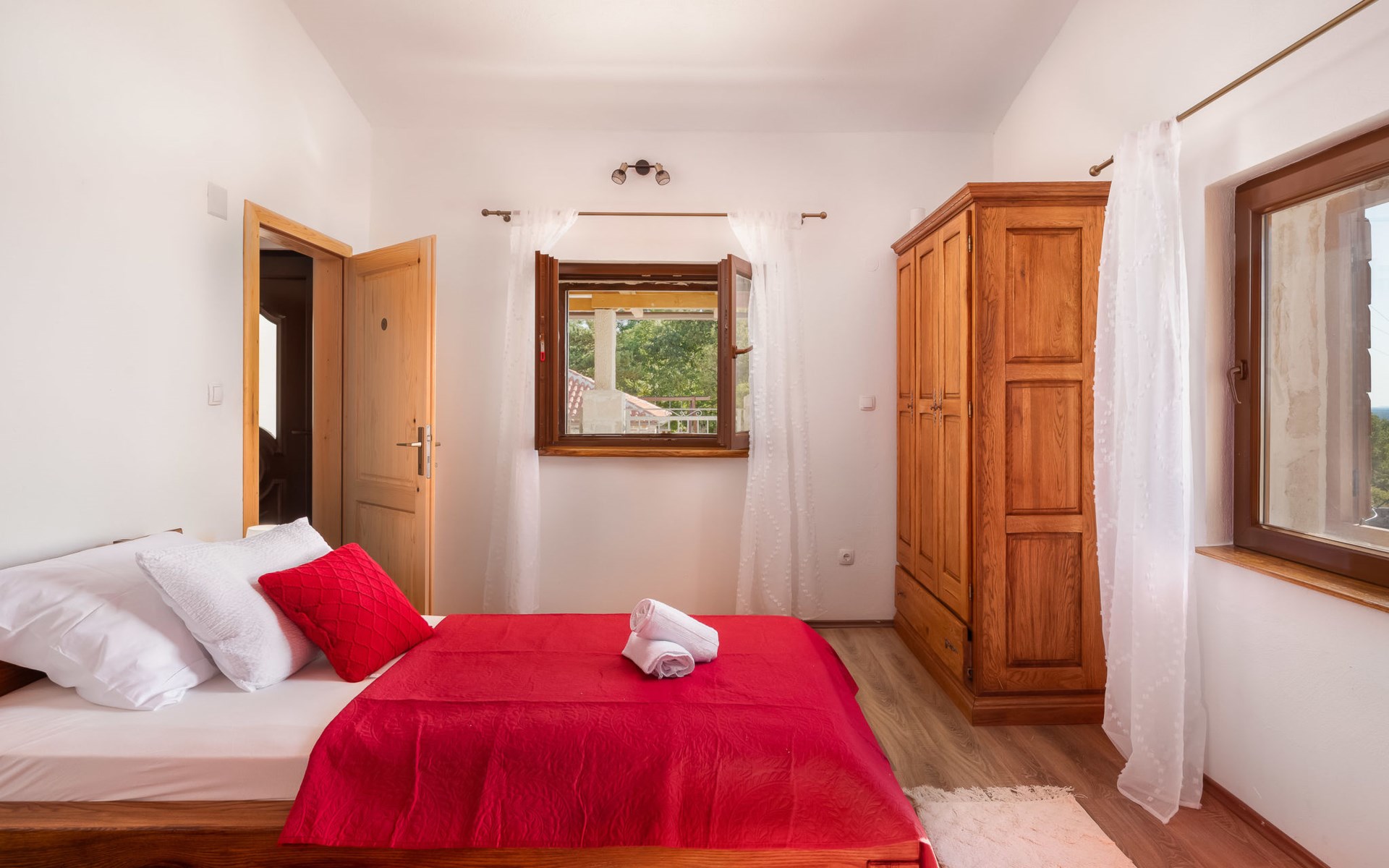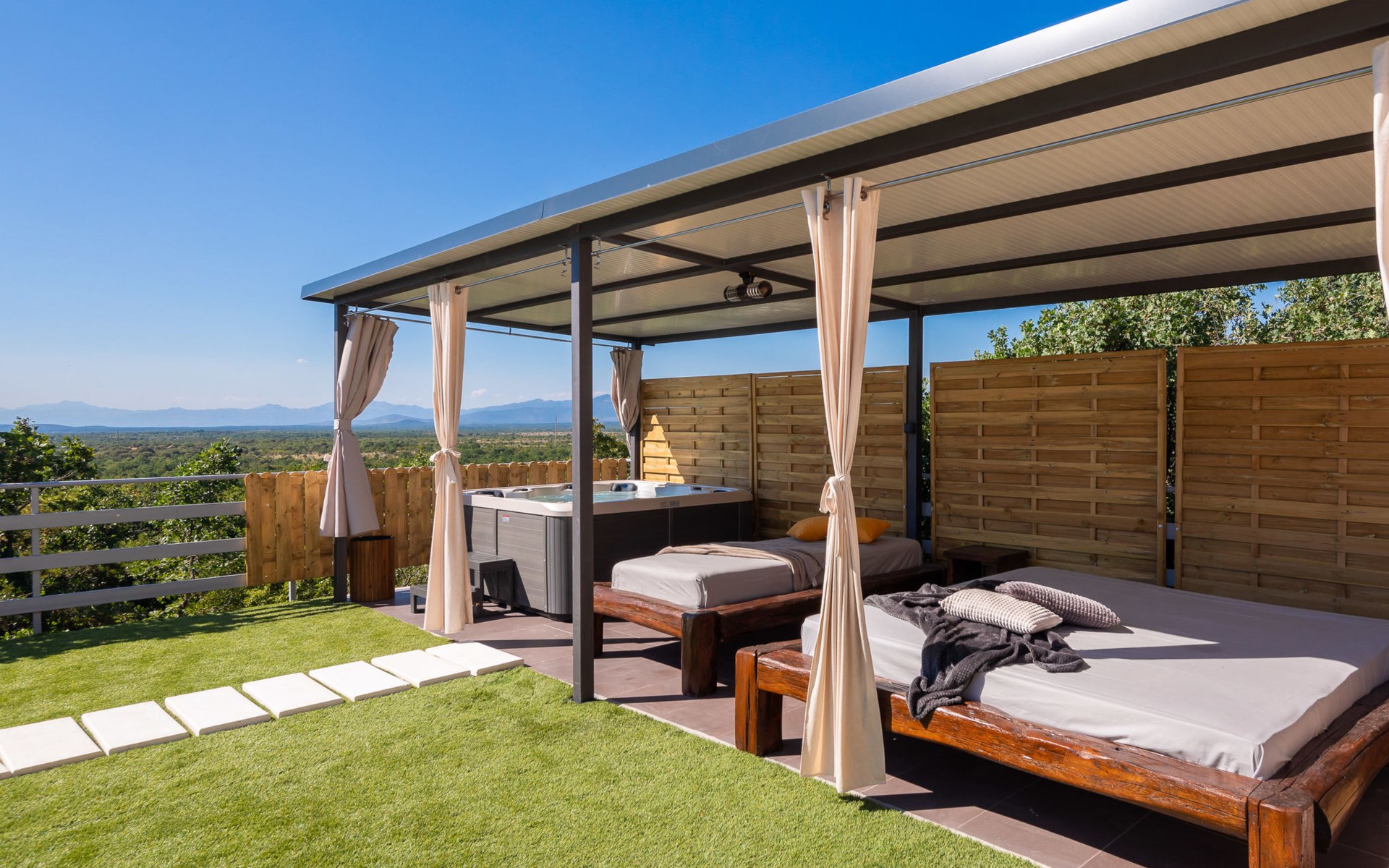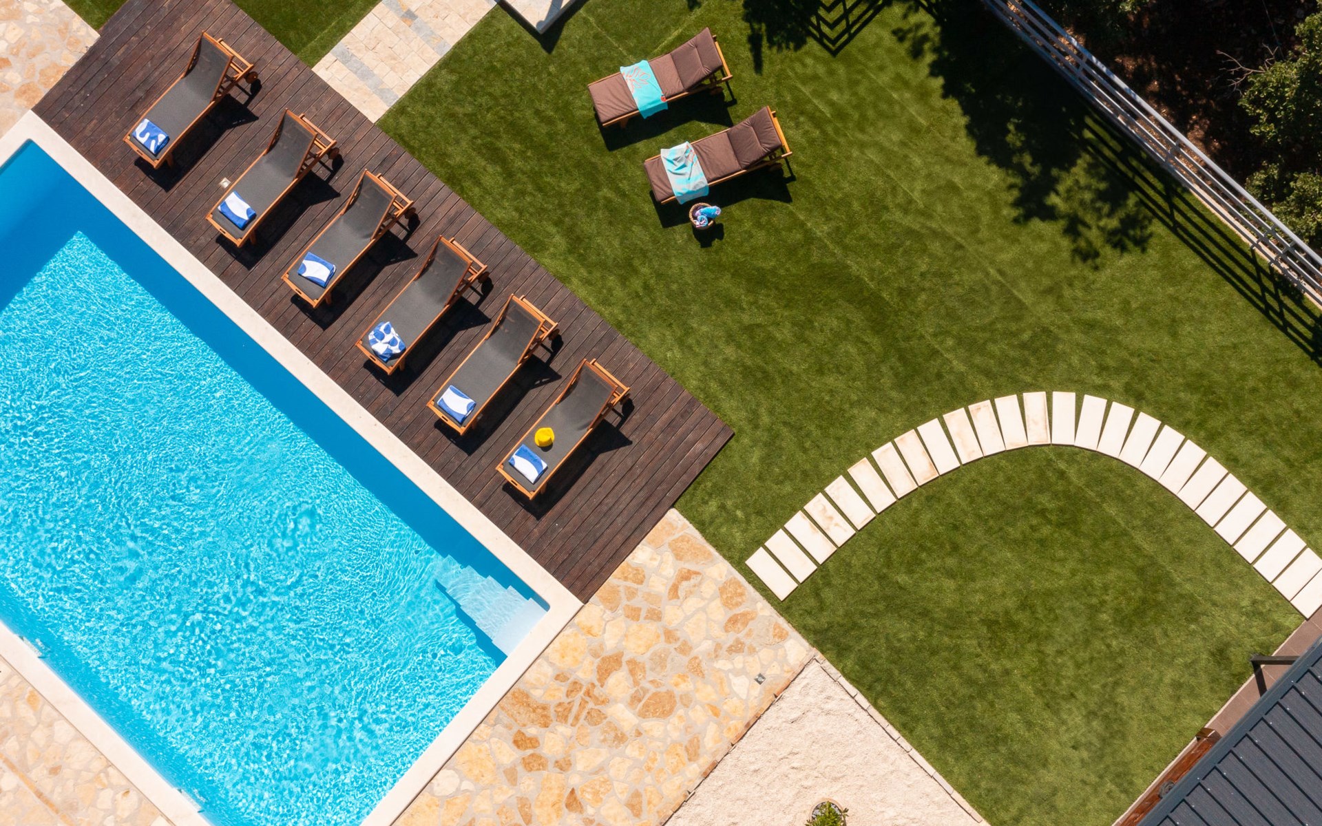 Lukar 3 km from Oklaj: Single-family house "Perva". In a quiet, sunny position, 48 km from the sea, in the countryside. Private: property 3'500 m2 (fenced), swimming pool angular, heated (10 x 5 m, depth 150 cm, seasonal availability: 15.May. - 30.Sep.) with internal staircase. Outdoor shower, hot tub, table tennis, arbour (30 m2), terrace (30 m2), garden furniture, barbecue, children's playground (swing). In the house: internet access, fitness room, trampoline, washing machine, tumble dryer. Parking (for 6 cars) at the house on the premises. Shop 3 km, restaurant 17 km, café 3 km, bus stop 3.5 km, pebble beach 48 km. Cycle lane 2 km. Nearby attractions: NP Krka 28 km.