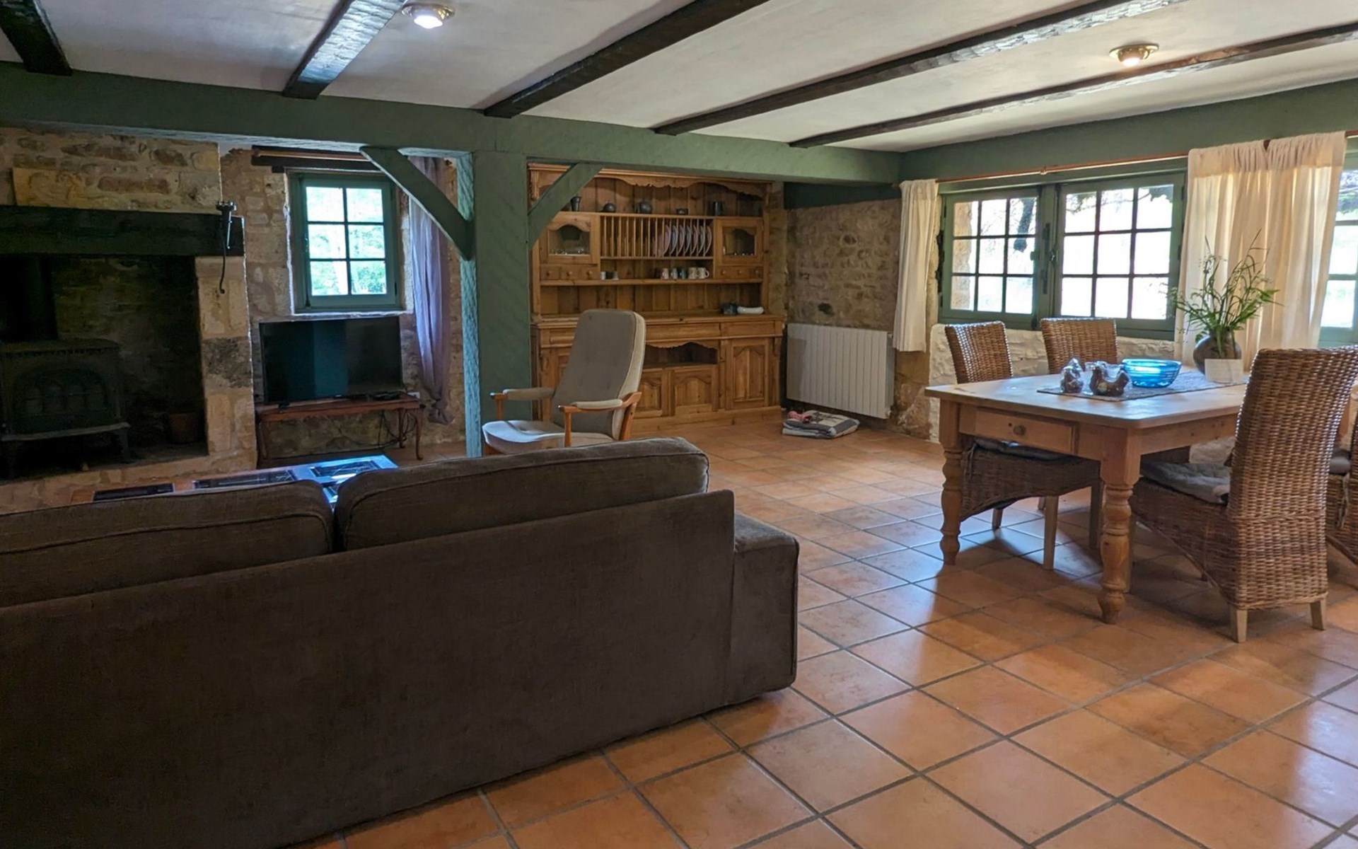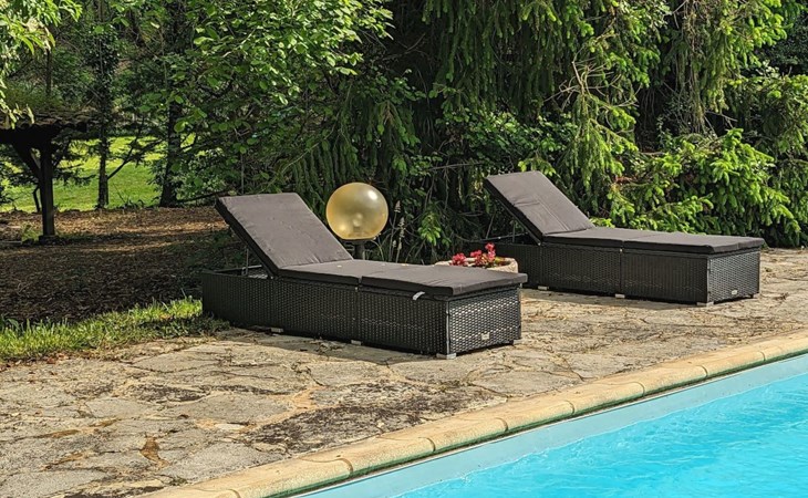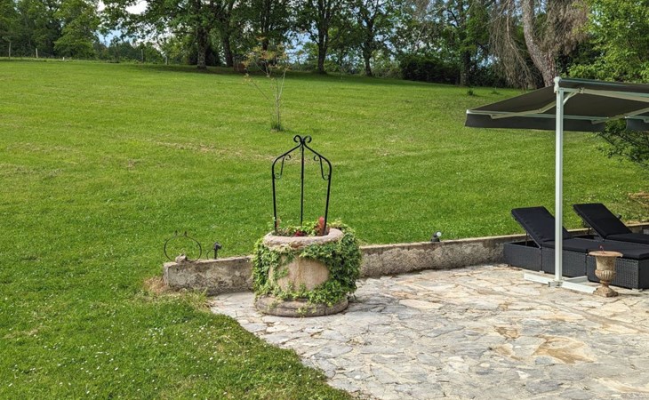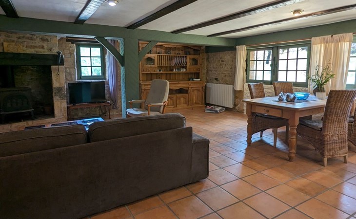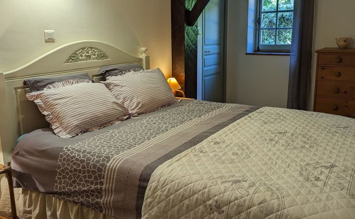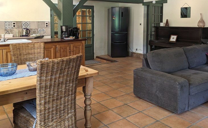 The Cottage Bungalow, built as an extension of the main house (the oldest parts of which date back to 1653), offers private access and a terrace with a view of the pond. This rental, designed later, respects the old style with its exposed stones and was restyled in 2023.
