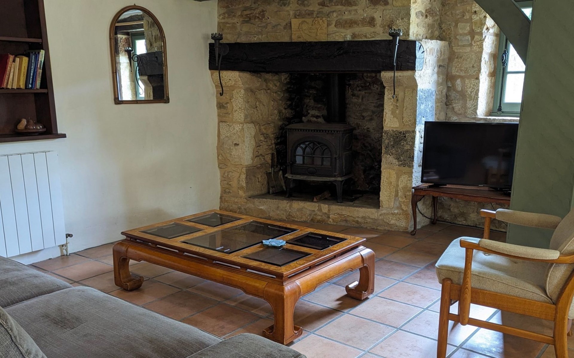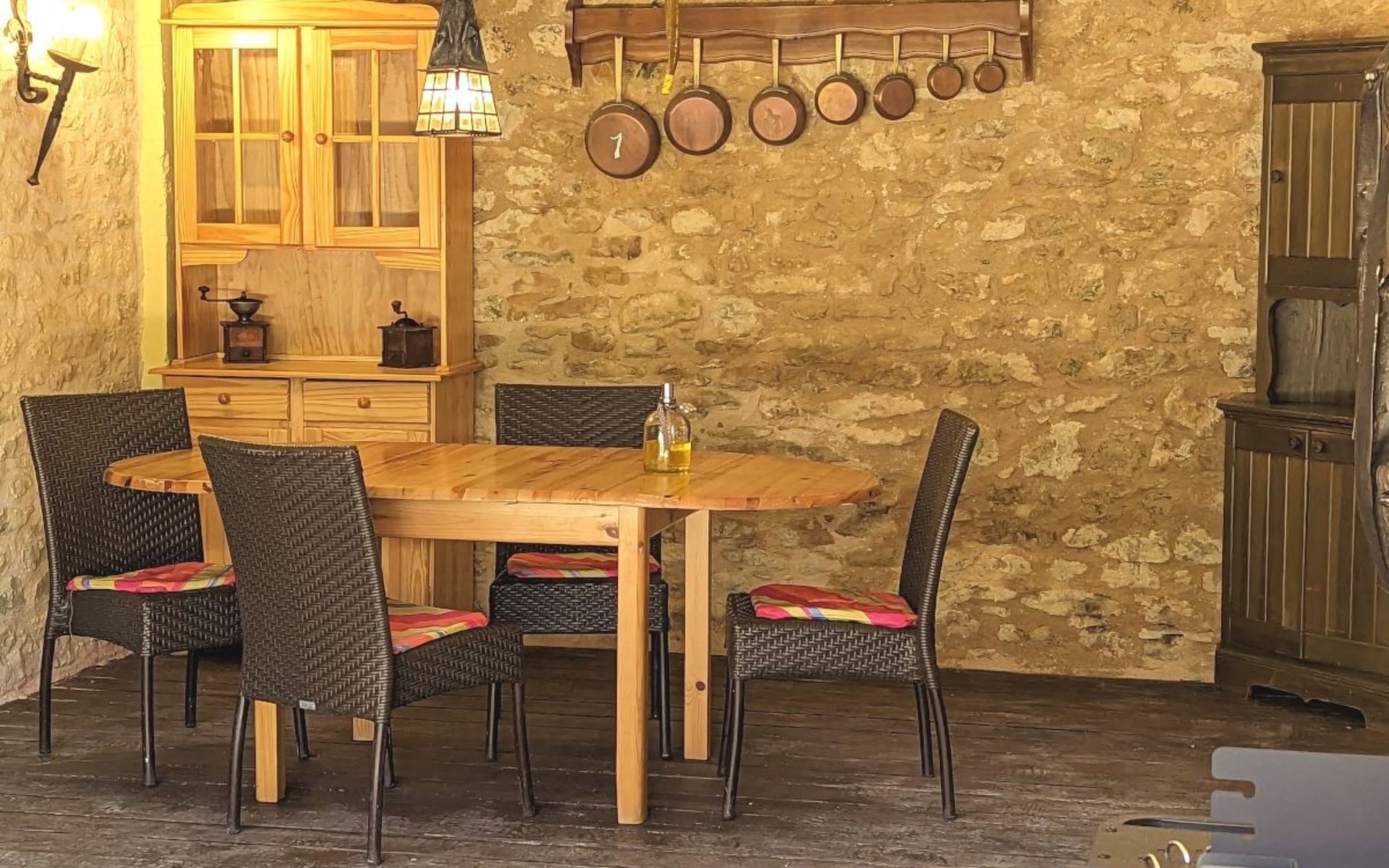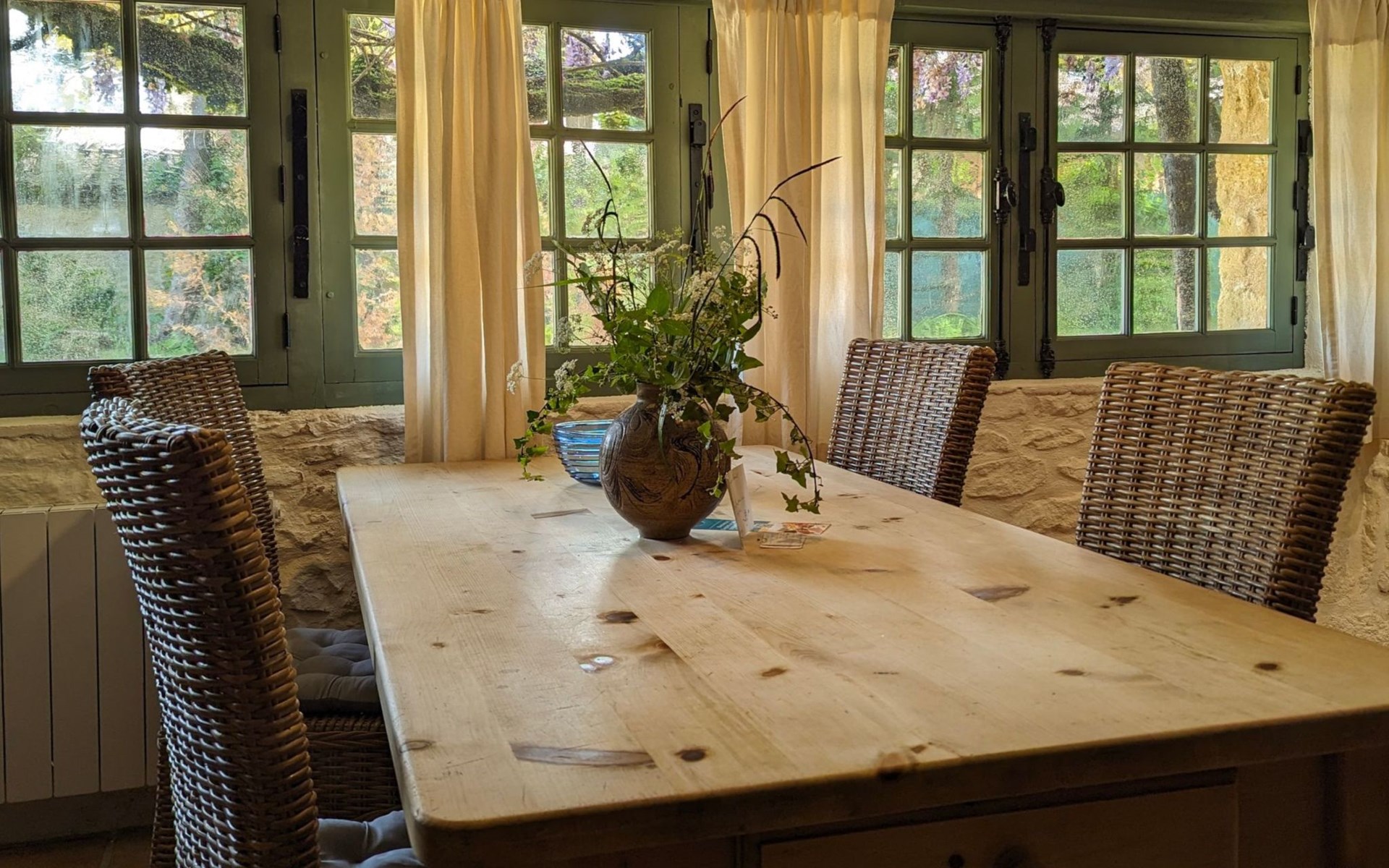 The Cottage Bungalow, built as an extension of the main house (the oldest parts of which date back to 1653), offers private access and a terrace with a view of the pond. This rental, designed later, respects the old style with its exposed stones and was restyled in 2023.