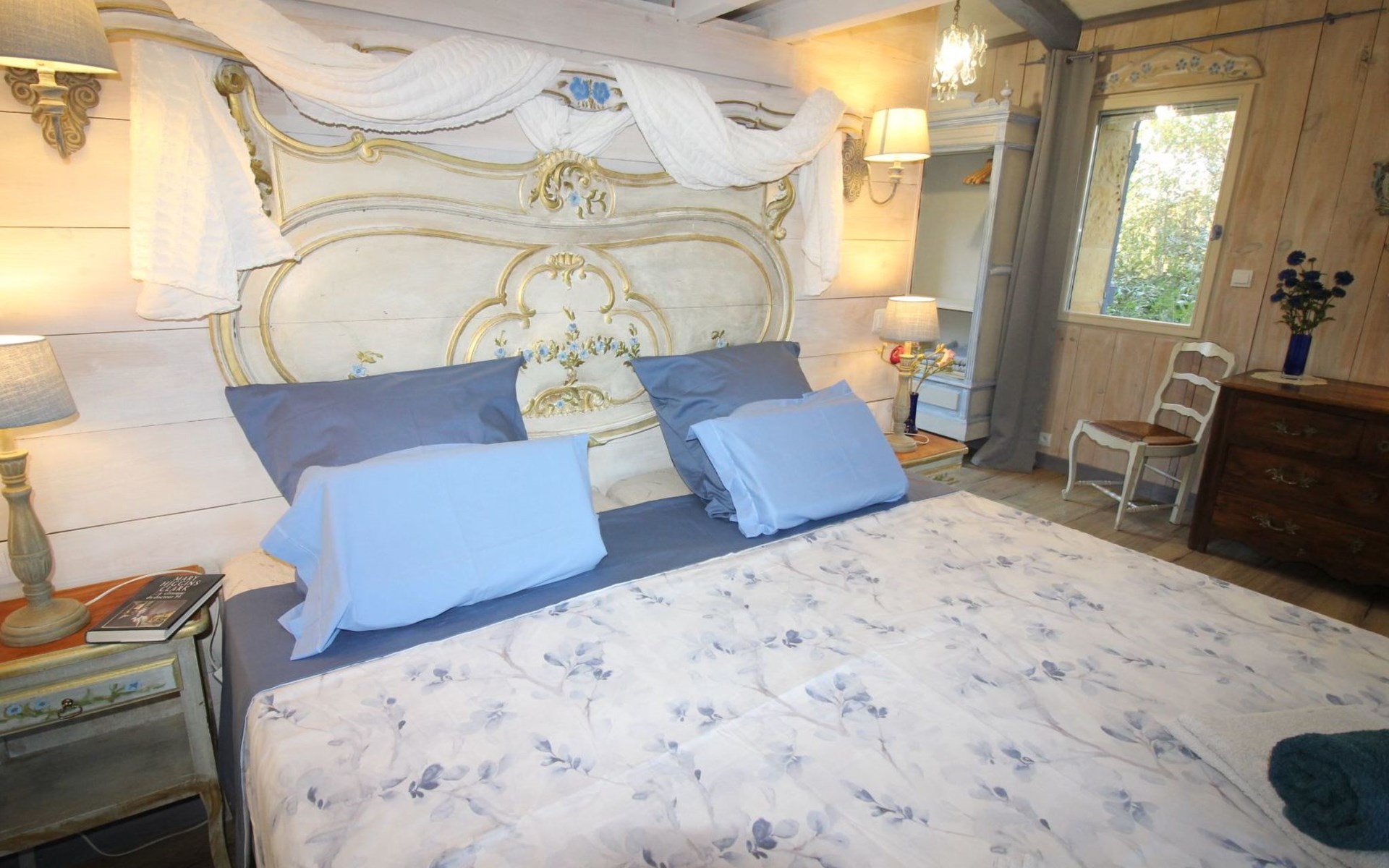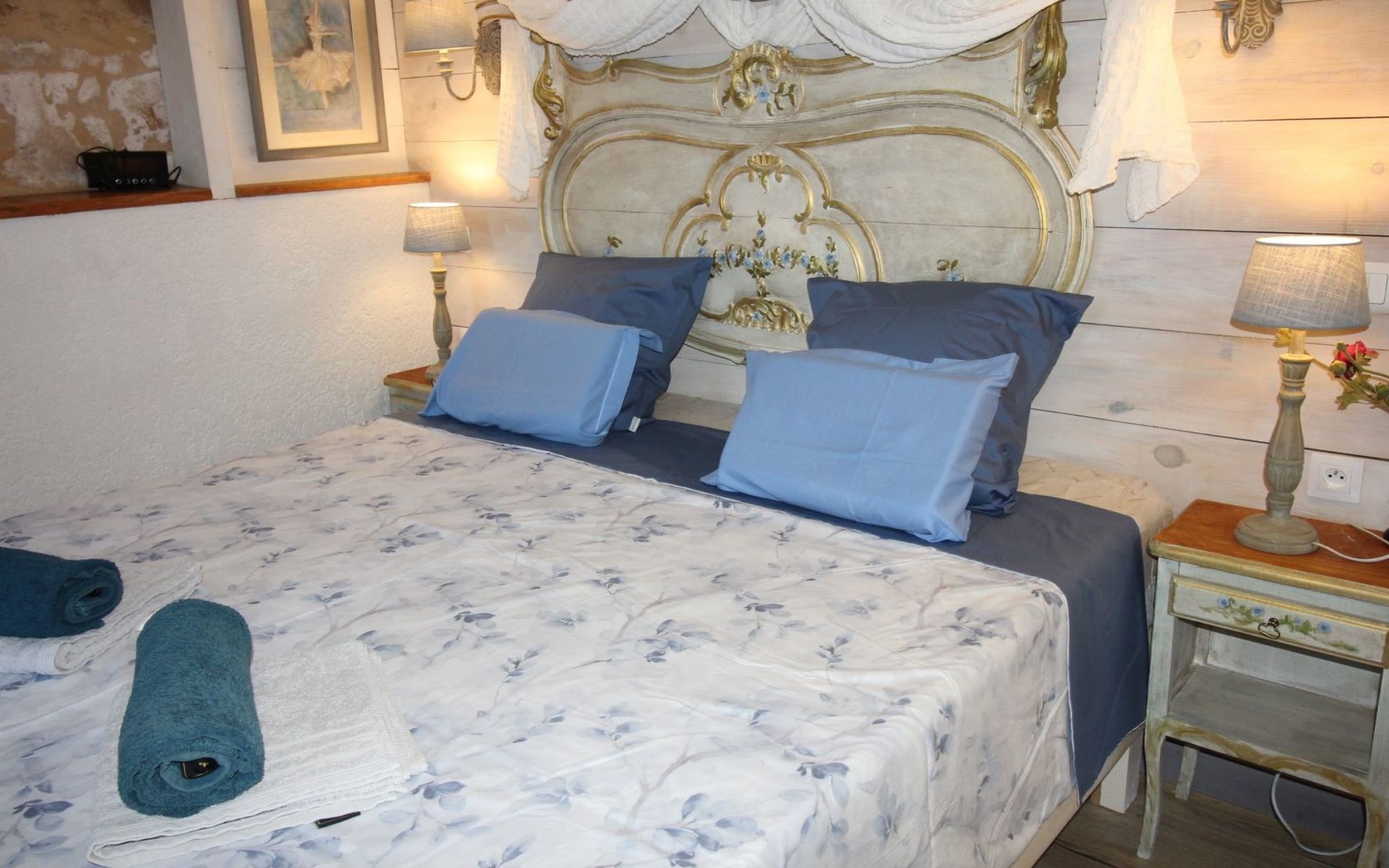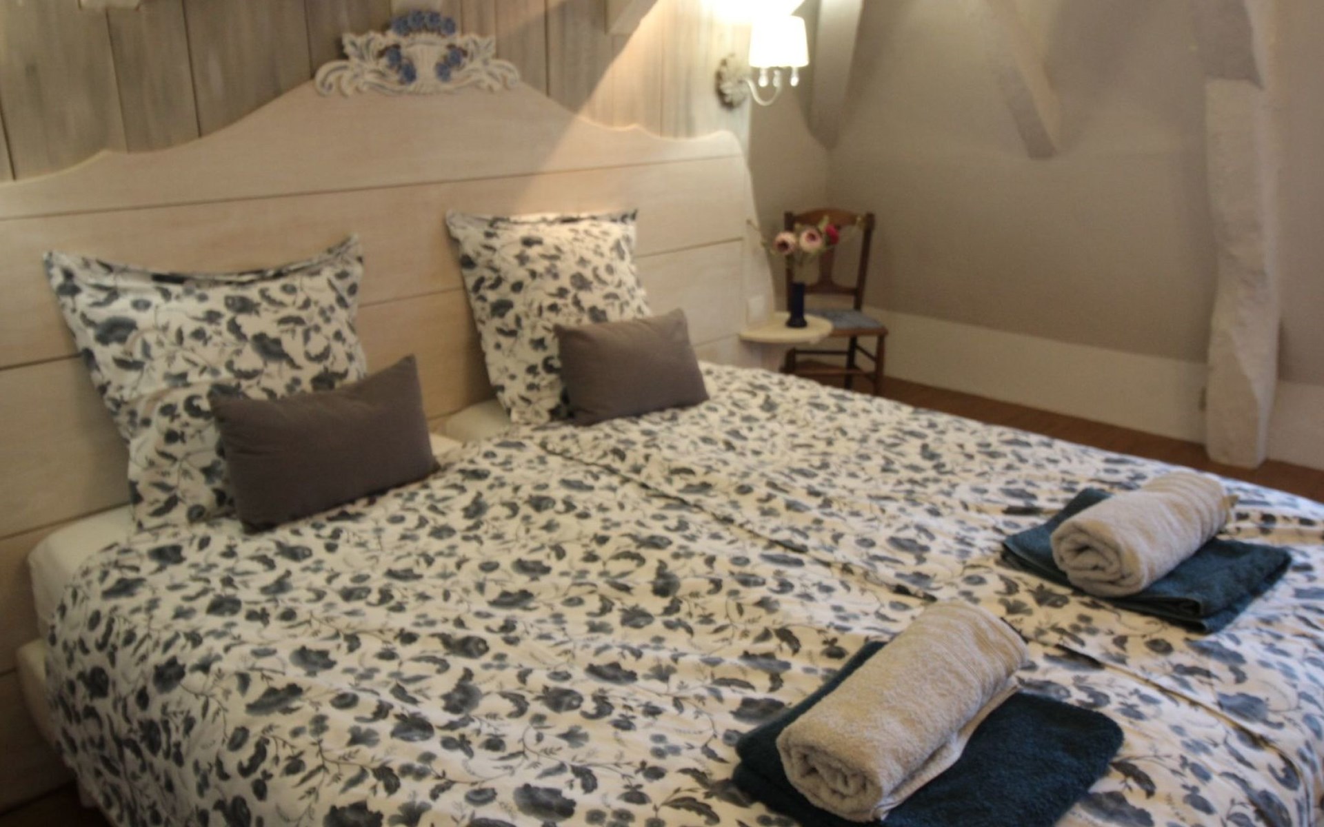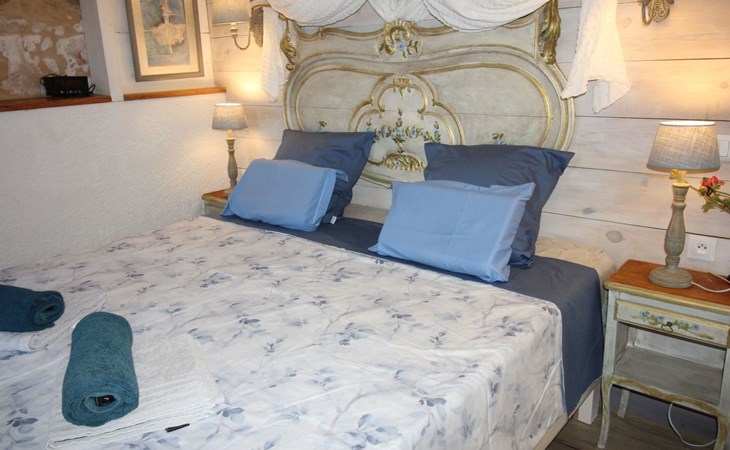 a large bedroom equipped with quality bedding (king size bed 180X200cms with independent sleeping position, new firm mattresses) with its own bathroom (shower, WC),