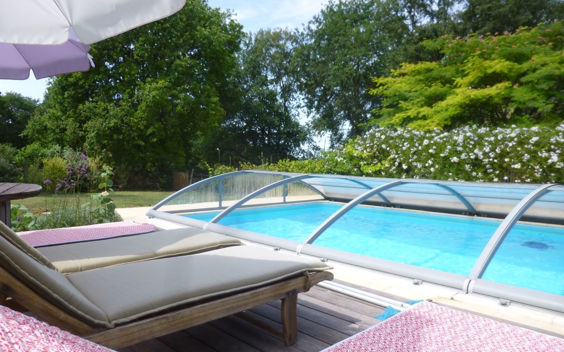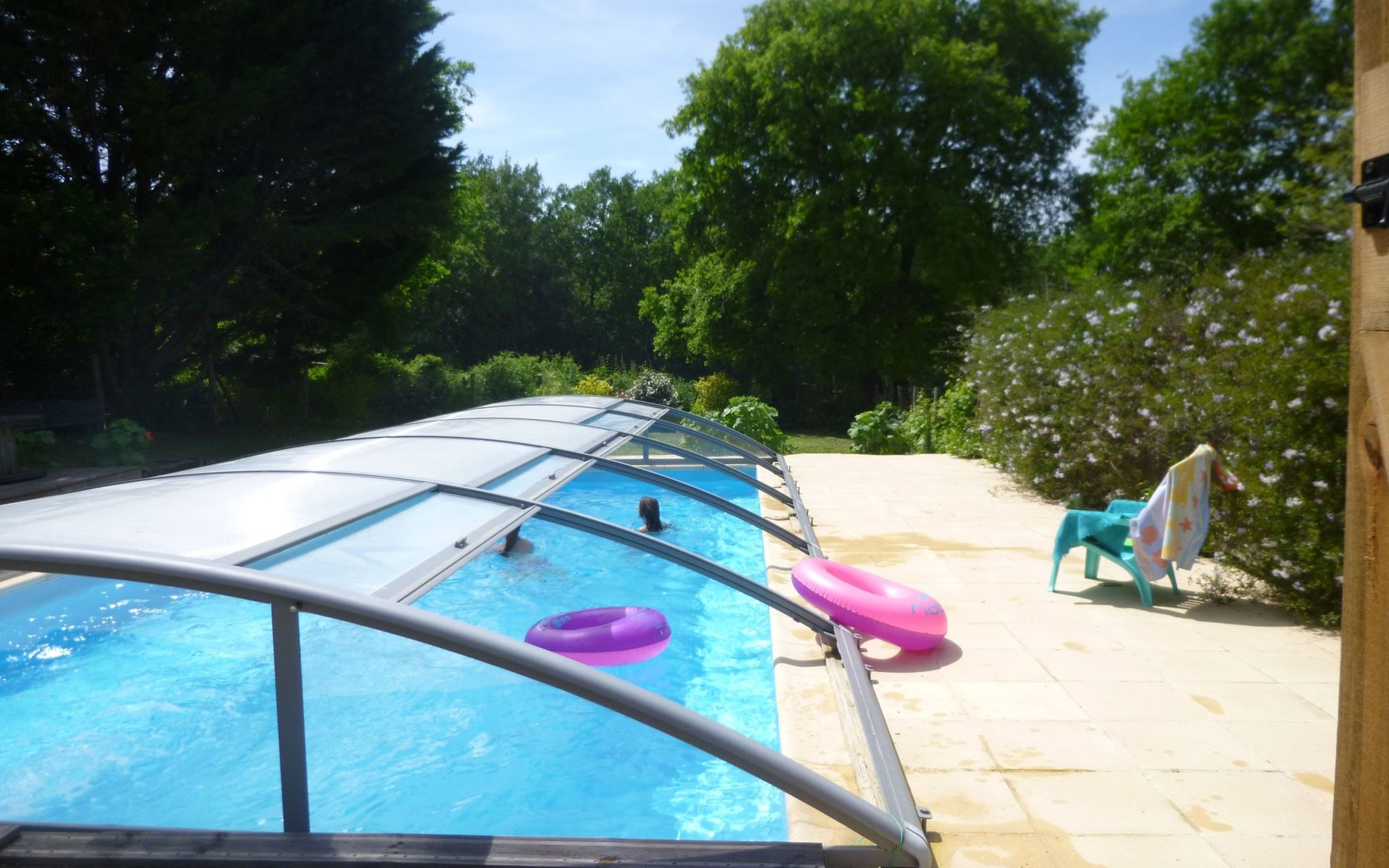 There's plenty of space outside, too, with a spacious, enclosed garden where the only disturbing sound is the birdsong. A 5x11-metre swimming pool, secured by a removable cover (open only in July and August and not heated), is entirely reserved for your exclusive use, promising cool, relaxing moments in summer. The garden also has a table tennis shelter, table football, a gas griddle and a wood-fired barbecue to make your days and evenings more enjoyable. Parking on the property with Tesla type 2 recharging point.
