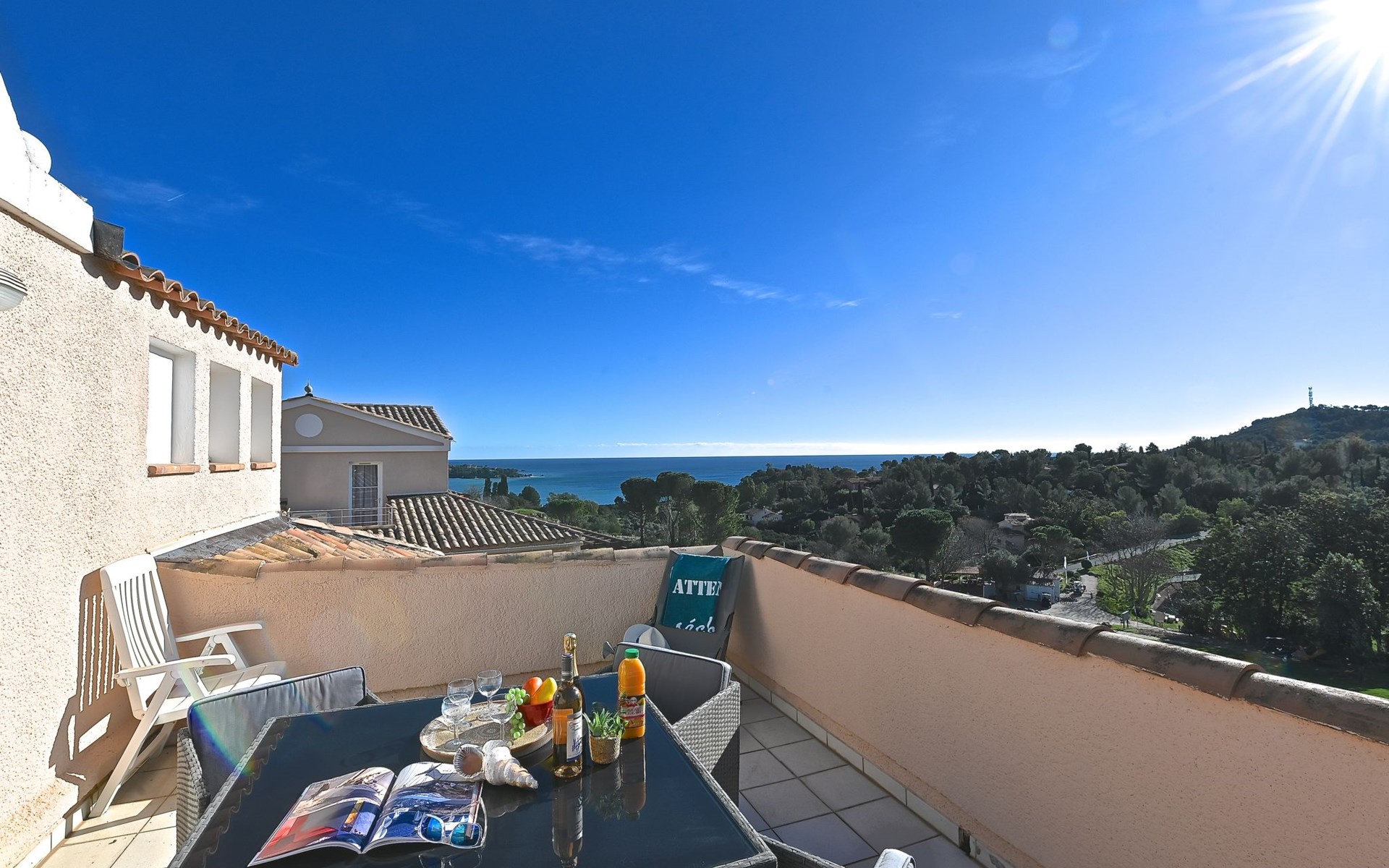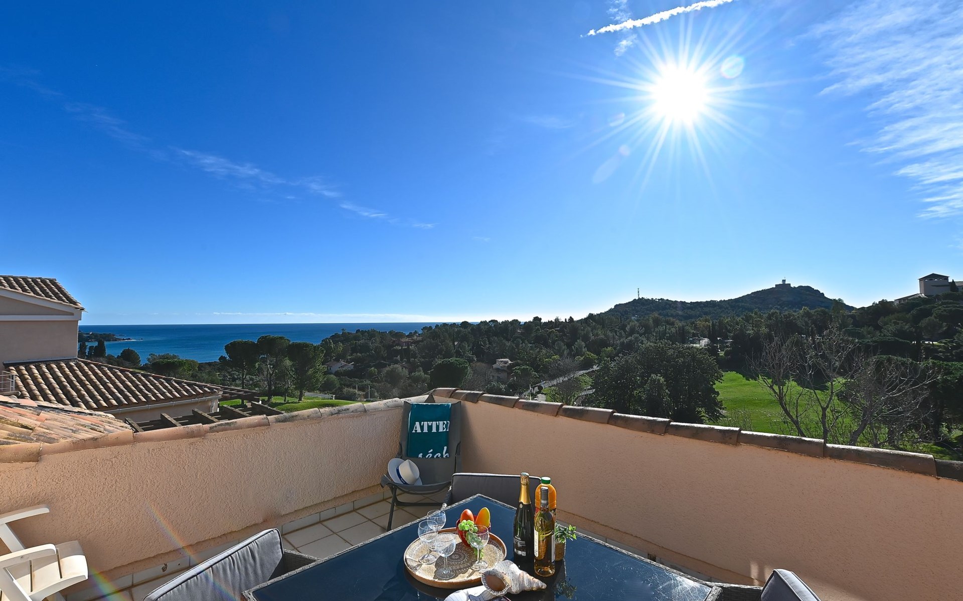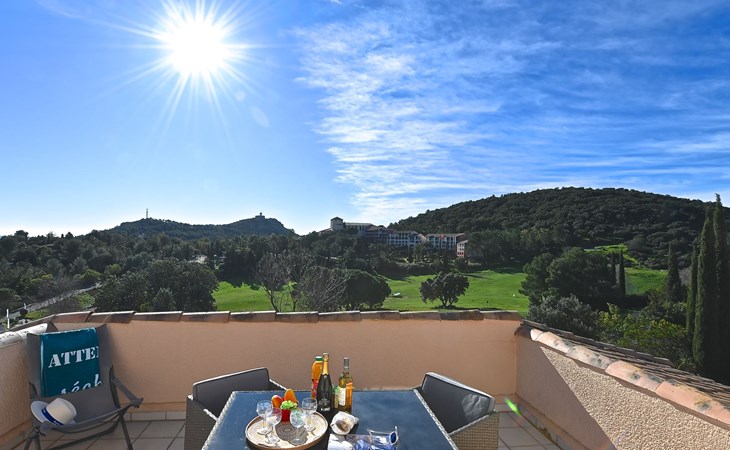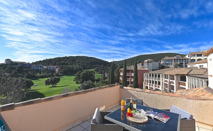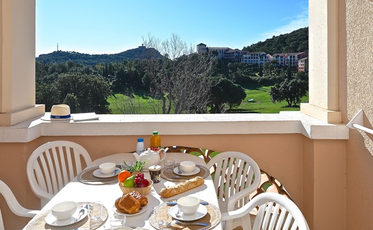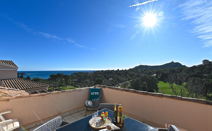 Large resort "Village Cap Estérel - L'Esquinade", built in 1990. On the outskirts, 2 km from the centre of Agay, on a slope, in the residential district, 900 m from the sea, 900 m from the beach, road to cross, on the golf course, in a pedestrian area. For shared use: park 210 ha, 5 swimming pools (seasonal availability: 06.Apr. - 03.Nov.). Children's pool, boccia, children's playground (slide, swing). In the complex: spa area (extra), shopping facilities, laundry (extra). E-charging station. Shop, grocery 500 m, supermarket 6 km, restaurant, bakery, café, bicycle rental 500 m, bus stop "Ligne 21" 300 m, railway station "Saint-Raphaël-Valescure - Agay" 9 km, sandy beach "Le Pourrousset" 800 m. Marina 1 km, golf course (9 hole) 300 m, tennis 500 m. Nearby attractions: Anthéor 8 km, Saint-Raphaël 9 km, Fréjus 13 km, Cannes 33 km, Saint-Tropez 50 km, Nice 76 km. Well-known lakes can easily be reached: Lac Saint-Cassien. Hiking paths: Massif de l'Estérel. Please note: car-free holiday complex, no lift. Entertainment in the season. Suitable for families, childminding in the season (extra). Guarded residence. The keys‘ handover takes place by the agency Interhome in Cap Estérel. The apartment is located in a zone with limited traffic. Additional accommodations can be booked. Access to the apartments is via steps, even on the ground floor.