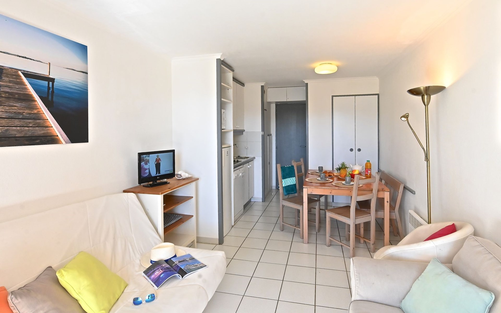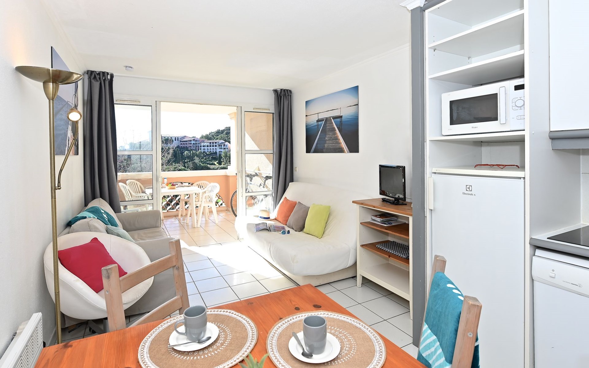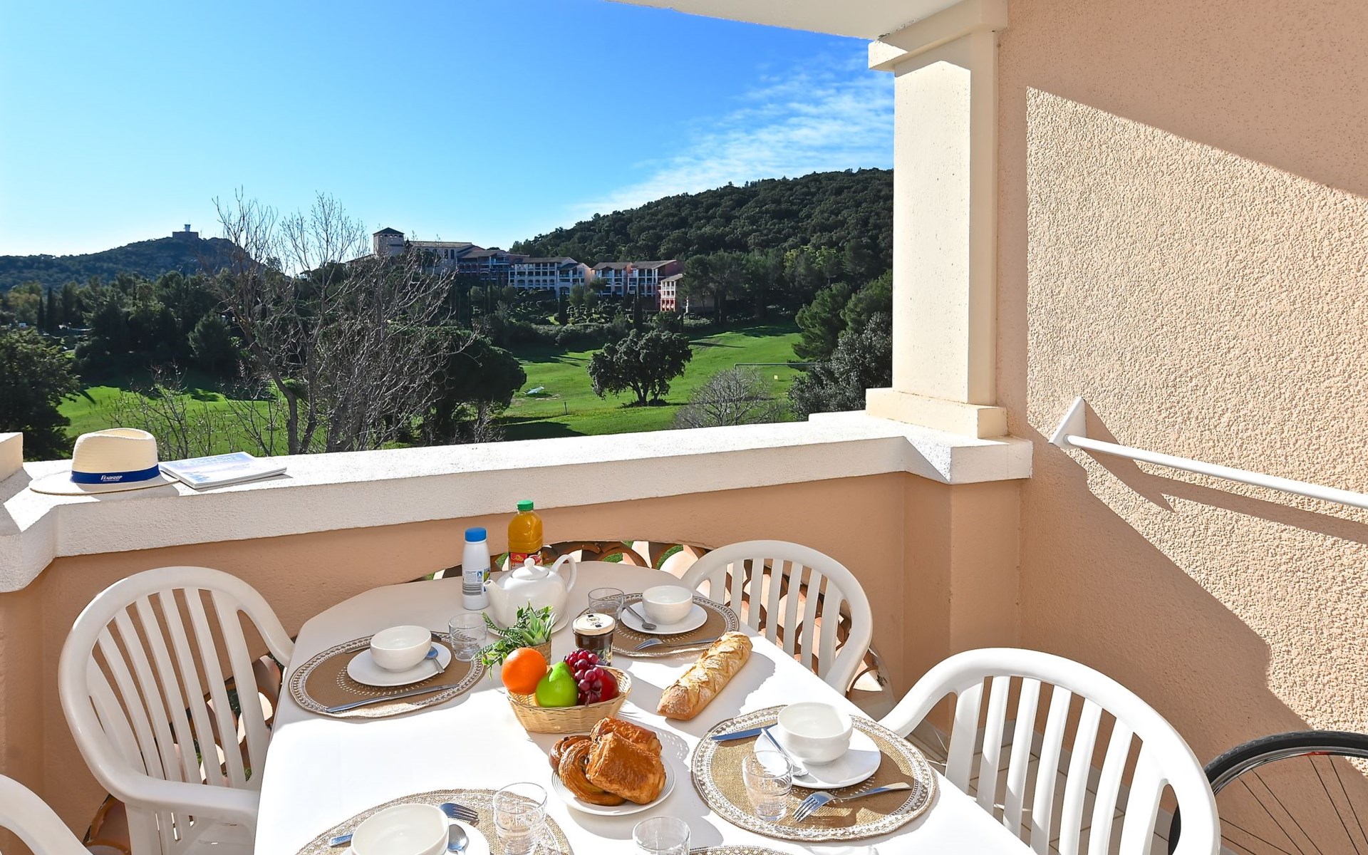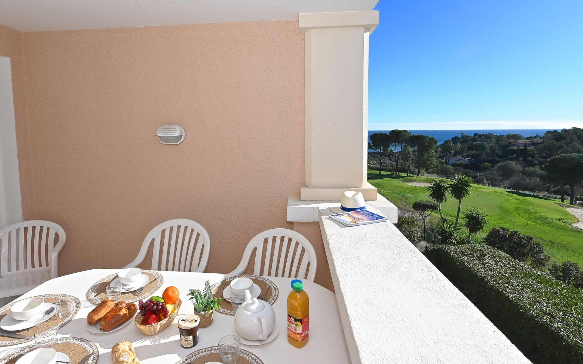 Large resort "Village Cap Estérel - L'Esquinade", built in 1990. On the outskirts, 2 km from the centre of Agay, on a slope, in the residential district, 900 m from the sea, 900 m from the beach, road to cross, on the golf course, in a pedestrian area. For shared use: park 210 ha, 5 swimming pools (seasonal availability: 06.Apr. - 03.Nov.). Children's pool, boccia, children's playground (slide, swing). In the complex: spa area (extra), shopping facilities, laundry (extra). E-charging station. Shop, grocery 500 m, supermarket 6 km, restaurant, bakery, café, bicycle rental 500 m, bus stop "Ligne 21" 300 m, railway station "Saint-Raphaël-Valescure - Agay" 9 km, sandy beach "Le Pourrousset" 800 m. Marina 1 km, golf course (9 hole) 300 m, tennis 500 m. Nearby attractions: Anthéor 8 km, Saint-Raphaël 9 km, Fréjus 13 km, Cannes 33 km, Saint-Tropez 50 km, Nice 76 km. Well-known lakes can easily be reached: Lac Saint-Cassien. Hiking paths: Massif de l'Estérel. Please note: car-free holiday complex, no lift. Entertainment in the season. Suitable for families, childminding in the season (extra). Guarded residence. The keys‘ handover takes place by the agency Interhome in Cap Estérel. The apartment is located in a zone with limited traffic. Additional accommodations can be booked. Access to the apartments is via steps, even on the ground floor.