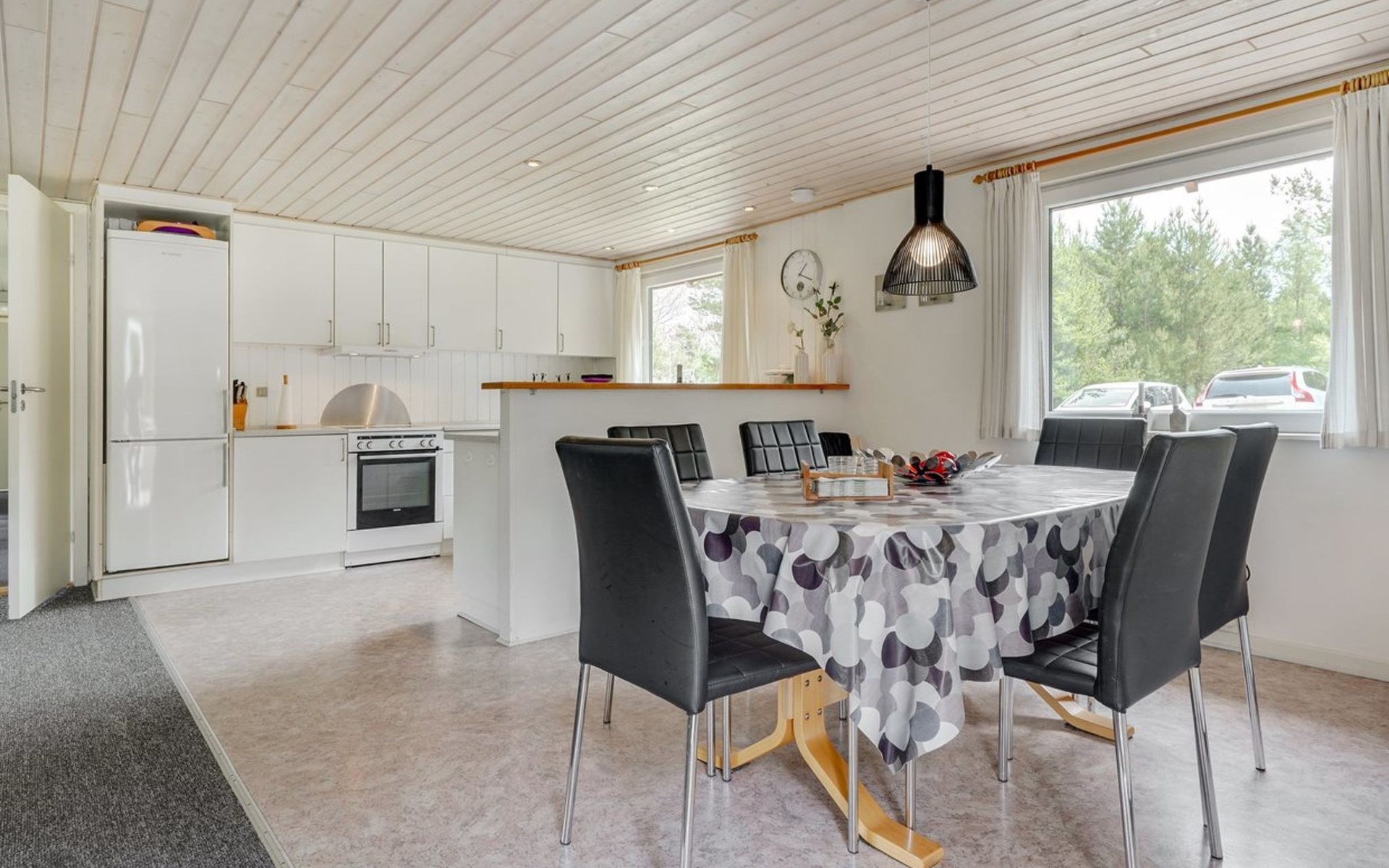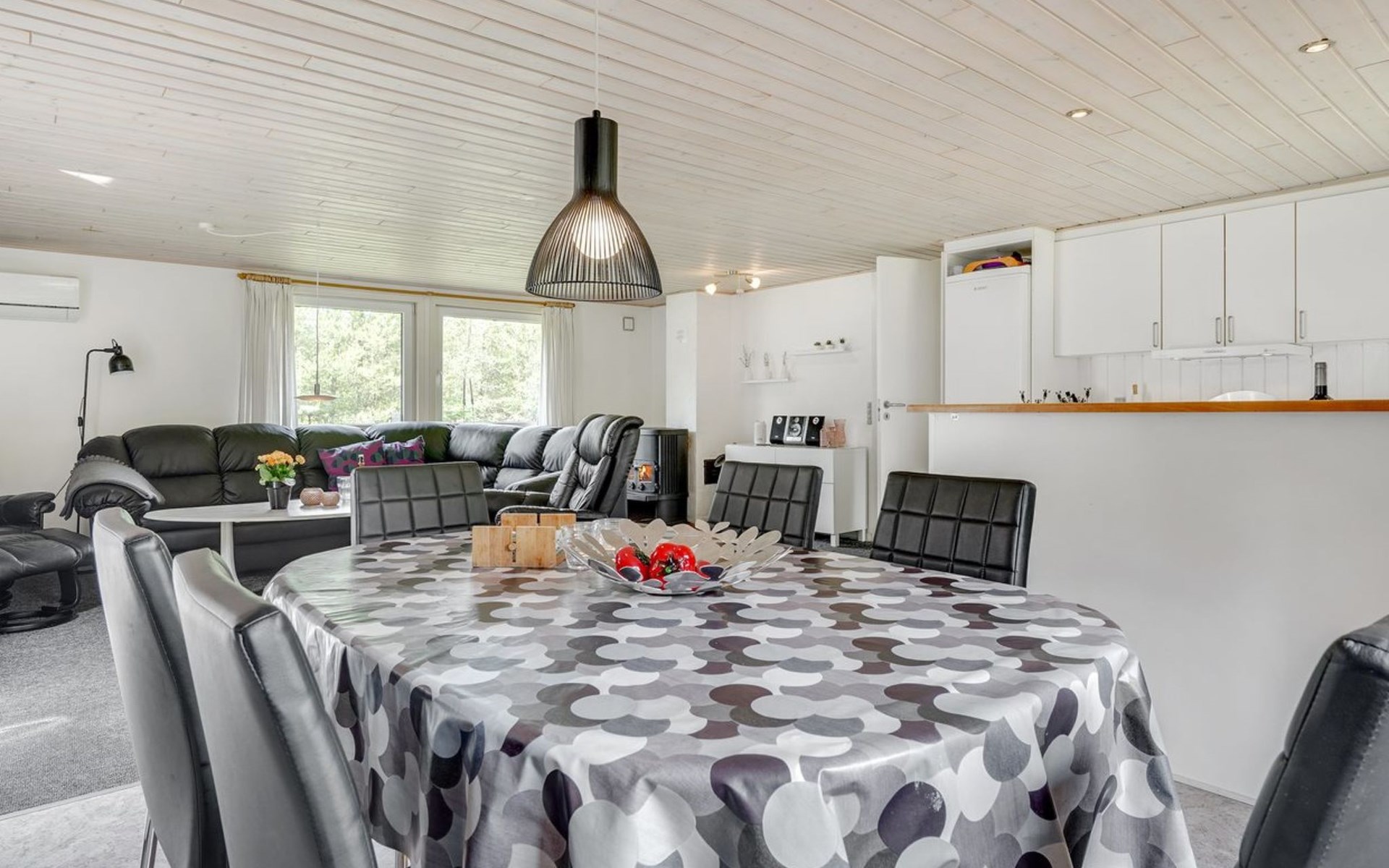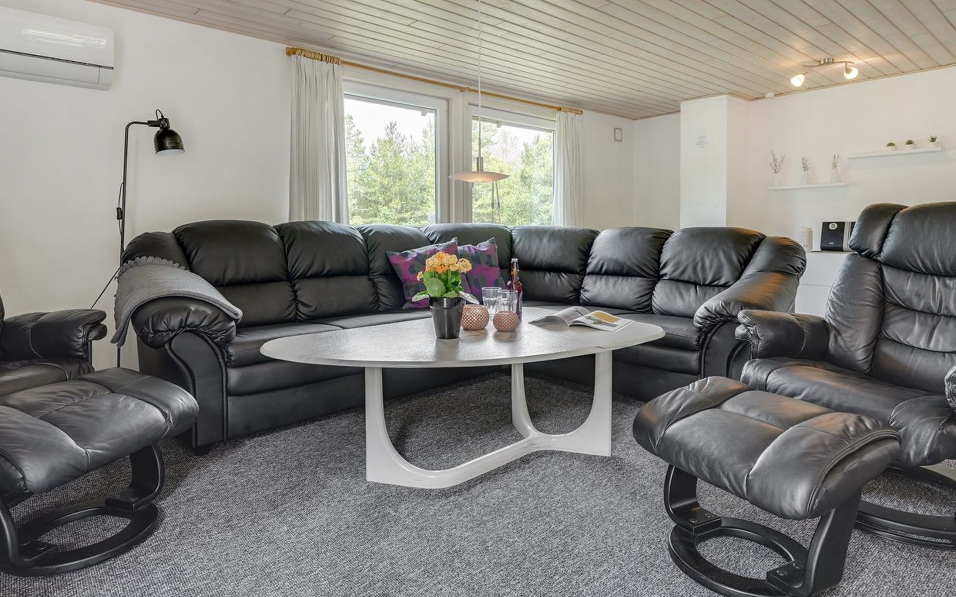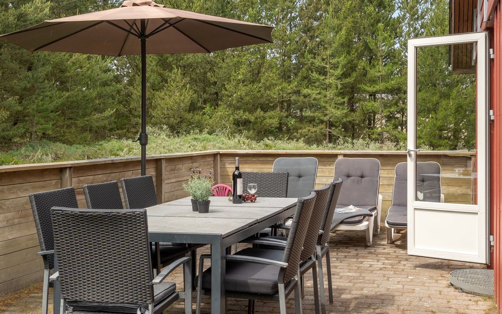 Single-family house, built in 1975. 1.4 km from the sea. Private: natural state property 2'533 m2. Terrace (36 m2), children's playground (swing). In the house: sauna, washing machine, tumble dryer. E-charging station. Grocery 1.6 km. Golf course 1 km. The owner does not accept any youth groups.