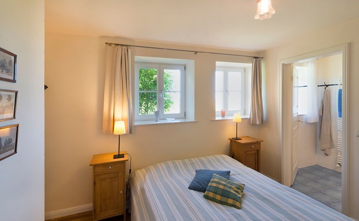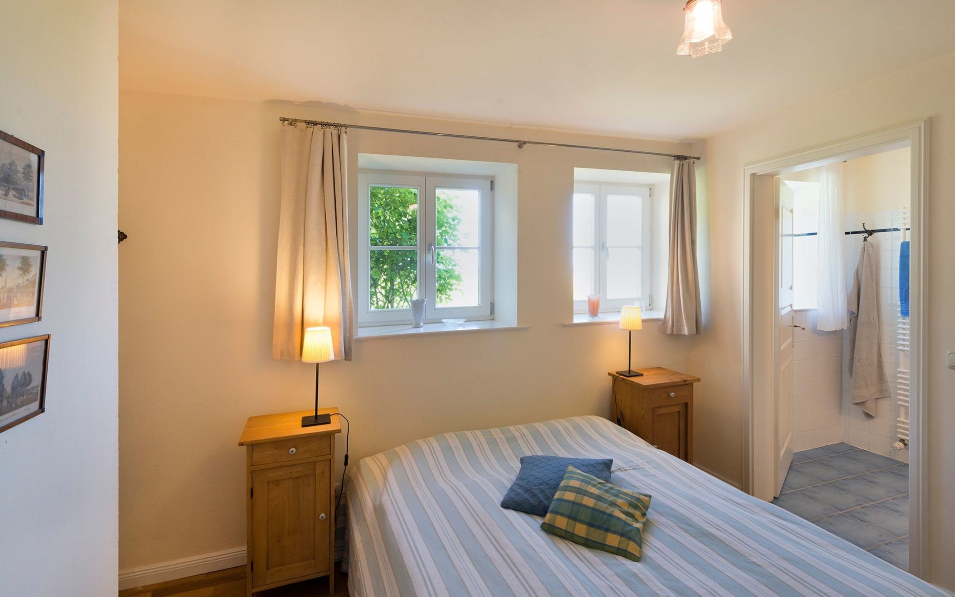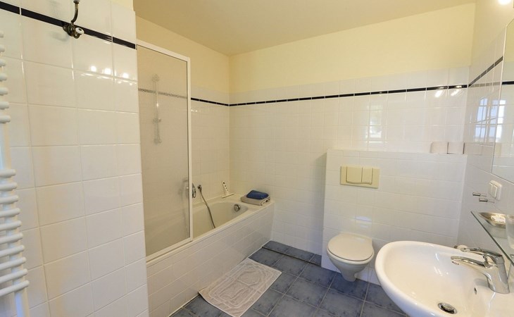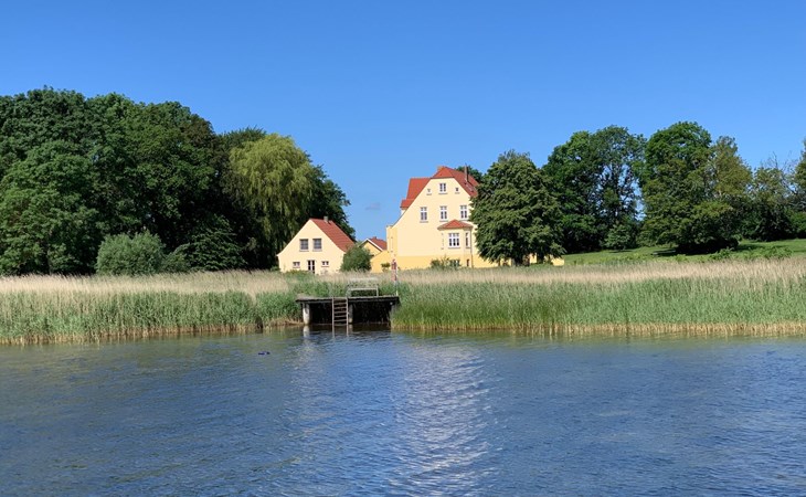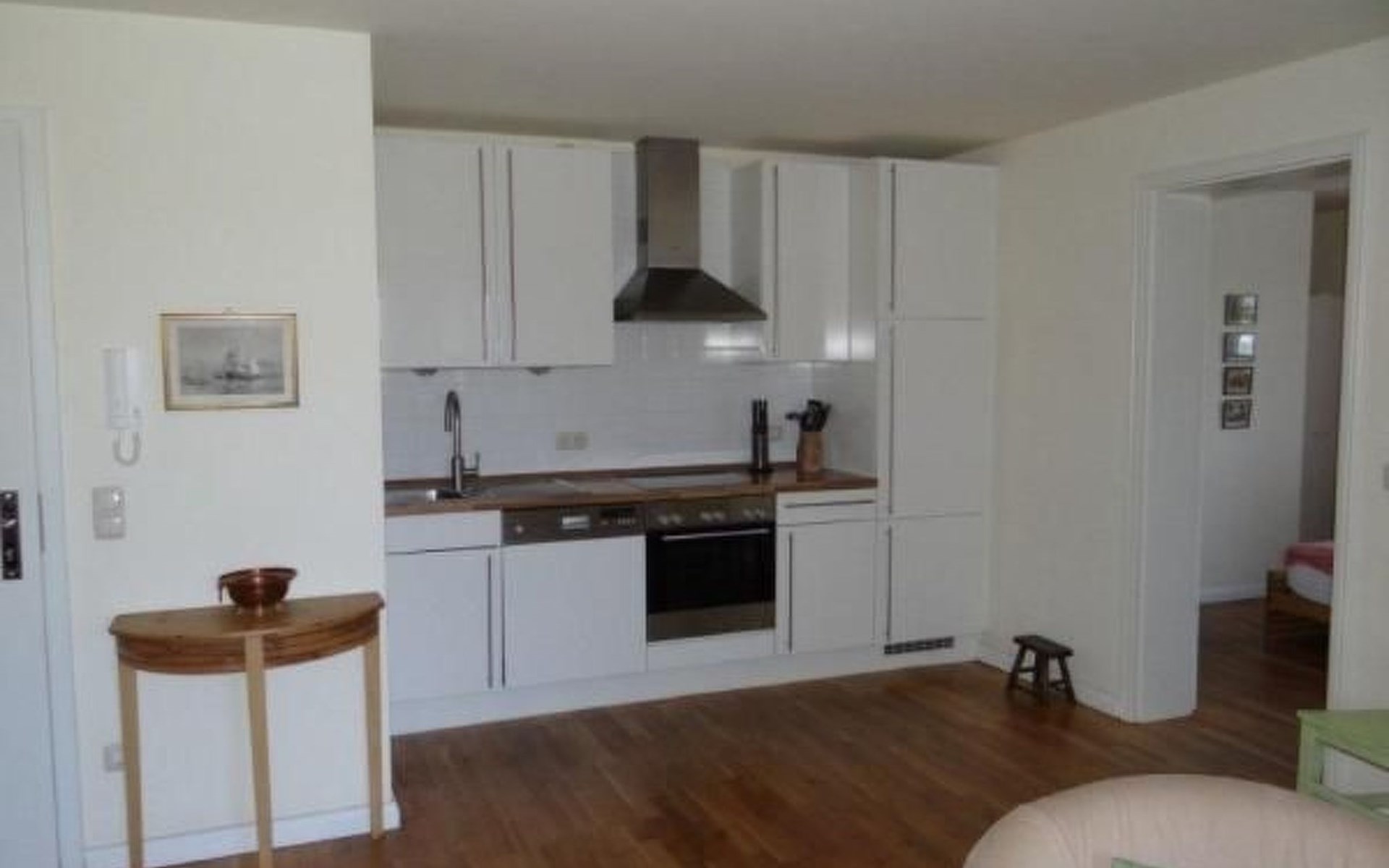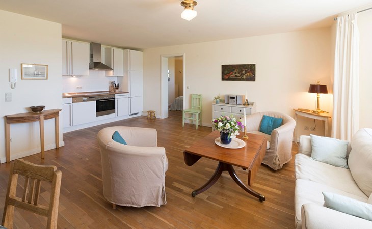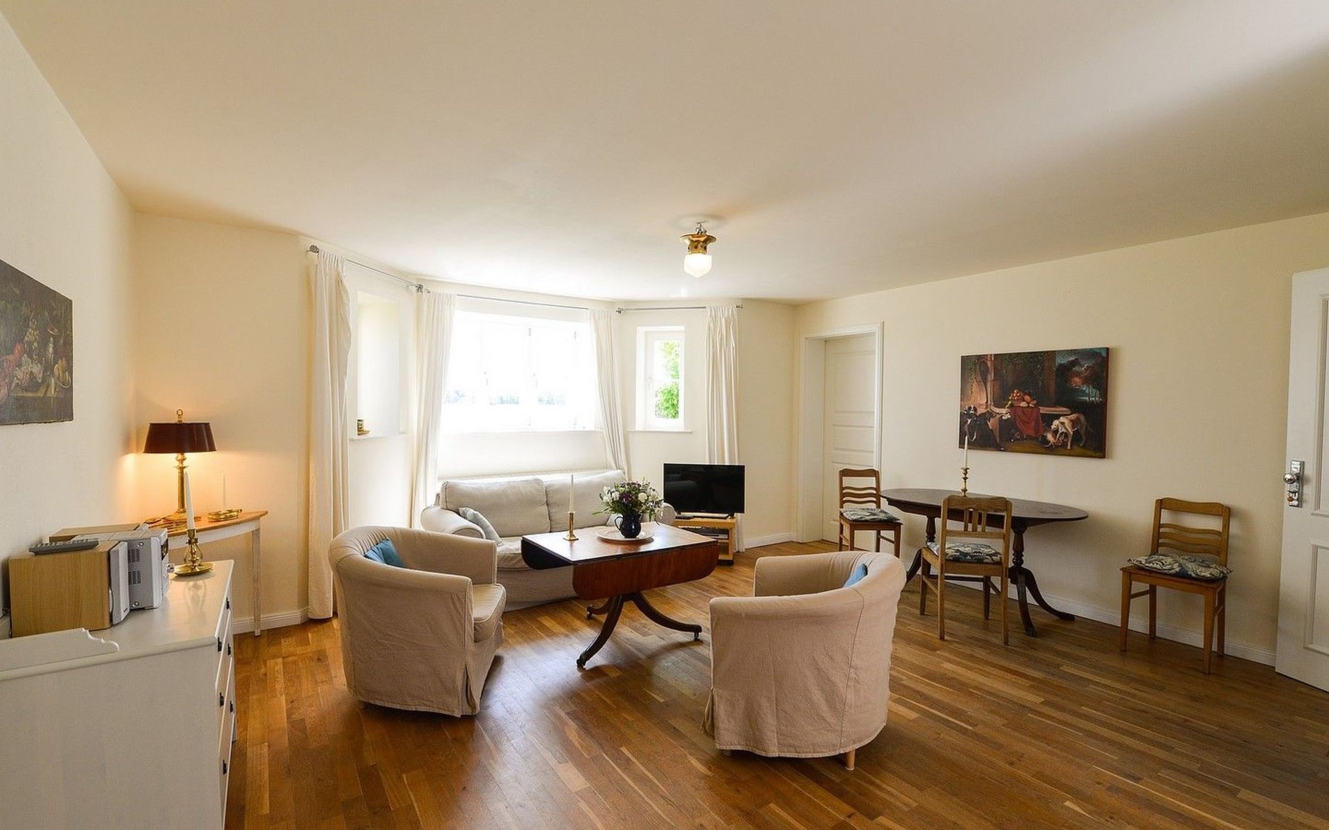 The floors in the apartment are laid with oak parquet. The living room affords a beautiful view of the water and the swimming and boat jetty.