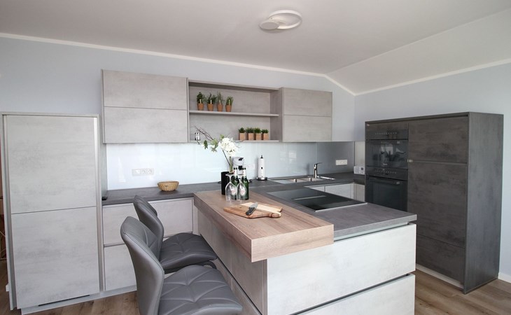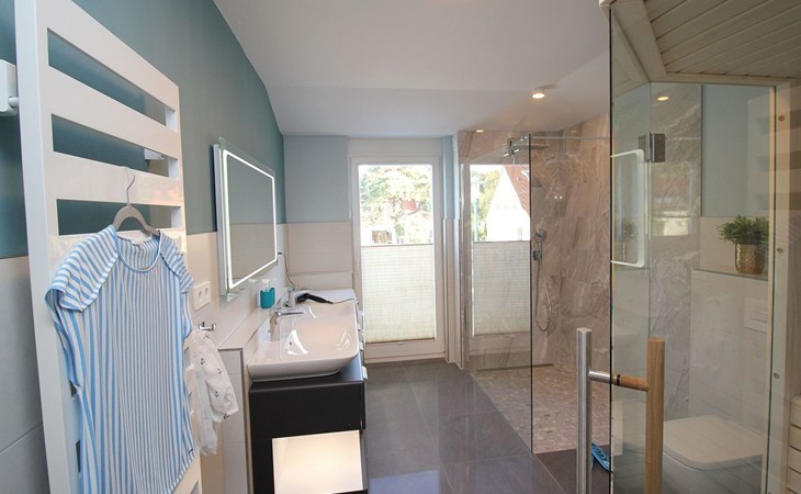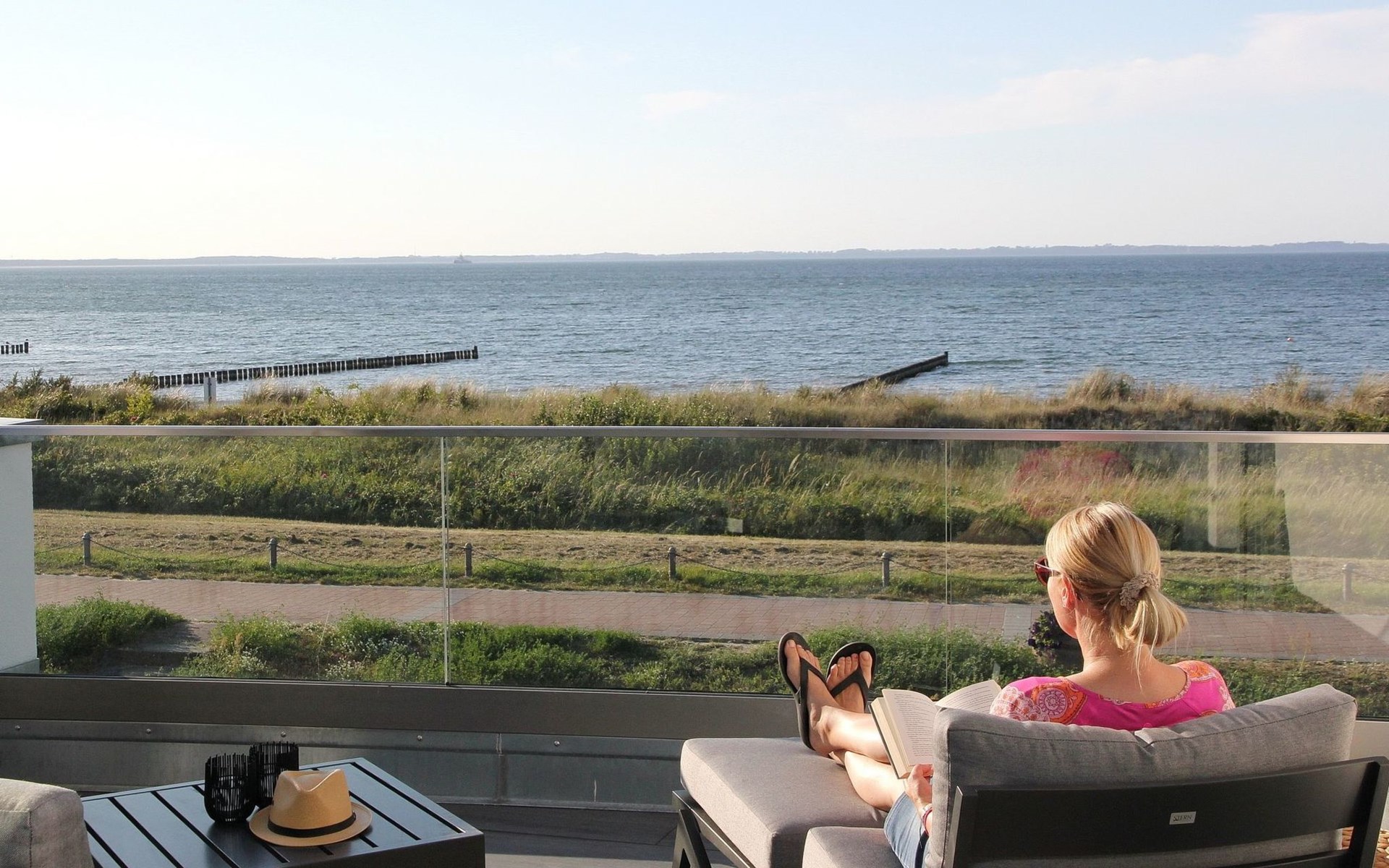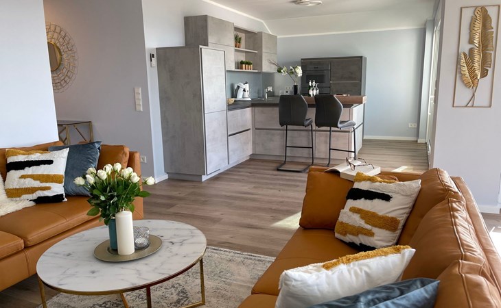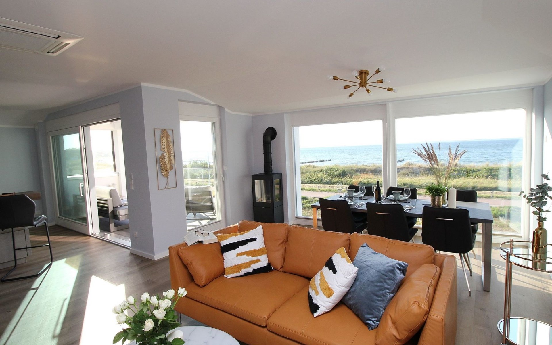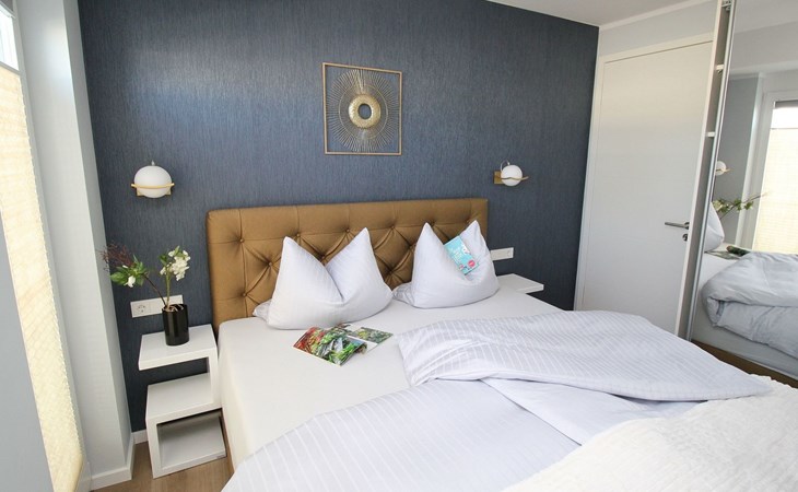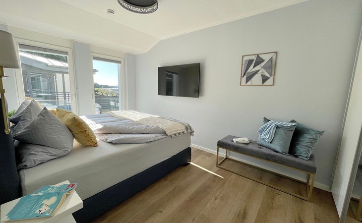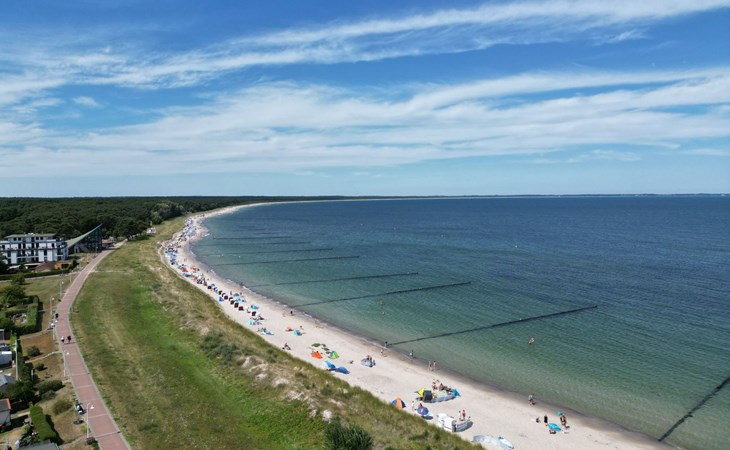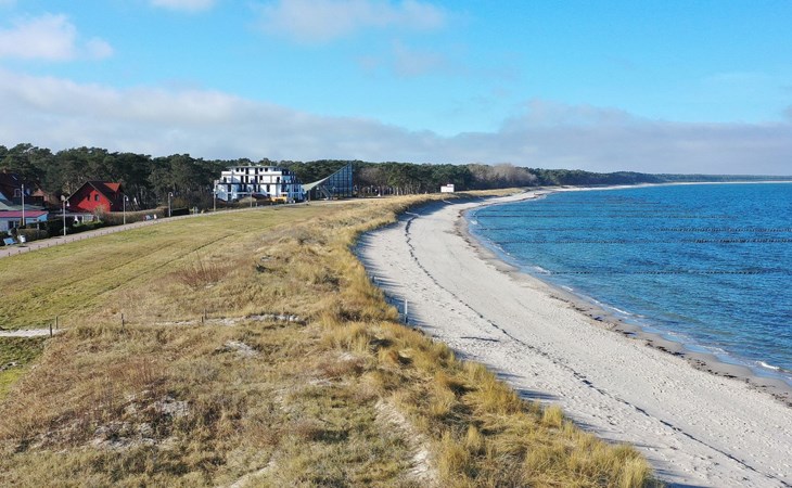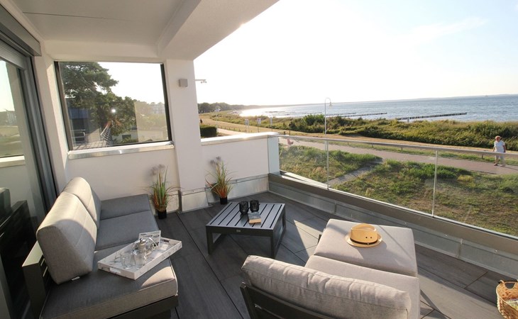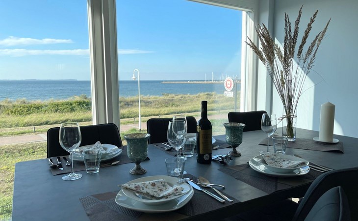 The "Villa am Meer" directly on the beach with a view of the Baltic Sea is now available for our guests. The 100m² holiday apartment has a cosy living room with integrated kitchen, 2 bedrooms with double beds, 2 bathrooms with shower and a sauna, and the terrace, equipped with lounge furniture, is accessible from the living area.