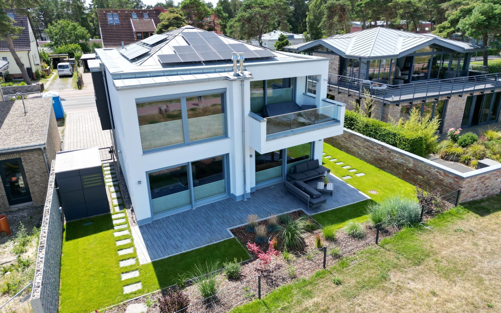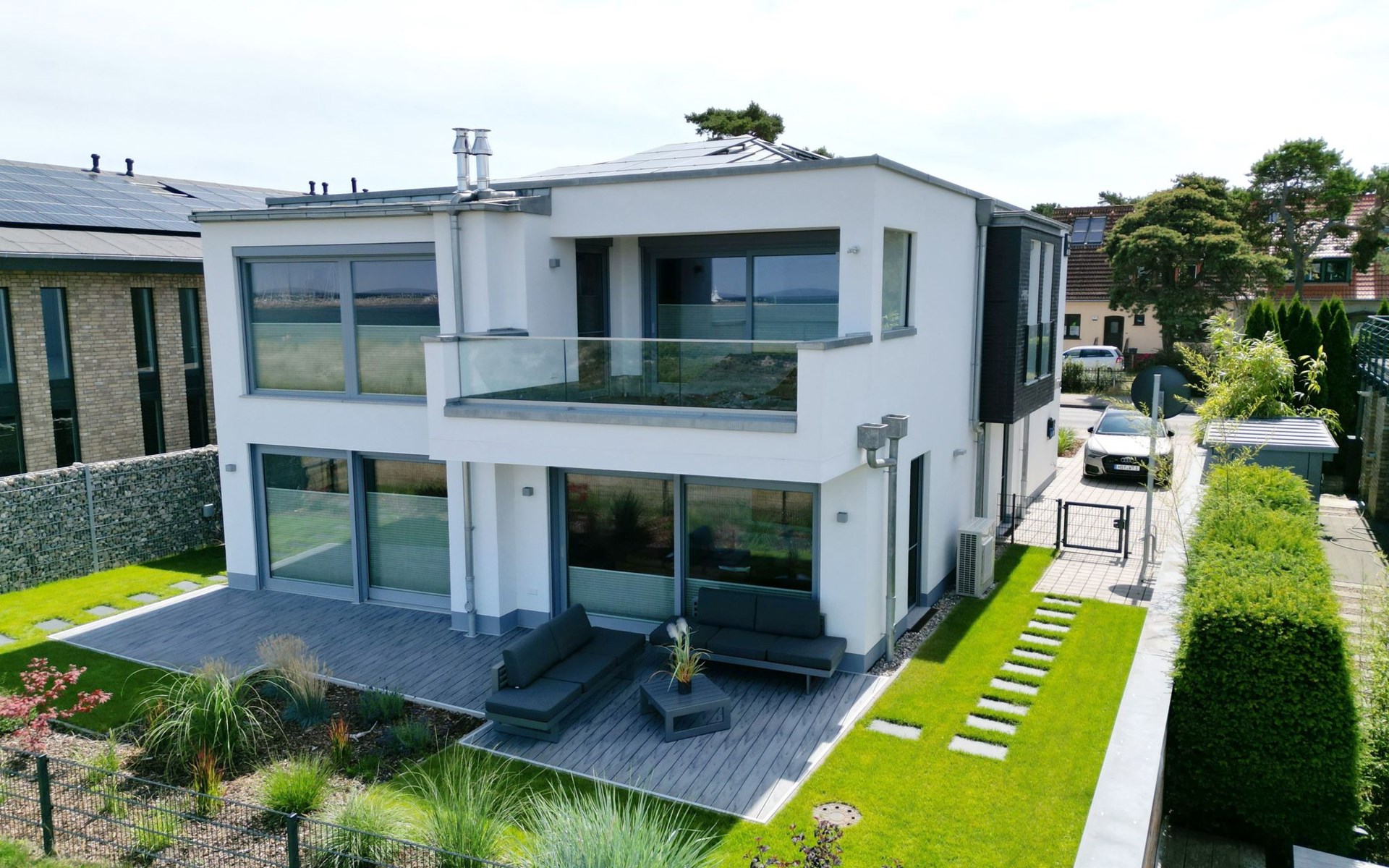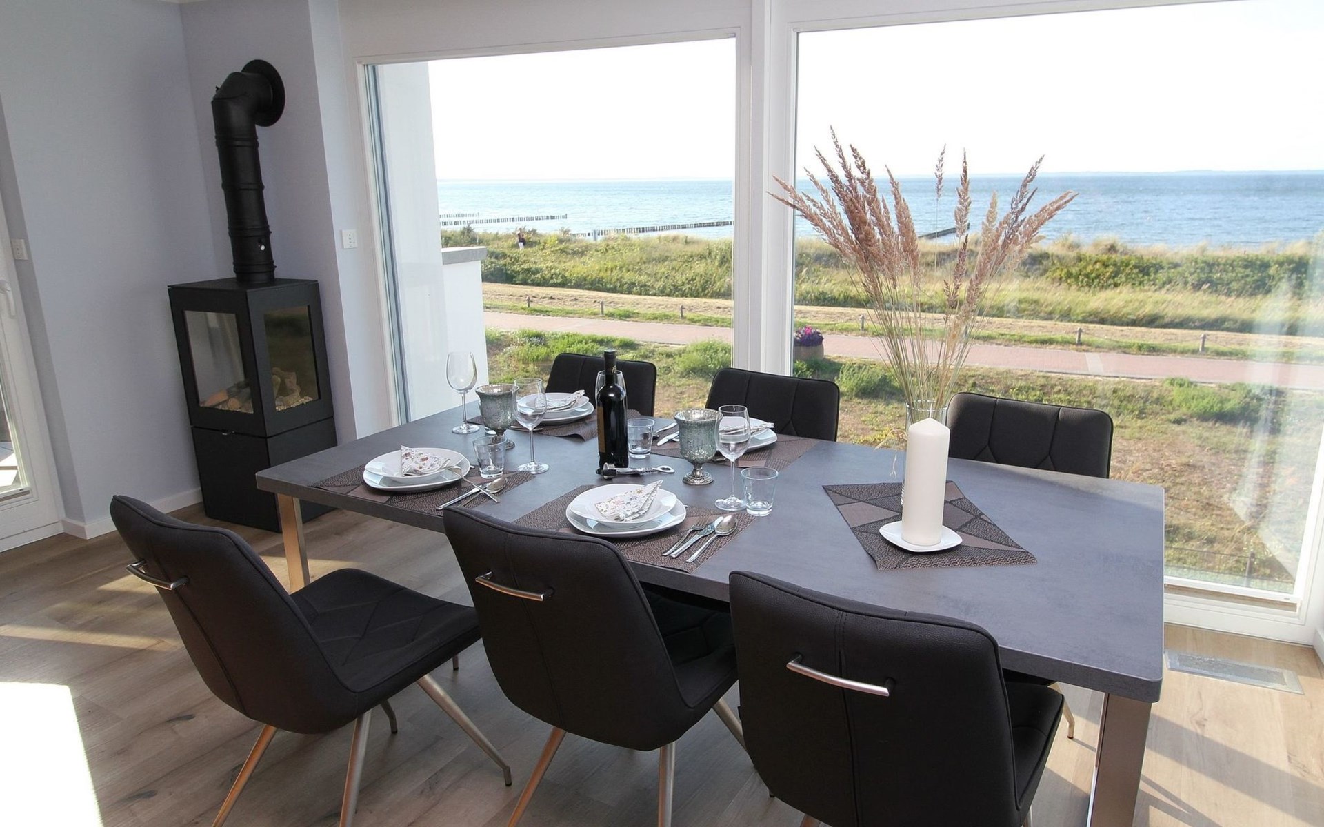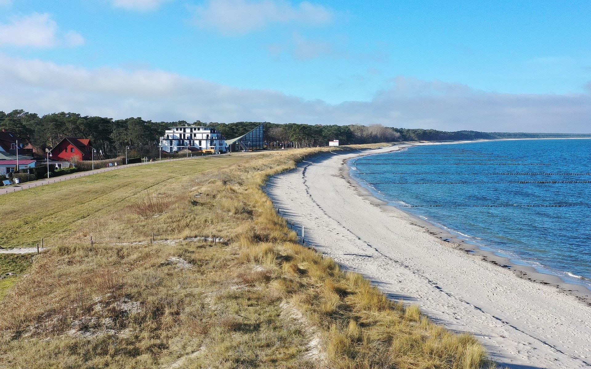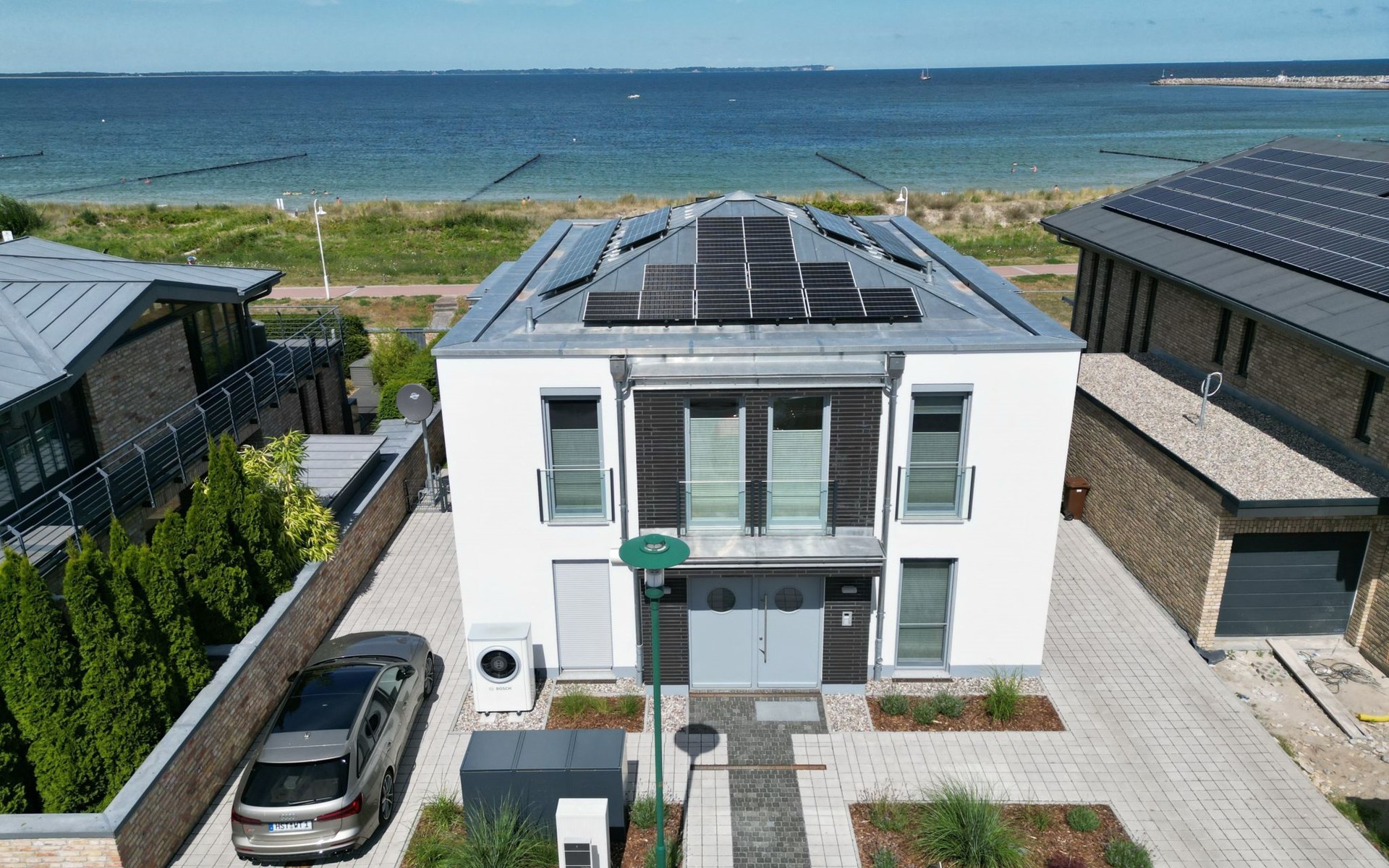 Facilities that you will not miss, such as: 2 car parking spaces, one of which is equipped with an electric charging station, a washer-dryer, TV in all rooms, air conditioning, active house ventilation, interior and exterior window shading with electric blinds, a high-quality modern kitchen, as well as a sauna contribute to an unforgettable holiday. But the most important thing is the view of the Baltic Sea and the short distance of approx. 50 metres to the wide, fine sandy Baltic Sea beach.