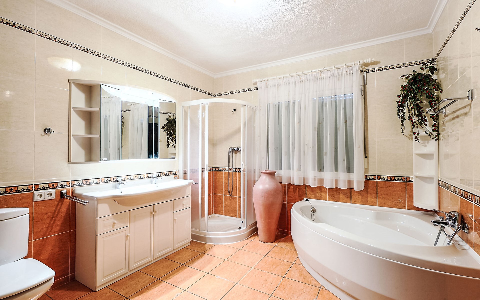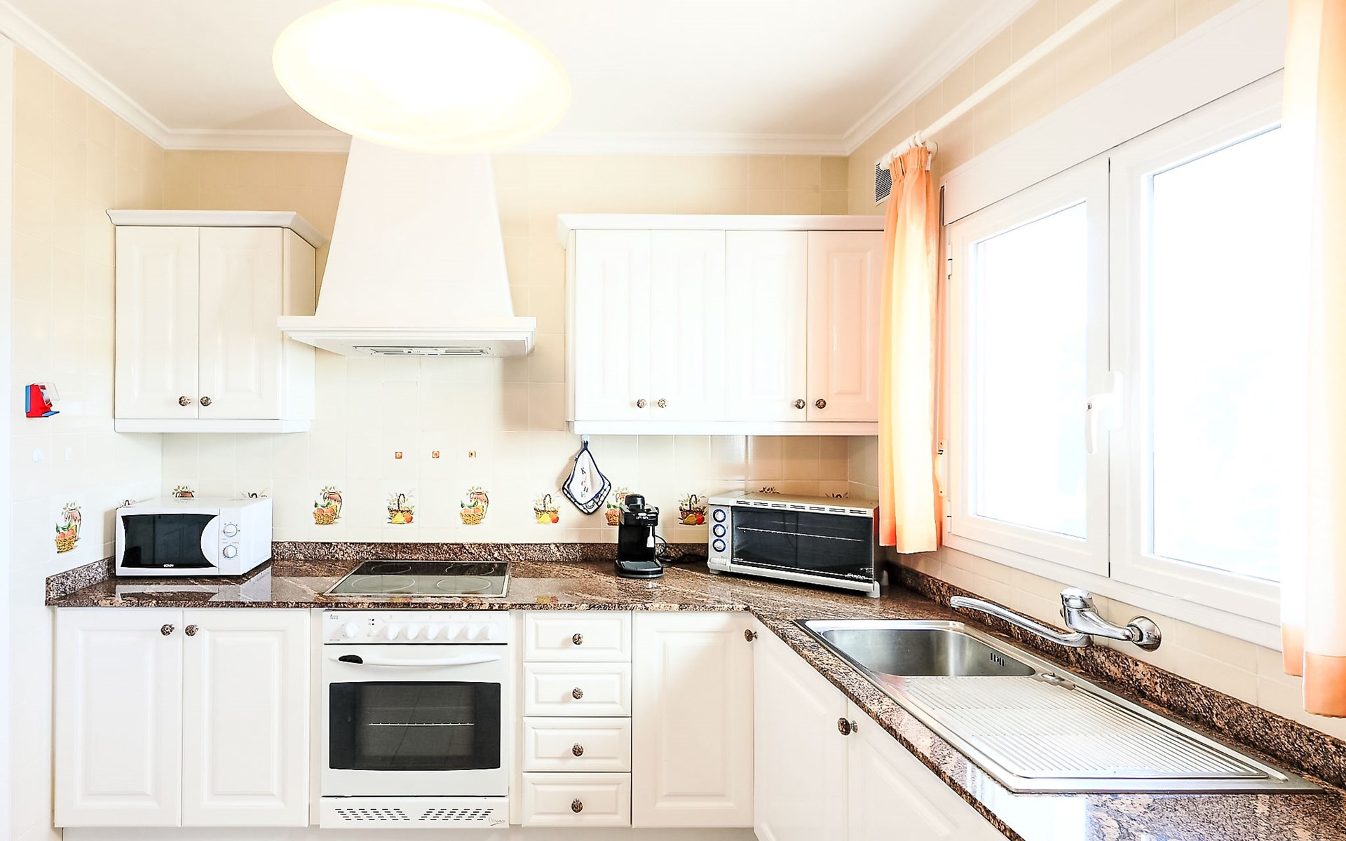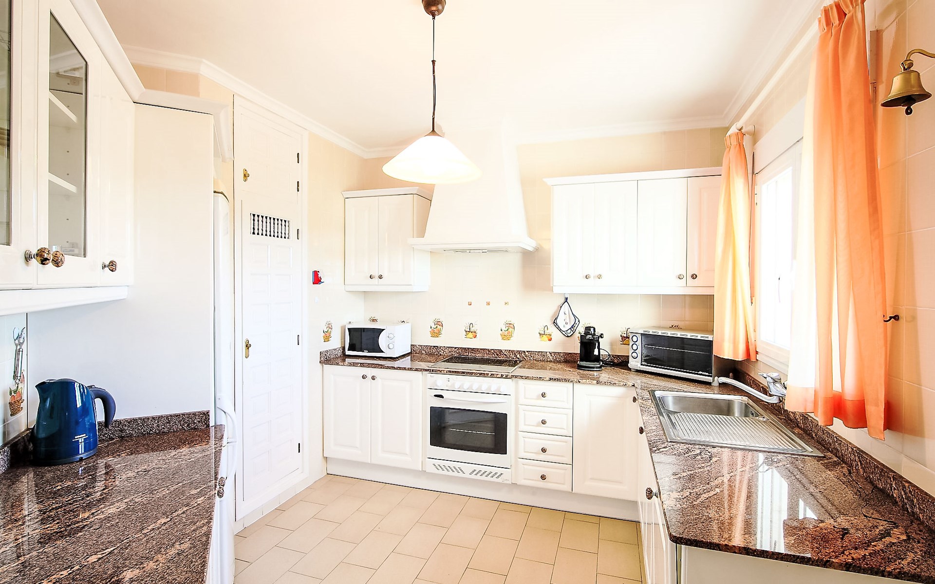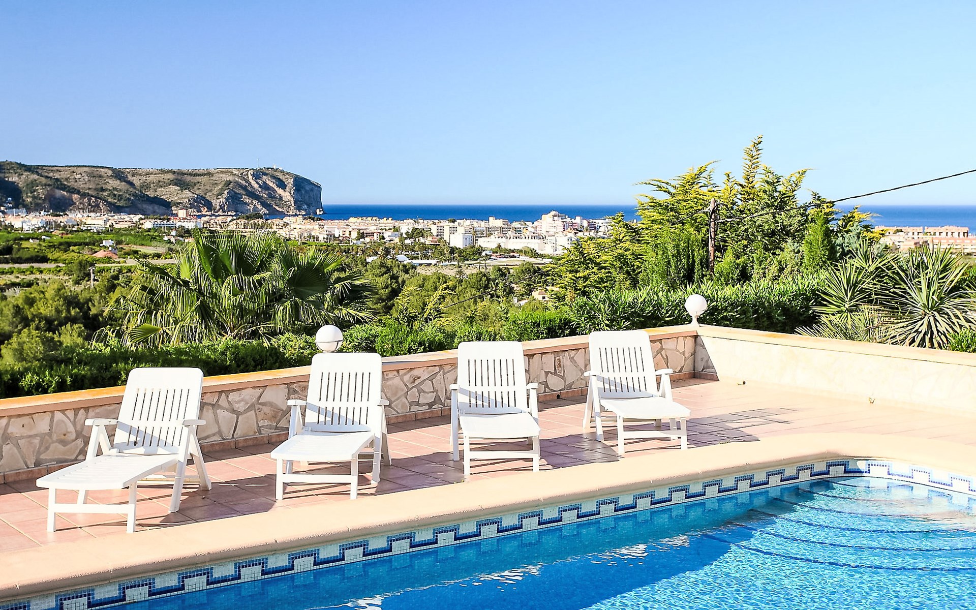 Beautiful house "Sara". In the district of Adsubia, in a quiet, sunny, elevated position in the residential district, 5 km from the sea. Private: garden 780 m2 (fenced) with wildlife garden, natural garden 780 m2, swimming pool with privacy (4 x 8 m, seasonal availability: 01.Jan. - 31.Dec.) with internal staircase. Outdoor shower. In the house: central heating system. Supermarket 4 km, restaurant 4 km, bus stop "Mas y Mas carretera del Pla" 1.9 km, sandy beach "Arenal" 5 km. Golf course (9 hole) 3 km. Groups of teenagers on request only.
