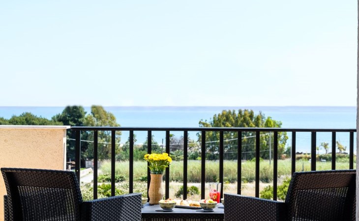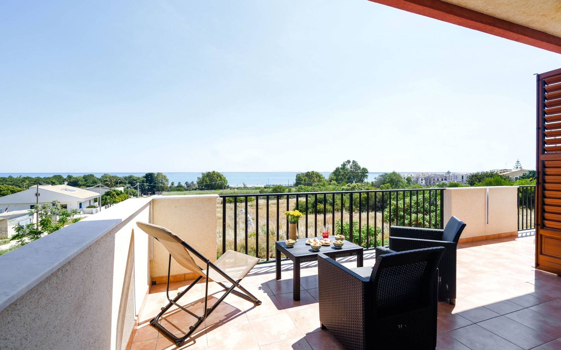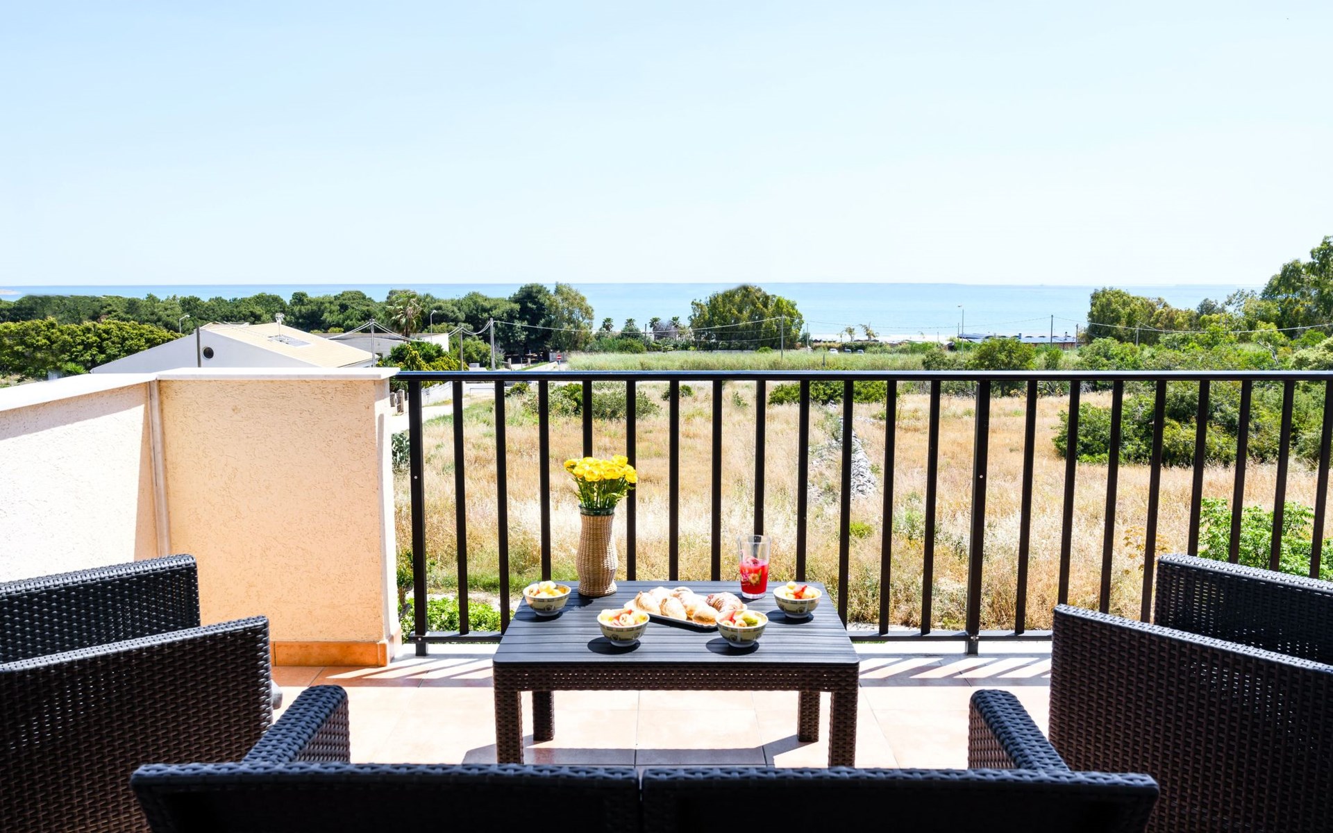 From the terrace you can admire the pine forest and the beach of Sampieri and on the left the ruins of the fascinating Fornace Penna