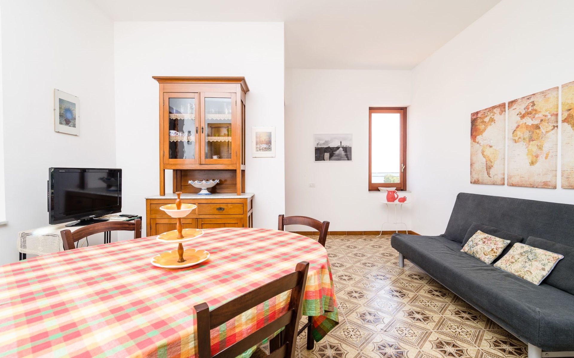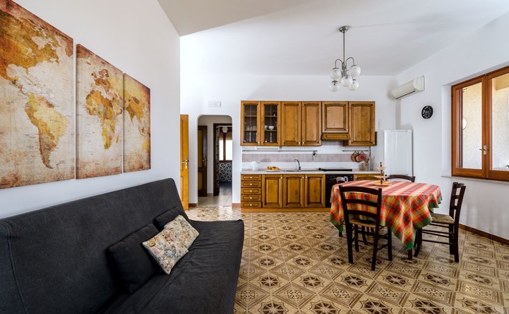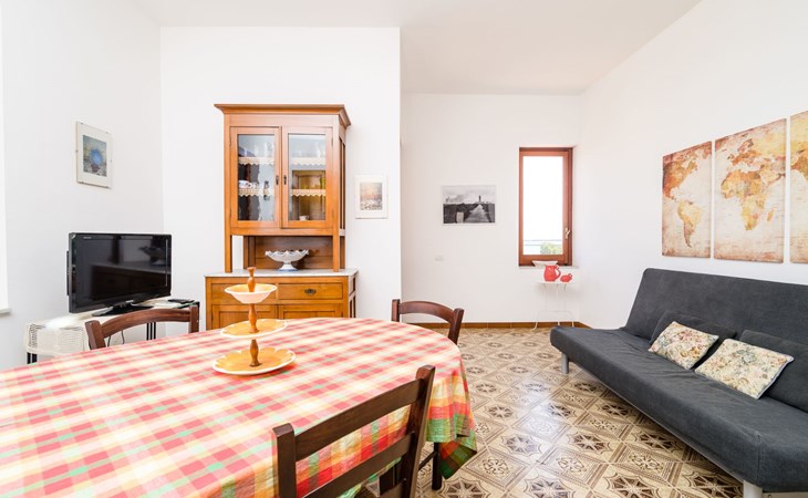 With a floor area of 100 square meters, it is the ideal solution for large families and not only; it has six beds: two double bedrooms and a small bedroom with two single beds. Two bathrooms with shower and a spacious and bright living room / kitchen from which to access a terrace, overlooking the sea, of 15sqm. The kitchen is equipped with all necessary utensils and a washing machine . In addition, at home you can take advantage of free Wi-Fi and the latest generation air conditioner.
