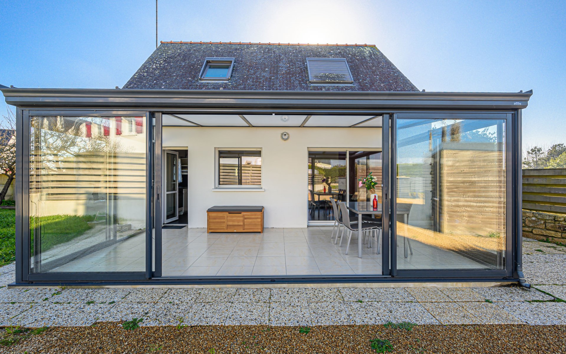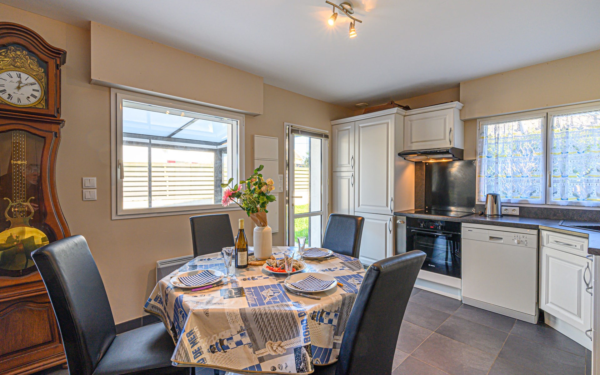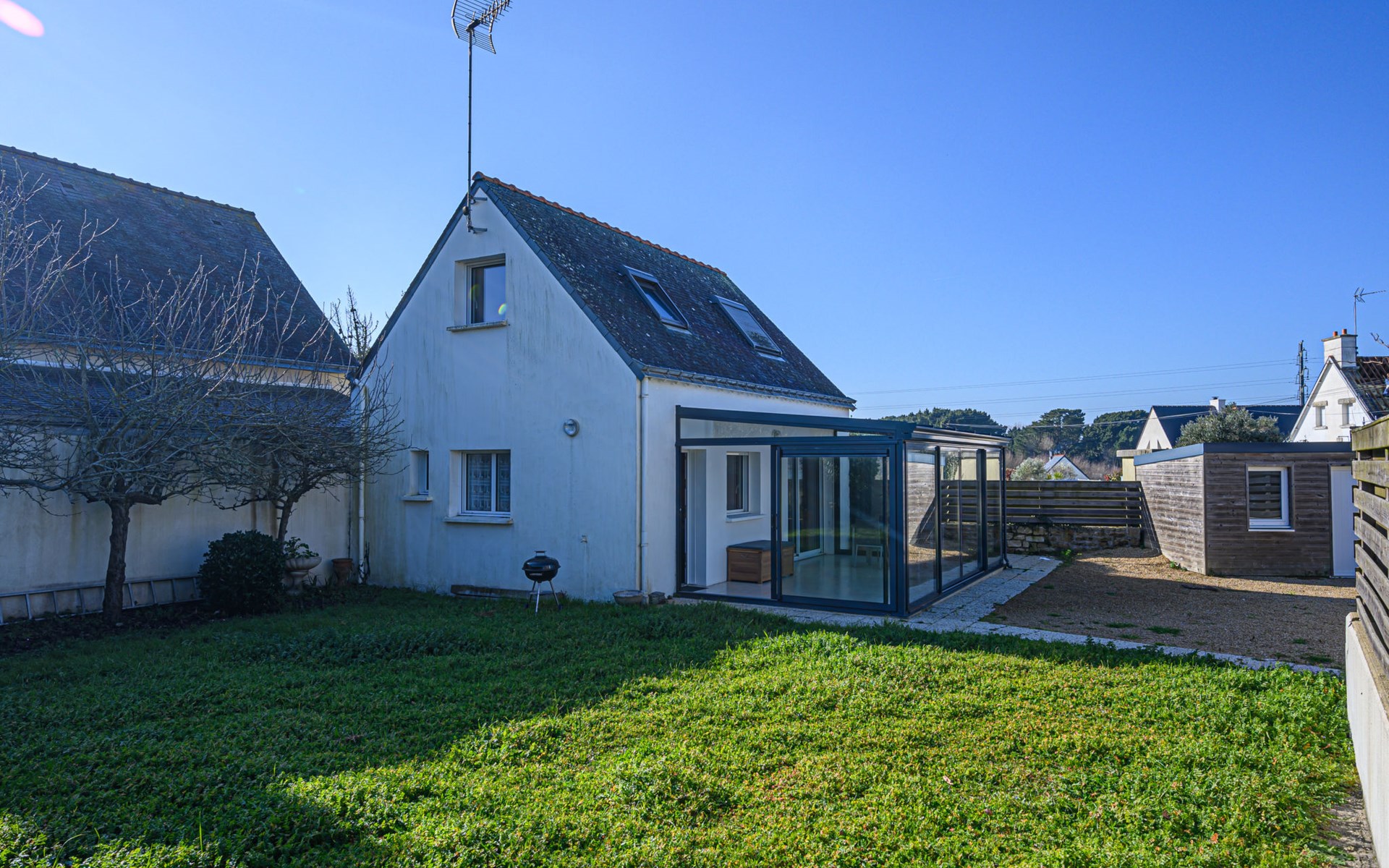 Single-family house "Zal". In the resort, in a quiet position, 350 m from the sea, from the beach, in a cul-de-sac. Private: garden (fenced) with lawn, parking on the premises. Shop 1.2 km, supermarket 1.2 km, restaurant 1.2 km, sandy beach 500 m. Golf course (18 hole) 19 km, surf school 2 km, sailing school 2.4 km. Nearby attractions: Alignements de Carnac 13 km, Thalasso & Spa Resort 13 km, La Trinité sur Mer 23 km, Auray 22 km, Vannes 40 km. The keys‘ handover takes place by the agency Interhome in Quiberon, 7 km.