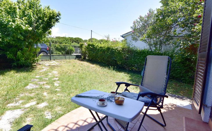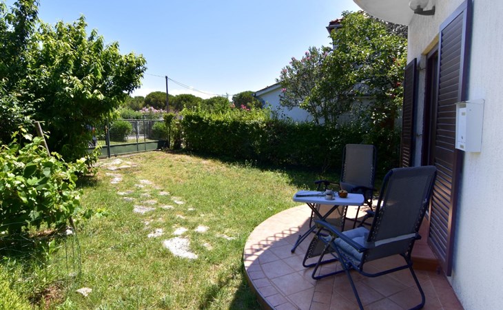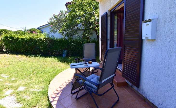On the terrace, equipped with a table and two chairs, you can enjoy relaxing moments and enjoy the view of the surrounding garden. It is ideal for enjoying a delicious breakfast in the morning or sipping a glass of Istrian wine in the evening.