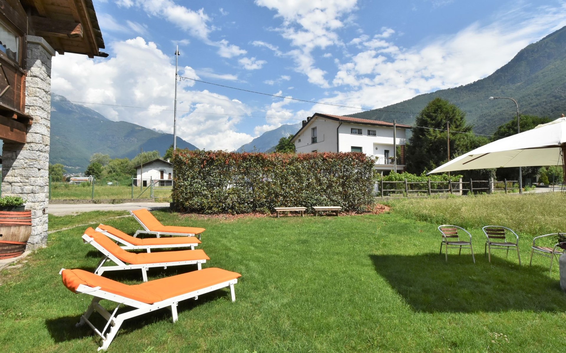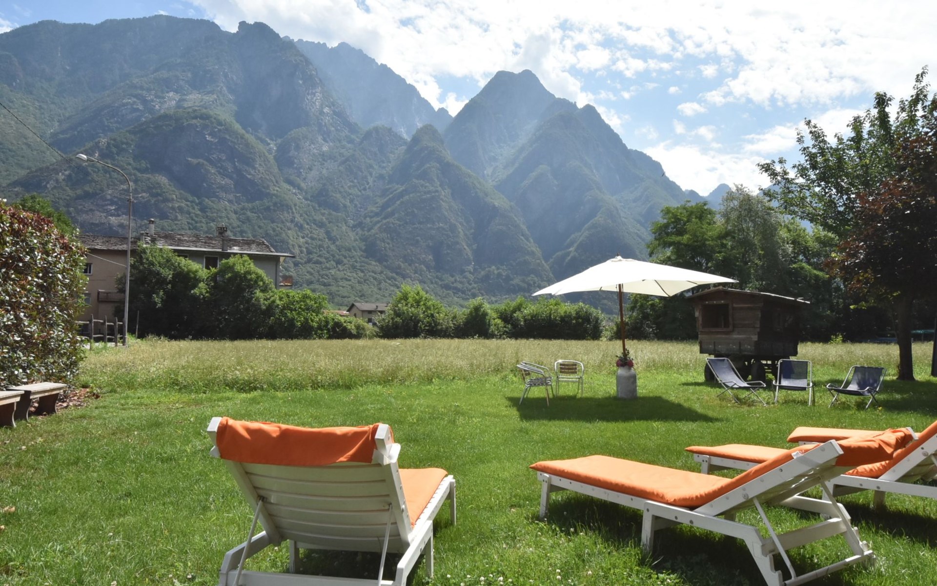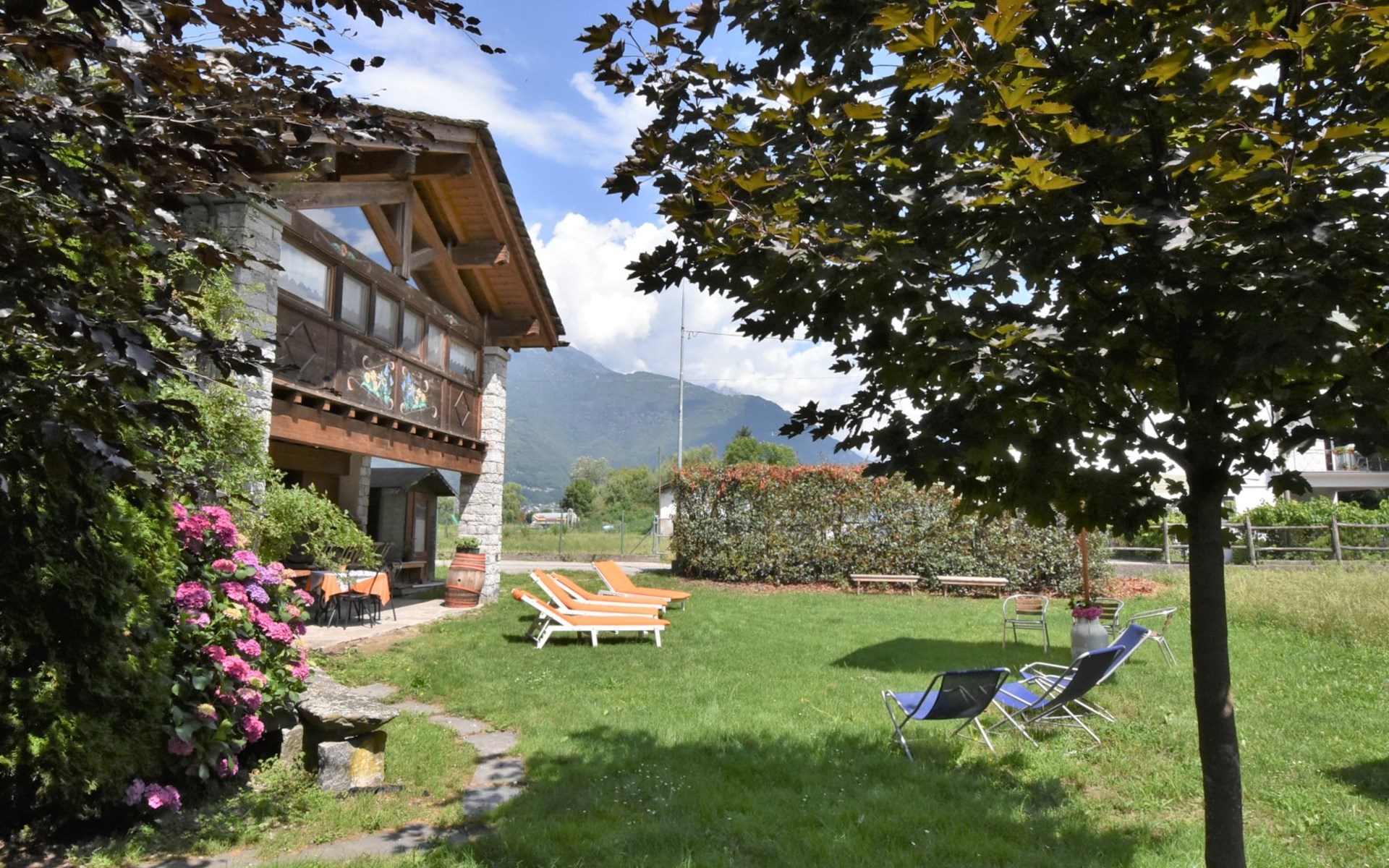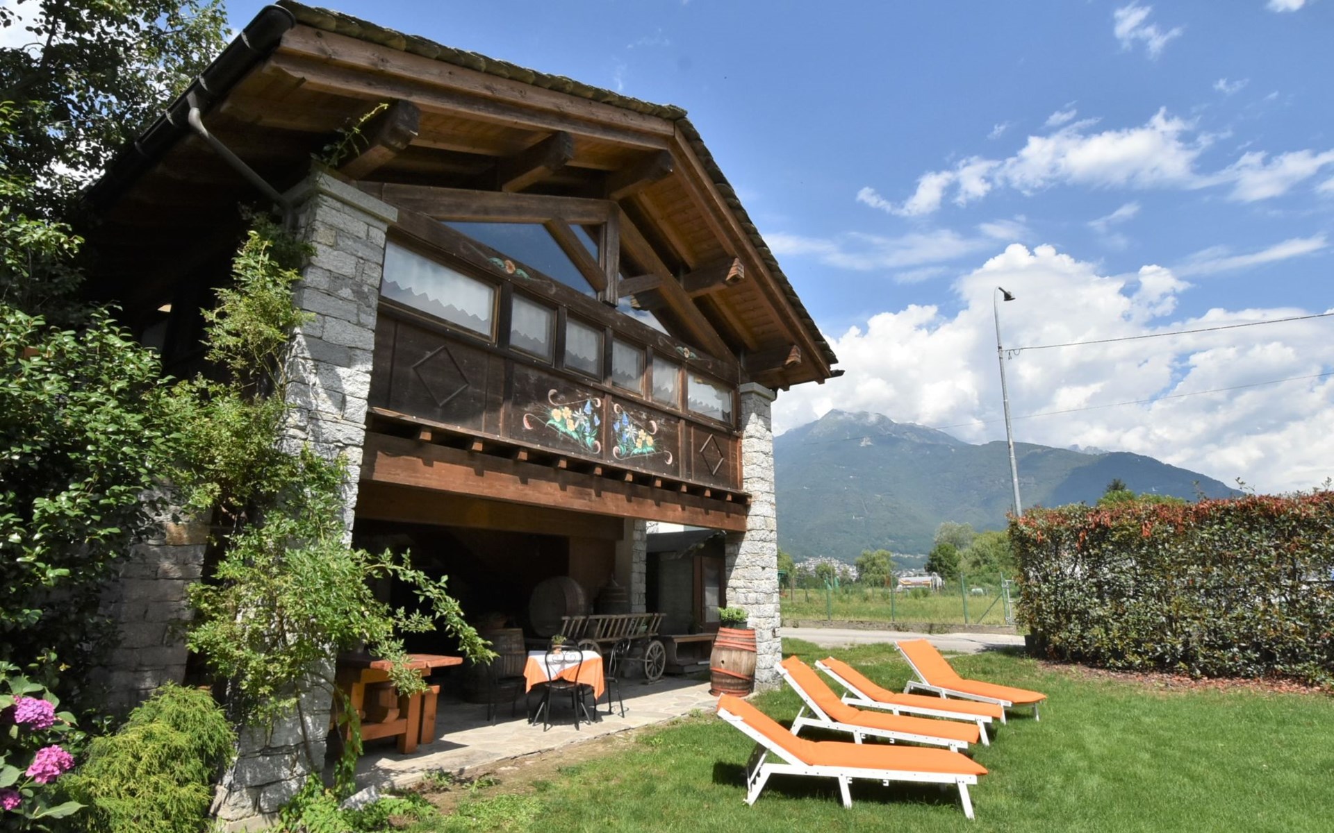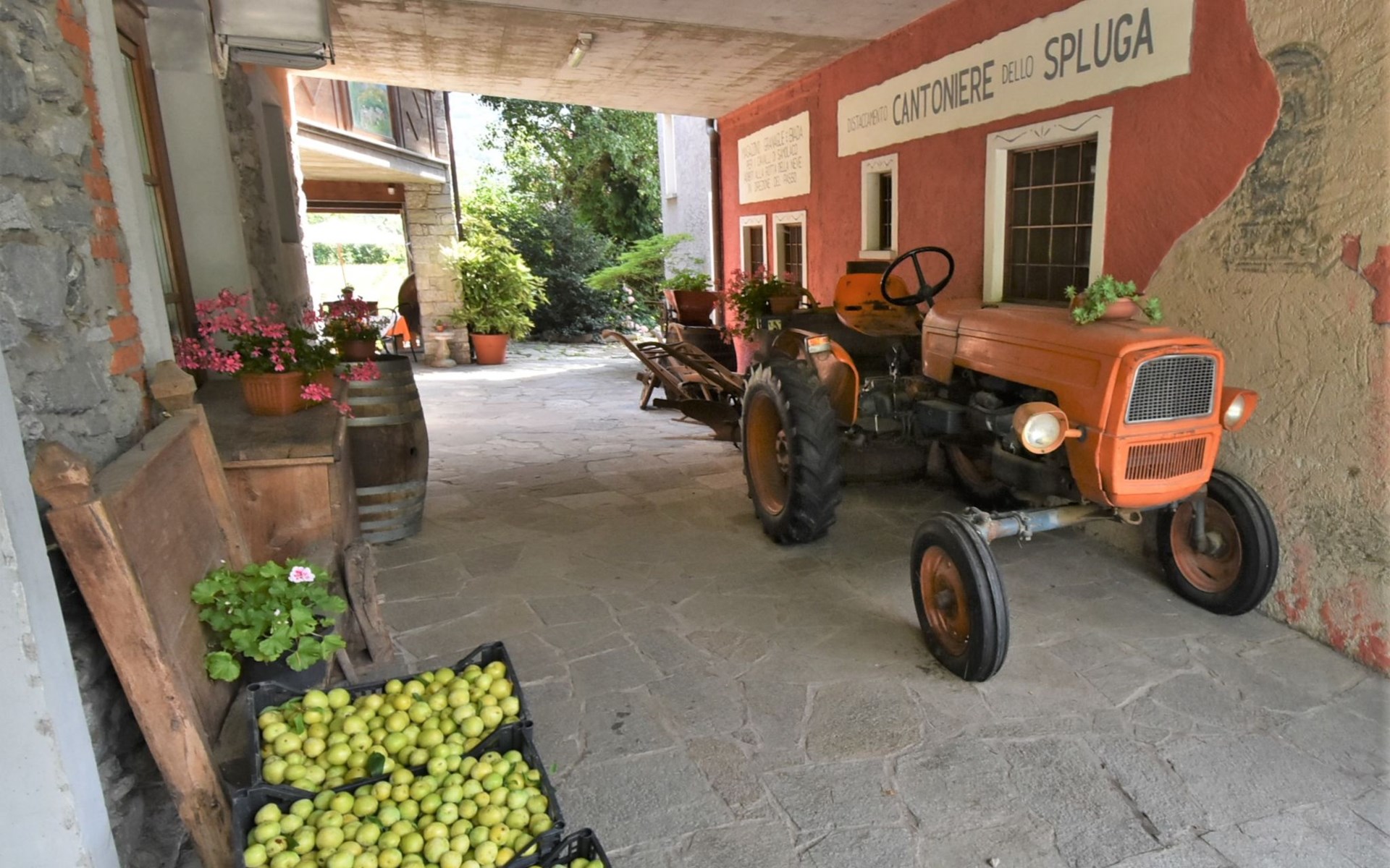 Agriturismo "La Cà Vegia", 300 m a.s.l., 3 storeys, surrounded by fields. 4 apartments in the property. In the hamlet San Cassiano 7 km from the centre of Chiavenna, 29 km from the centre of Madesimo, in a quiet, sunny position, 9 km from the lake, 20 km from the skiing area. For shared use: large garden with lawn and flowers. Pergola, garden furniture, barbecue house. In the complex: storage room for bicycles, storage room for skis. Available: bicycles, children's bicycles. Breakfast possible on request (extra). Parking at the house. E-charging station. Supermarket, restaurant, bar 600 m, bus stop 650 m, railway station "San Cassiano Valchiavenna" 700 m. Nearby attractions: Cascate della Boggia 4 km, Cascate dell' Acquafraggia 10 km, Passo di Maloja (CH) 35 km, Silvaplana (CH) 50 km, Saint Moritz (CH) 54 km. Well-known ski regions can easily be reached: Campodolcino 21 km, Madesimo 29 km. Well-known lakes can easily be reached: Lago di Mezzola 9 km, Lago di Como 19 km. Hiking paths: Sentiero Storico di Fondovalle, Traversata dei Monti, Sentiero Panoramico di Bregaglia. Please note: car recommended. Suitable for families. On the estate animal husbandry. Local sale of farm products. The owner lives on the same property.