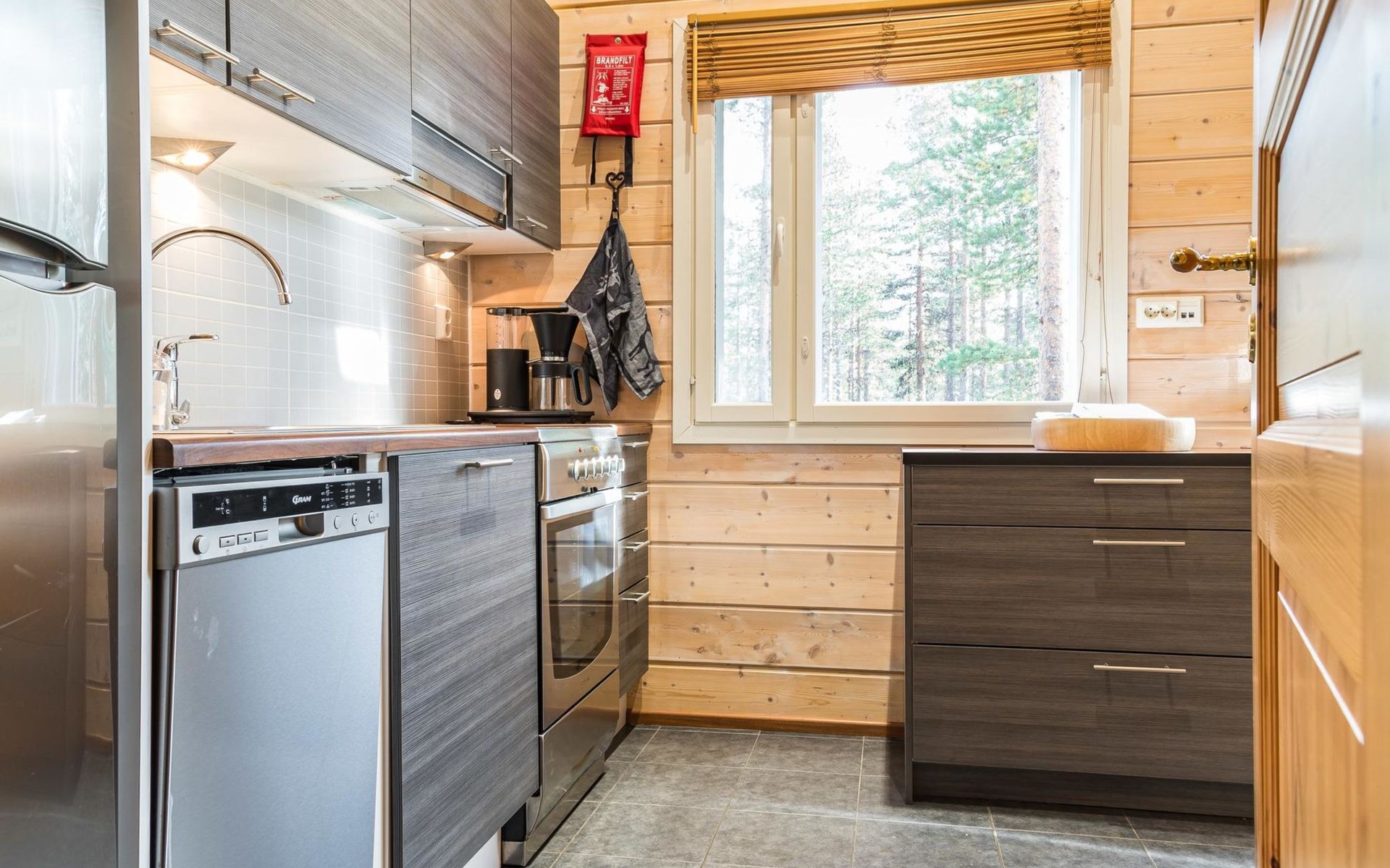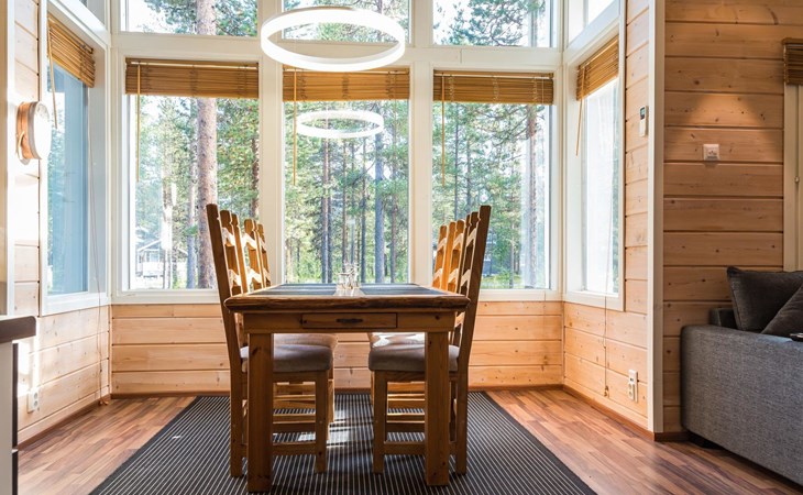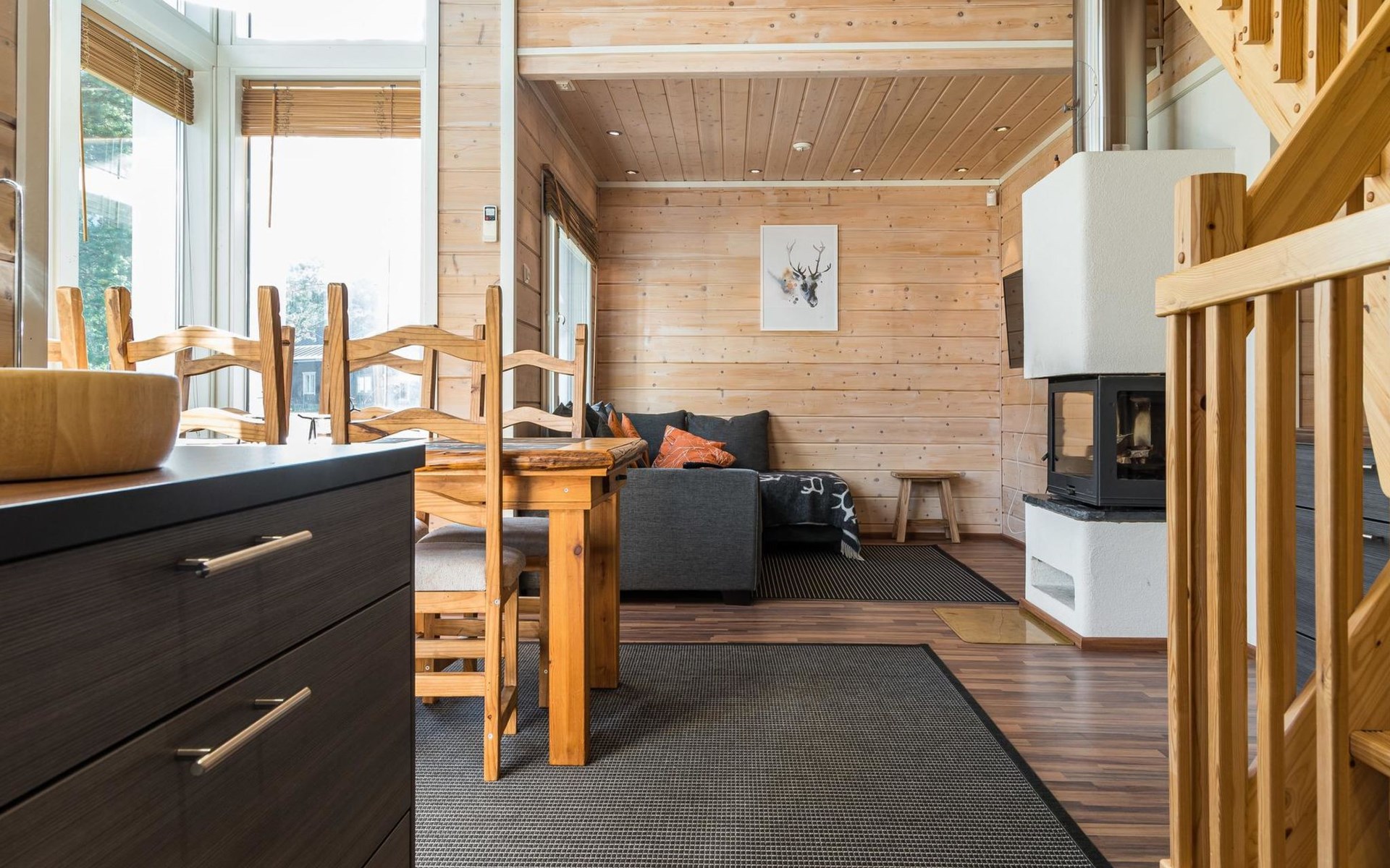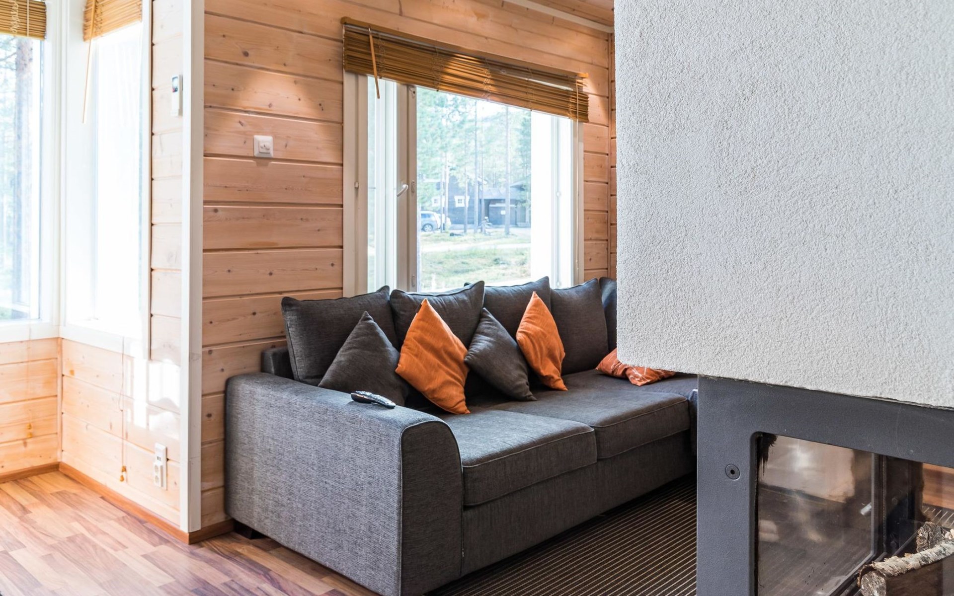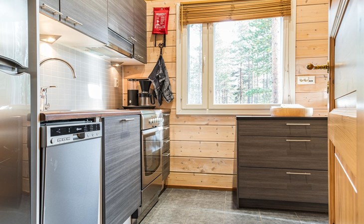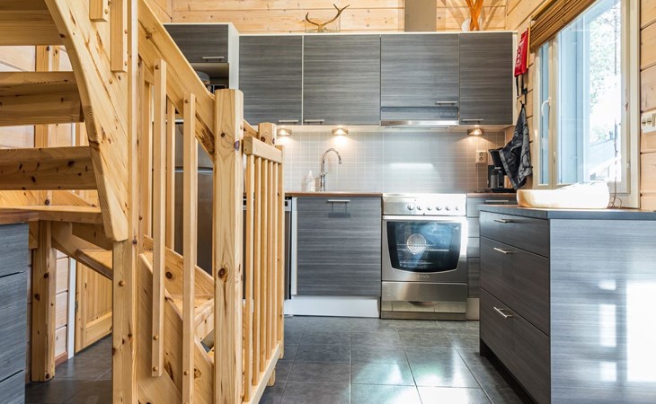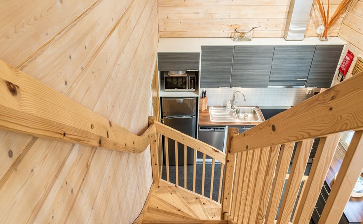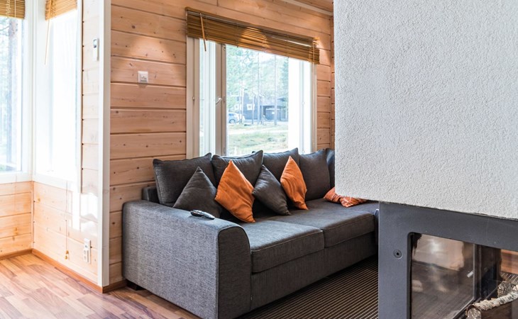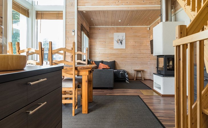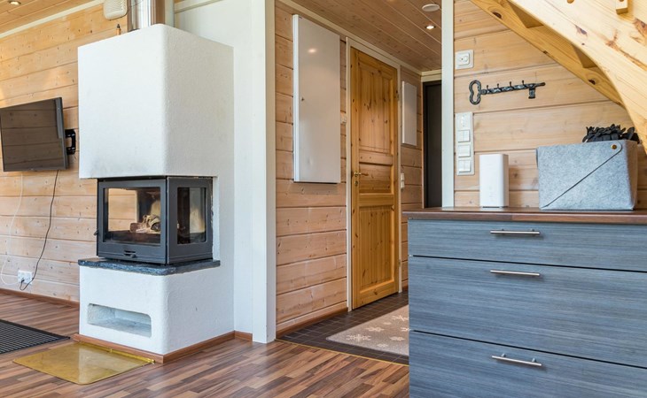 The spacious and bright living room kitchen creates the perfect setting for socializing and cooking. The sofa in the living room is a great place to admire the warmth of the fireplace.