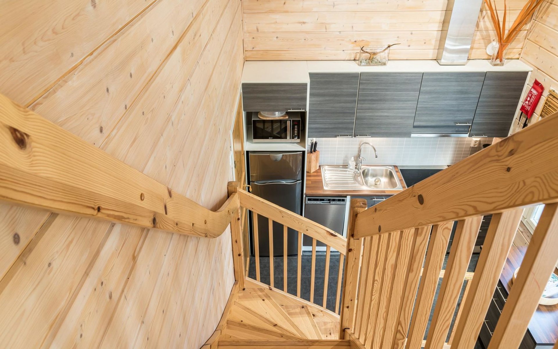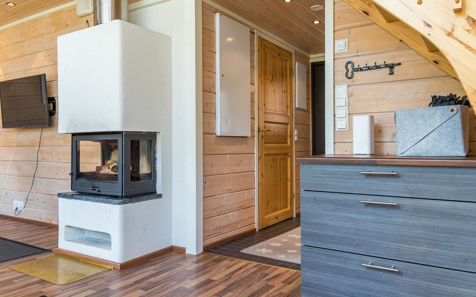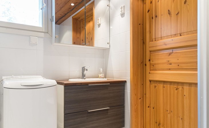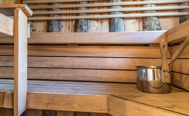 In the sauna, relaxing steams relax both the mind and the muscles after a day. Clothes can be conveniently dried in the drying cabinet of a warm outdoor storage.