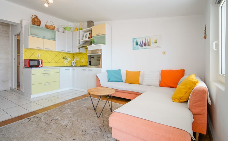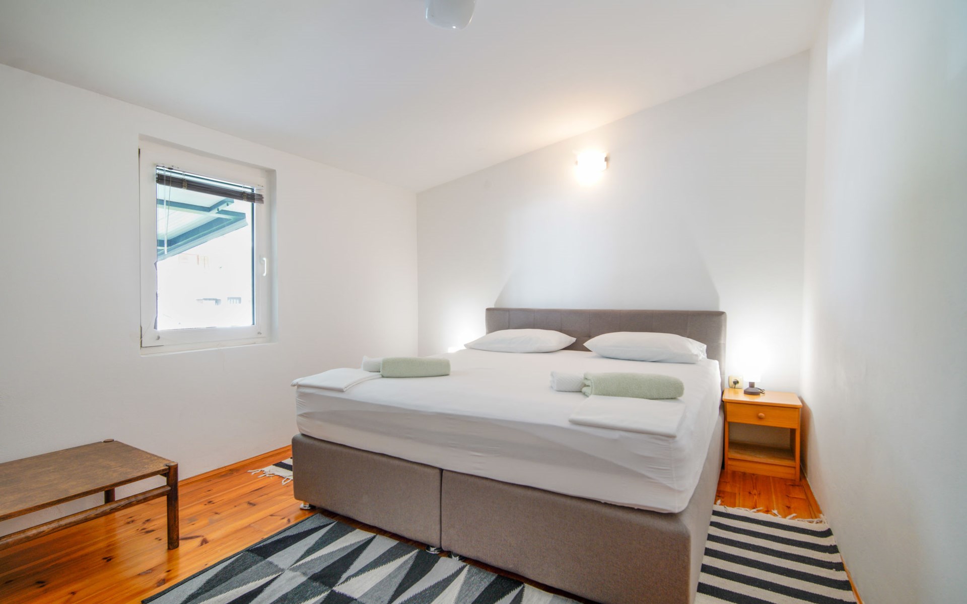 Semi-detached house "Bruno". In a sunny position, in the heart of the city, 150 m from the sea, 500 m from the beach. In the house: internet access. Parking at the house on the premises. Shop 120 m, supermarket 1 km, restaurant 350 m, bus stop 1 km, pebble beach, public bathing area 500 m.